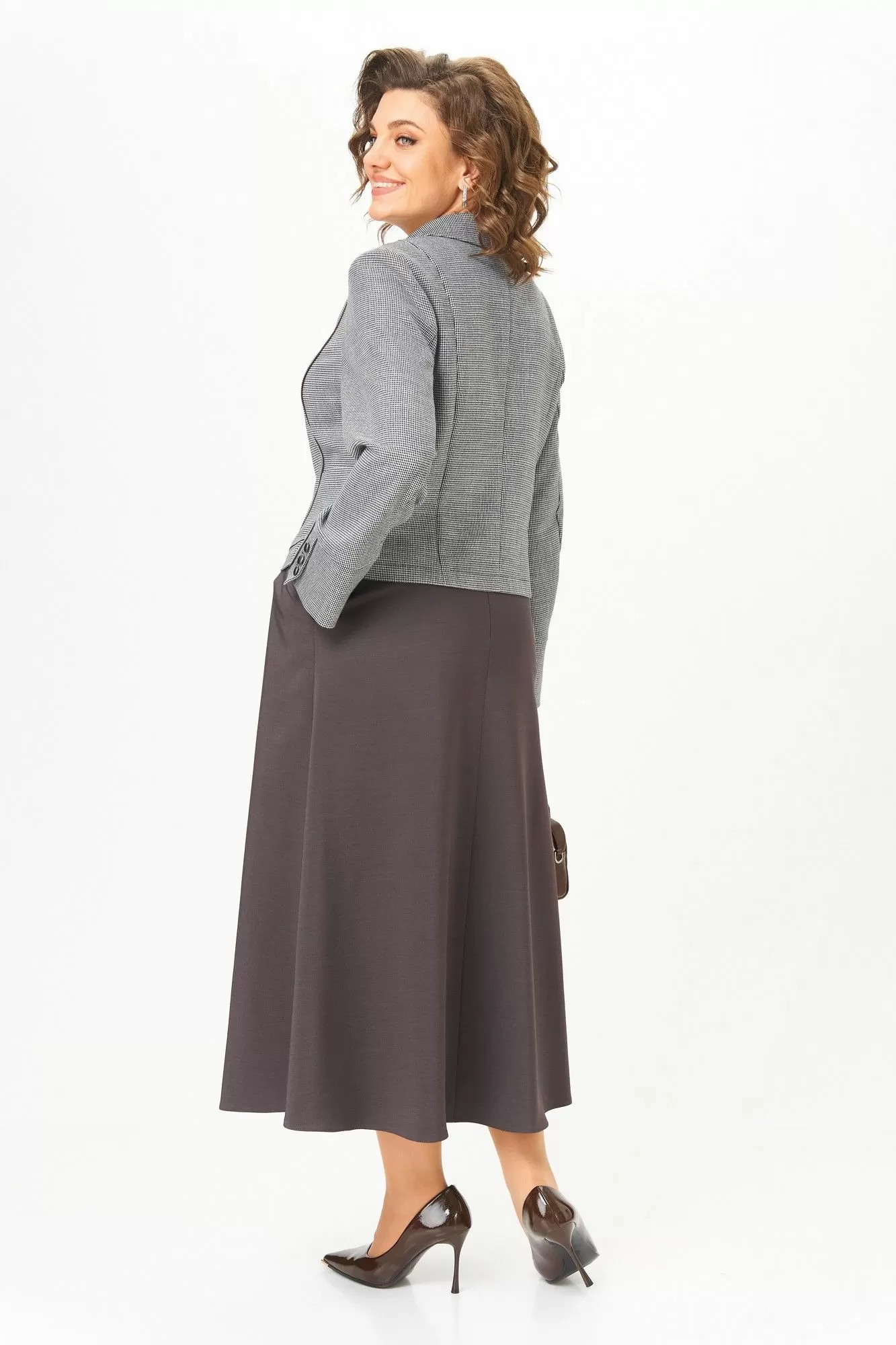 Aira Style 24133 серо-коричневый, Юбочный костюм