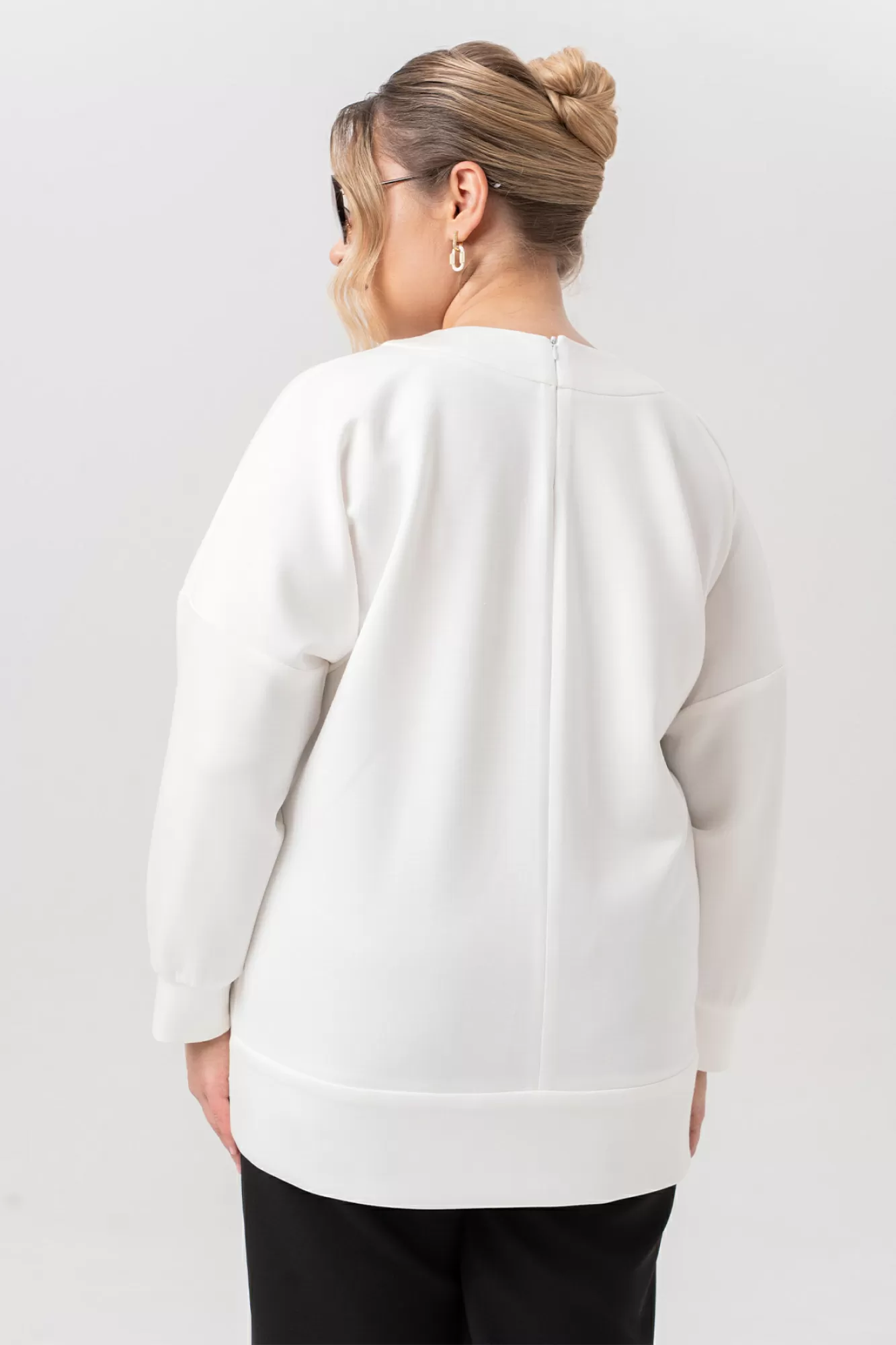 Позвольте себе насладиться комфортом и стилем с нашей туникой, которая станет вашим незаменимым спутником. Этот стильный свитшот предполагает легкость и свободу движений, что делает идеальным для повседневной носки и прогулок на свежем воздухе. Изготовленный из качественного трикотажа, он обеспечивает дышащие свойства и гипоаллергенность, что особенно важно для женщин с чувствительной кожей. Туника с круглой, асимметричной горловиной и манжетами на запястьях добавляет образу женственности и утонченности. На полочке обработана нефункциональная, декорированная пуговицами планка. На спинке, в среднем шве, обработана потайная молния.Она легко сочетается с различными аксессуарами,юбкой,брюками и разной обувью, что дает возможность создавать разнообразные образы.