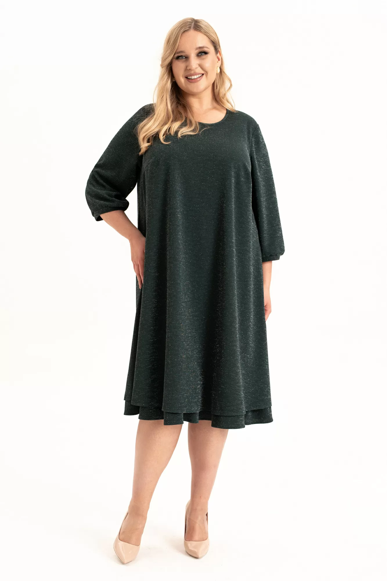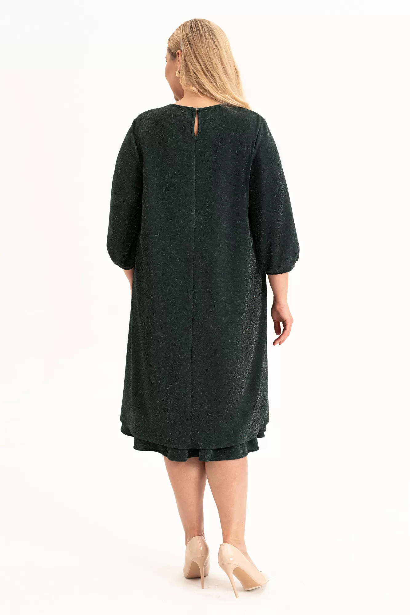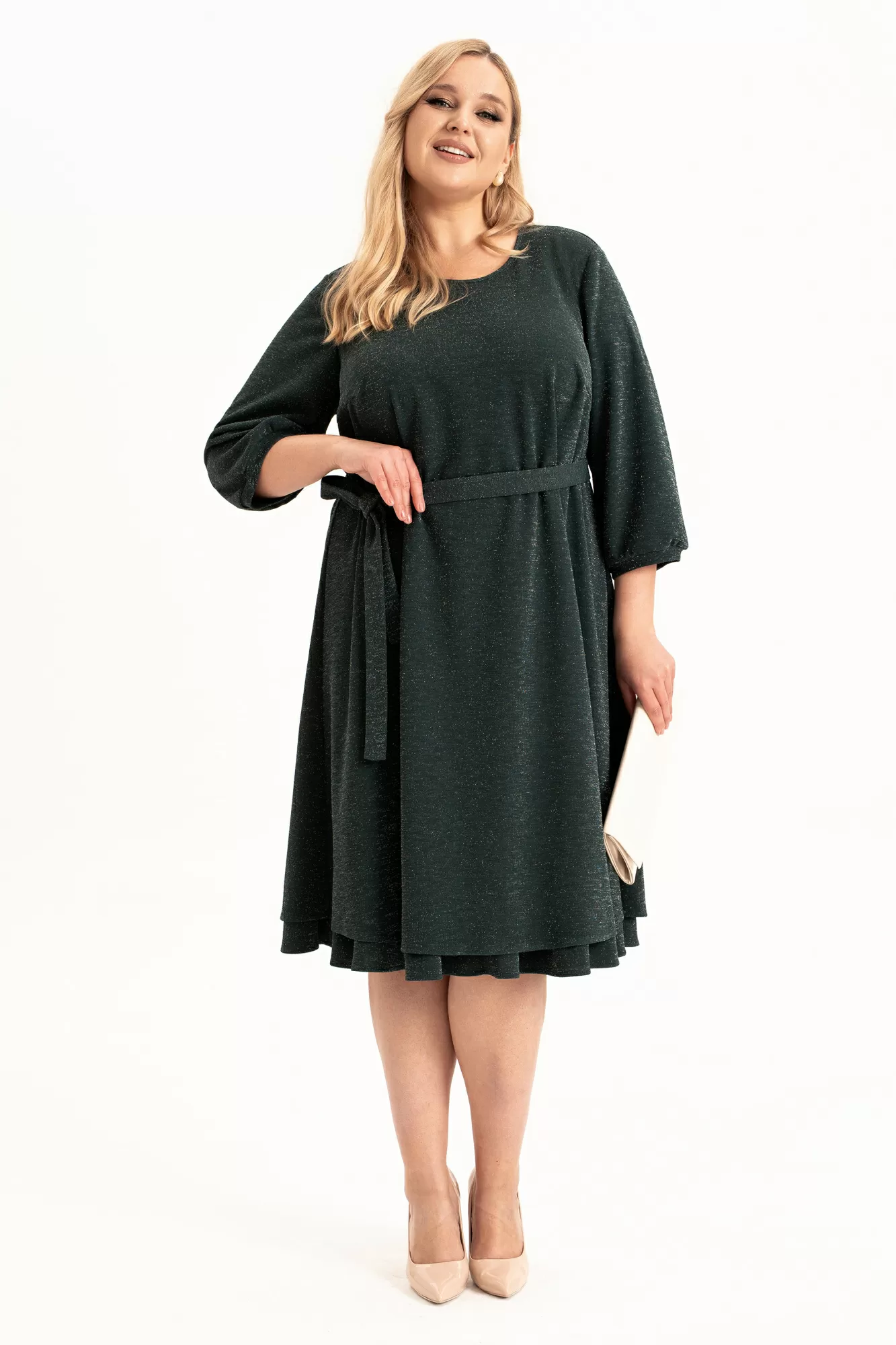 Элегантное платье на трикотажной подкладке в стиле Pinterest (пинтерест) свободного кроя станет стильным выбором для создания разнообразных образов. Выполненное из трикотажного, тонкого полотна с блеском, оно подчеркивает женственность и комфорт. О-образный вырез горловины добавляет нотку утонченности, делая его подходящим для вечерних мероприятий и фотосессий. Спинка со средним швом и каплевидной застежкой на пуговице. Низ платья обрамляет волан, наполняя образ воздушной многослойностью. Рукава длинной ¾ и манжеты создают эффект "фонариков", придавая наряду романтичный вид. Съемный пояс , А-образный силуэт и волан по низу изделия делают модель удобной, нарядной и комфортной. Оно идеально впишется в осенний , зимний и весенний гардероб и будет актуально для выхода на выпускной, вечеринки или торжественное мероприятия. Пышная юбка создает легкость движения, а минималистичный стиль отлично сочетается с аксессуарами разных стилей. Модель, которая просится в каждый гардероб!