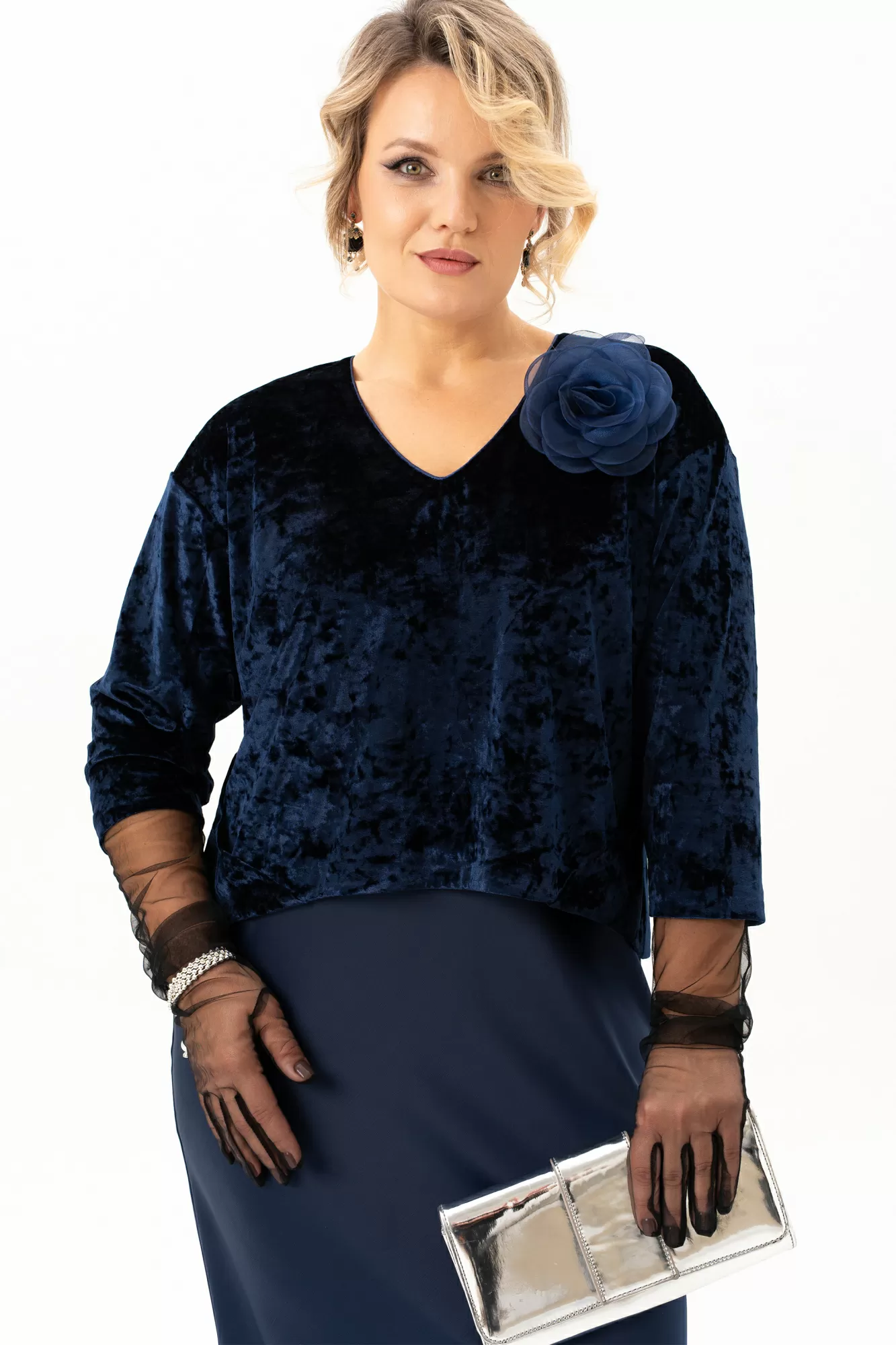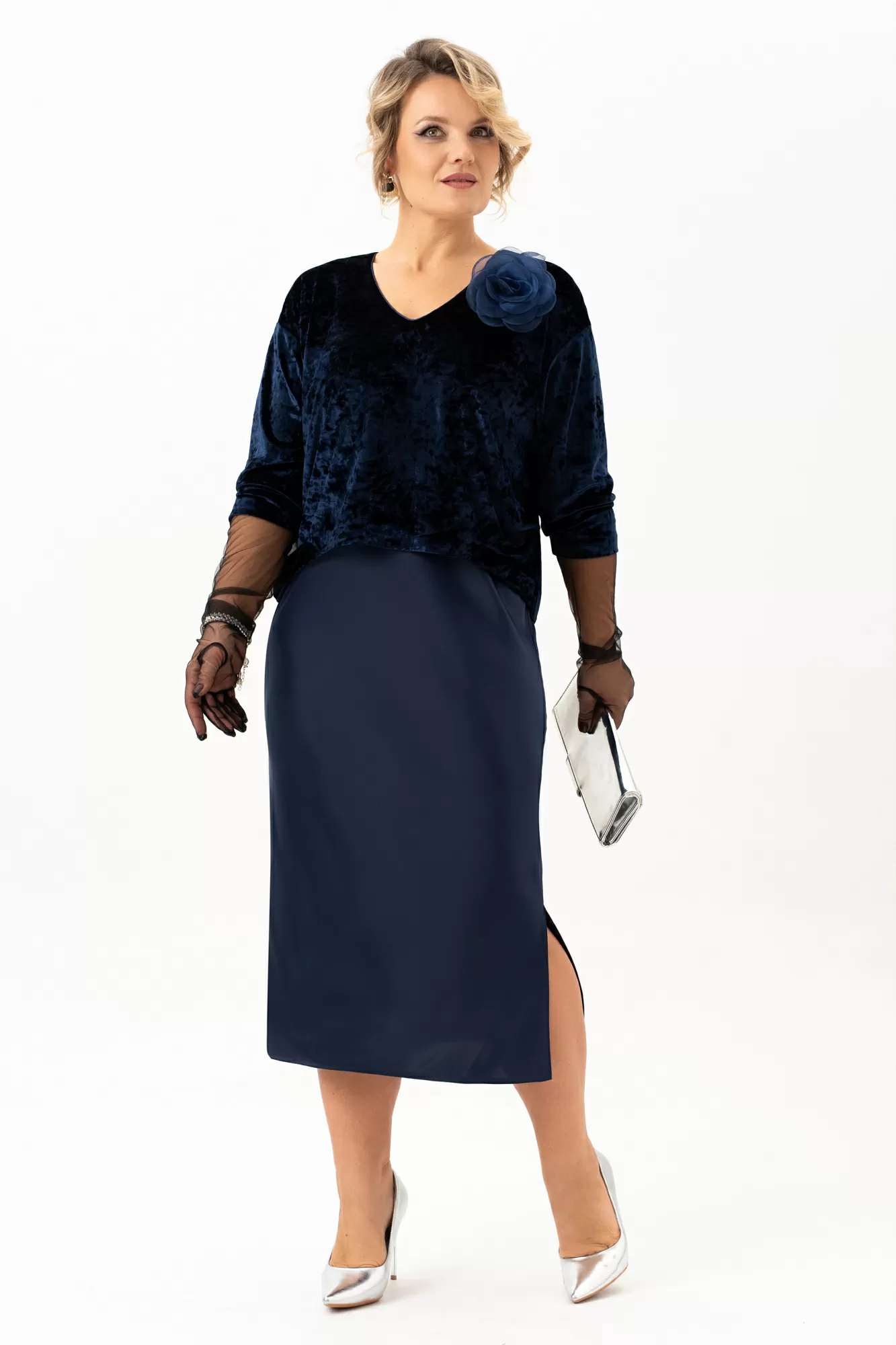 Окунитесь в мир роскоши и элегантности с бархатным вечерним платьем О-образного силуэта имитации костюма. Эта модель, словно сошедшая со страниц модного журнала , станет идеальным выбором для любого праздничного события. Мягкий бархат струится по фигуре, подчеркивая ее изгибы и создавая неповторимый образ. V-образный вырез горловины придает образу женственность и нежность, а атлас по низу платья добавляет нотку изысканности. Длина миди делает это платье универсальным, подходящим как для торжественных мероприятий, так и для романтических свиданий. Представьте себя в этом платье на новогодней вечеринке, на свадьбе лучшей подруги или на любом другом празднике – вы будете неотразимы! Кант по горловине изделия , съемный бант и удлиненные перчатки из эластичной сетки добавляют изюминку, делая образ еще более привлекательным. Платье на трикотажной подкладке выполнено из ткани которая обеспечивает комфорт и свободу движений на протяжении всего вечера. Благодаря отрезному под грудью силуэту, модель идеально садится на фигуру, подчеркивая все ее достоинства.