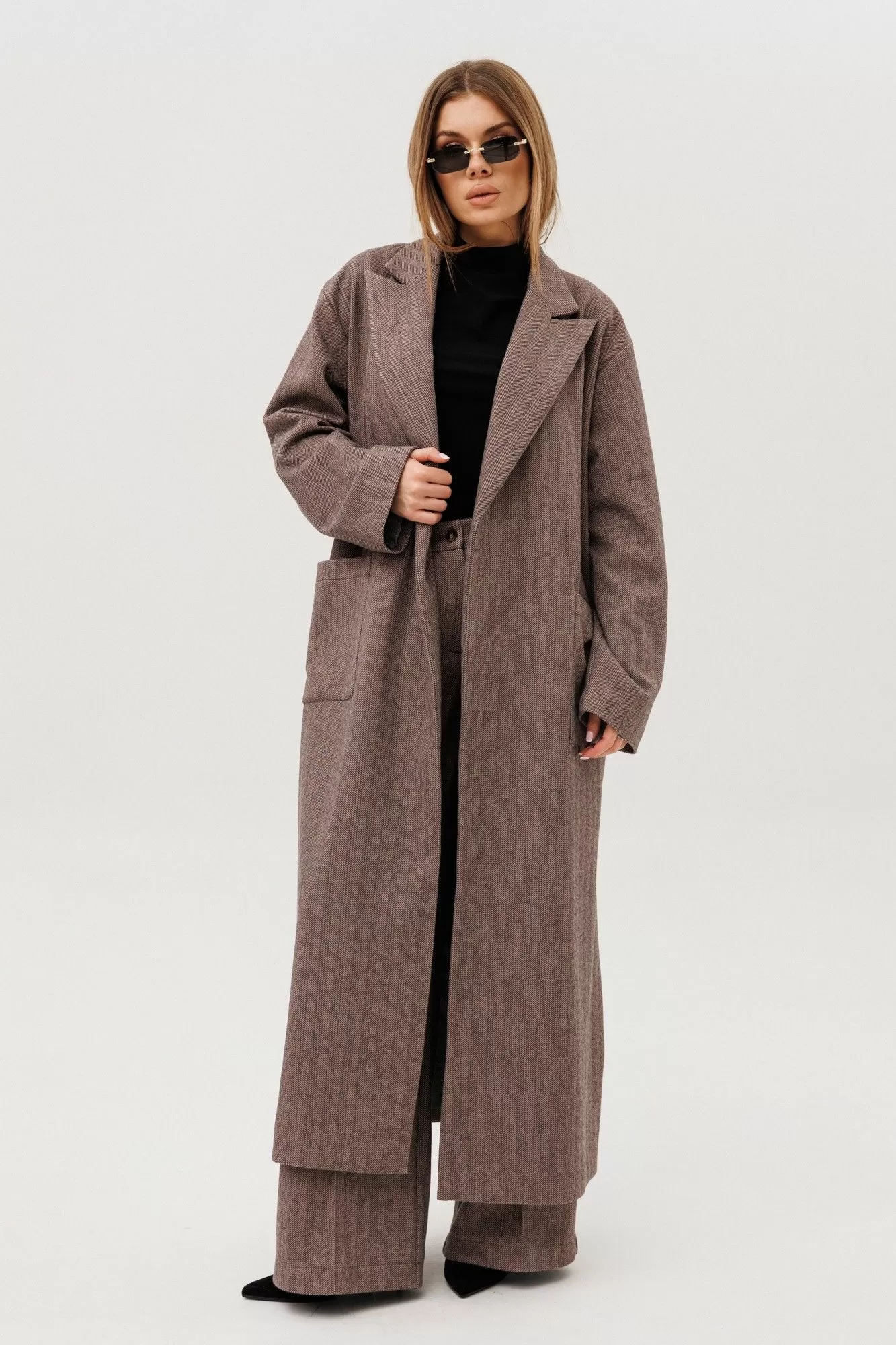 Кардиган женский,выполнен из теплой ткани, свободного силуэта со спущенным плечом,в боковых швах разрезы. Рукав ДЛИННЫЙ.По переду накладные карманы.Кардиган на подкладке. Пояс из основной ткани в комплекте.