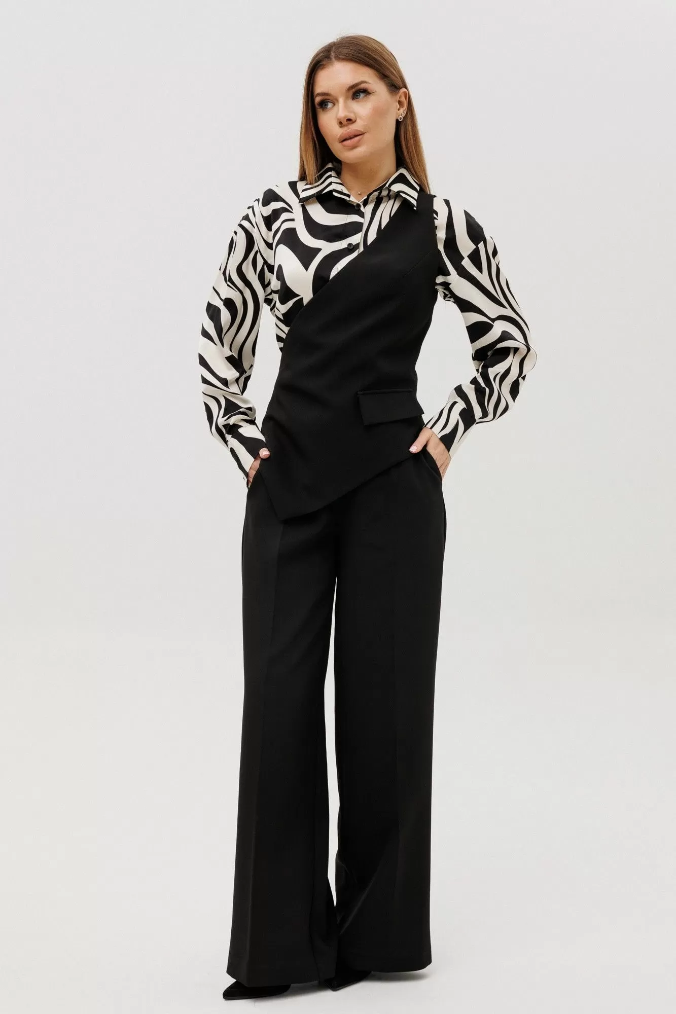 Элегантные женские брюки прямого кроя ,по переду на брючинах стрелки. Модель с высокой посадкой на притачном поясе обеспечивает идеальное прилегание. Спереди расположена практичная застежка на тесьму-молнию, добавляющая удобства при носке. Брюки укомплектованы функциональными боковыми карманами, что придает модели дополнительную практичность и удобство. Эта модель идеально подойдет как для офиса, так и для создания повседневных стильных образов.