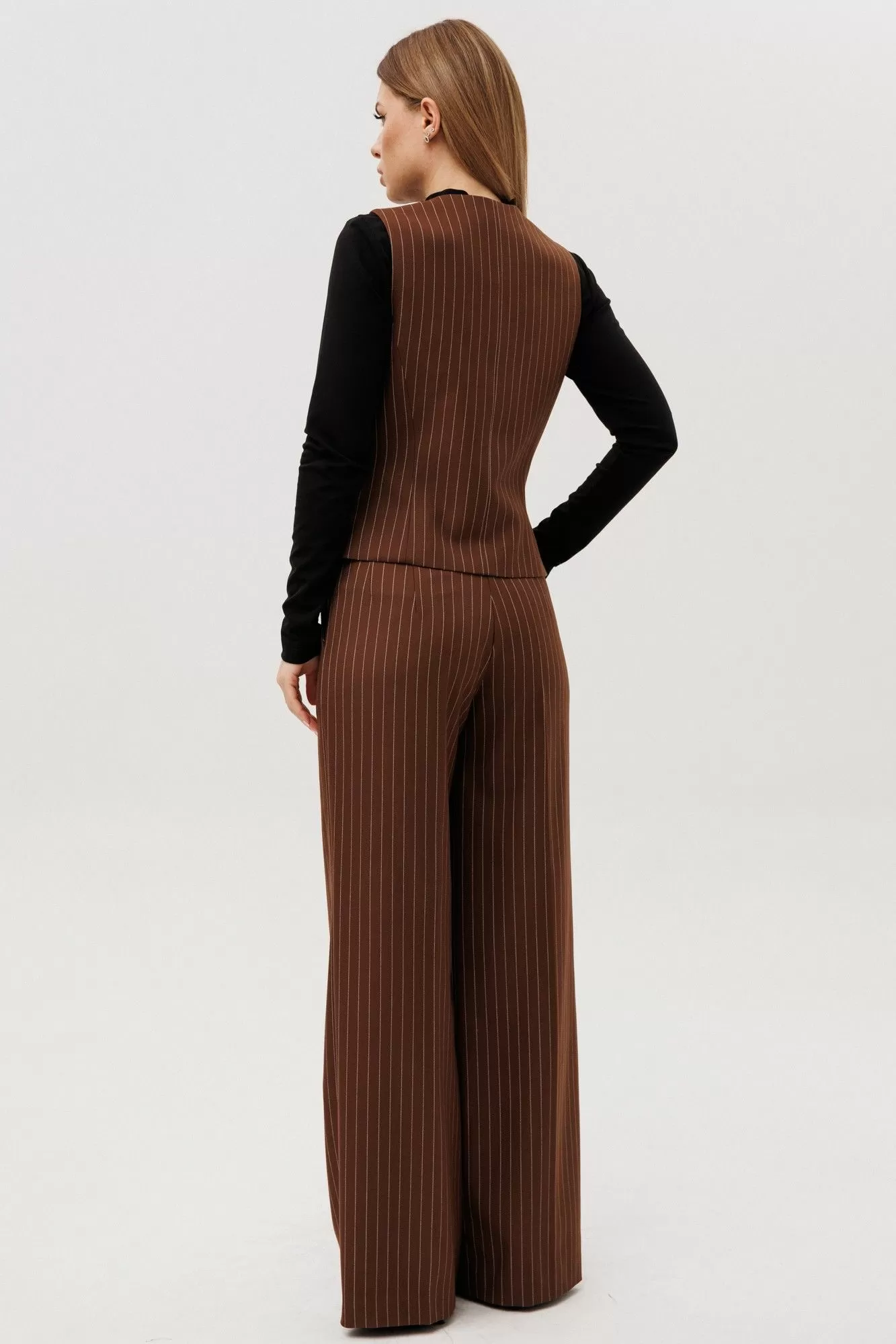 Элегантные женские брюки прямого кроя ,по переду на брючинах стрелки. Модель с высокой посадкой на притачном поясе обеспечивает идеальное прилегание. Спереди расположена практичная застежка на тесьму-молнию, добавляющая удобства при носке. Брюки укомплектованы функциональными боковыми карманами, что придает модели дополнительную практичность и удобство. Эта модель идеально подойдет как для офиса, так и для создания повседневных стильных образов.Костюм выполнен из высококачественной итальянской ткани.