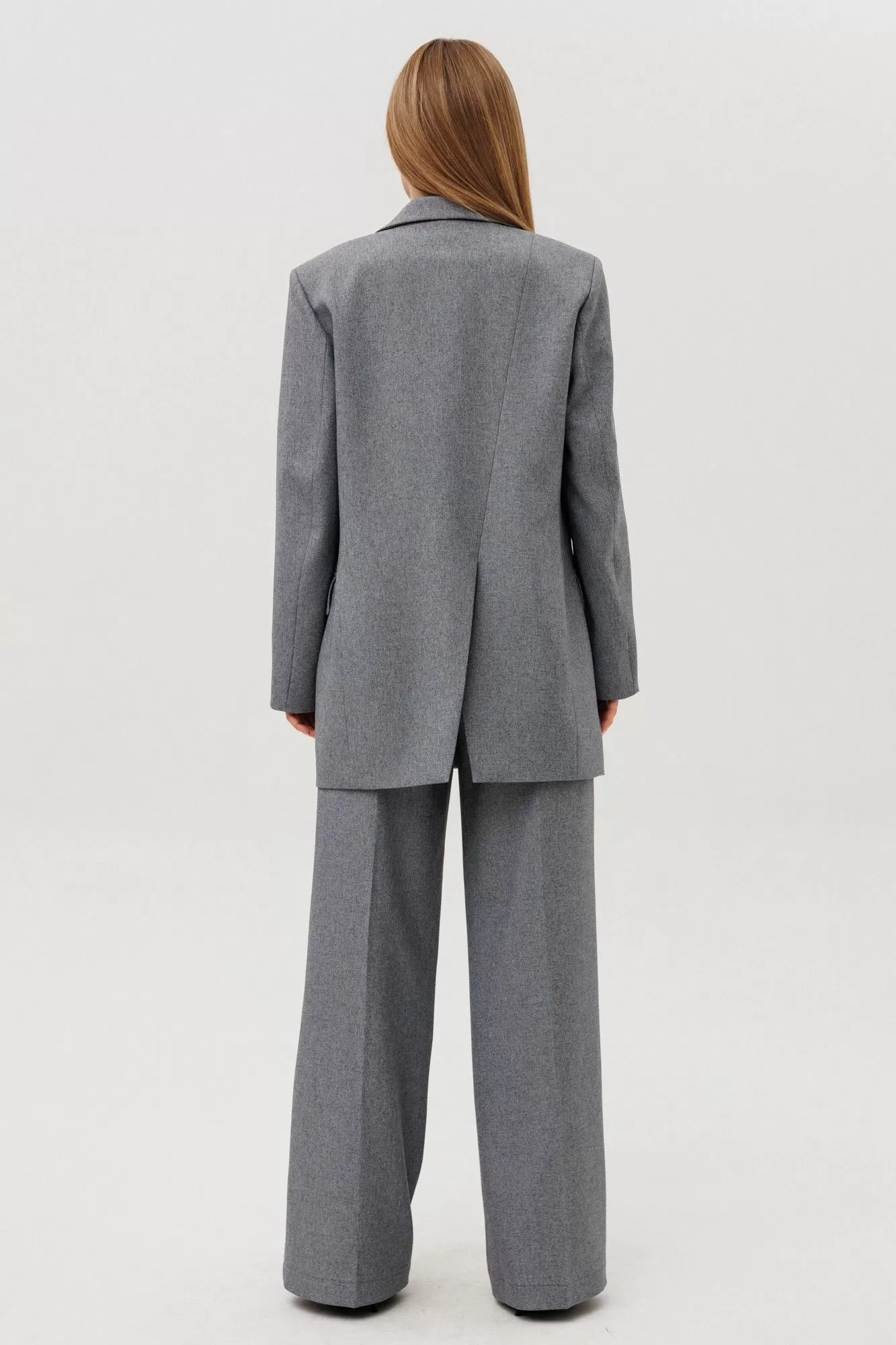 Элегантный брючный костюм идеальное сочетание стиля и комфорта. Жакет прямого силуэта, оснащен двухбортной застежкой на петли-пуговицы, что добавляет образу официальности. Детализированный дизайн включает нагрудную вытачку, переходящую в прорезной карман с клапаном на передней части, и фигурный рельеф на спинке с щлицей, обеспечивающий отличную посадку по фигуре. Рукав жакета двухшовный, подчеркивающий линии рук. Жакет на подкладке для дополнительного комфорта. Брюки прямого кроя с высокой посадкой на притачном поясе, застежка на тесьму-молнию гарантирует удобство при носке. Удобные боковые карманы повышают функциональность изделия. Модель выполнена из качественного тканевого материала, который хорошо держит форму и подходит для деловых встреч, официальных мероприятий или повседневной носки в офисе. Этот костюм — прекрасный выбор для женщин, ценящих в одежде универсальность и изысканность.