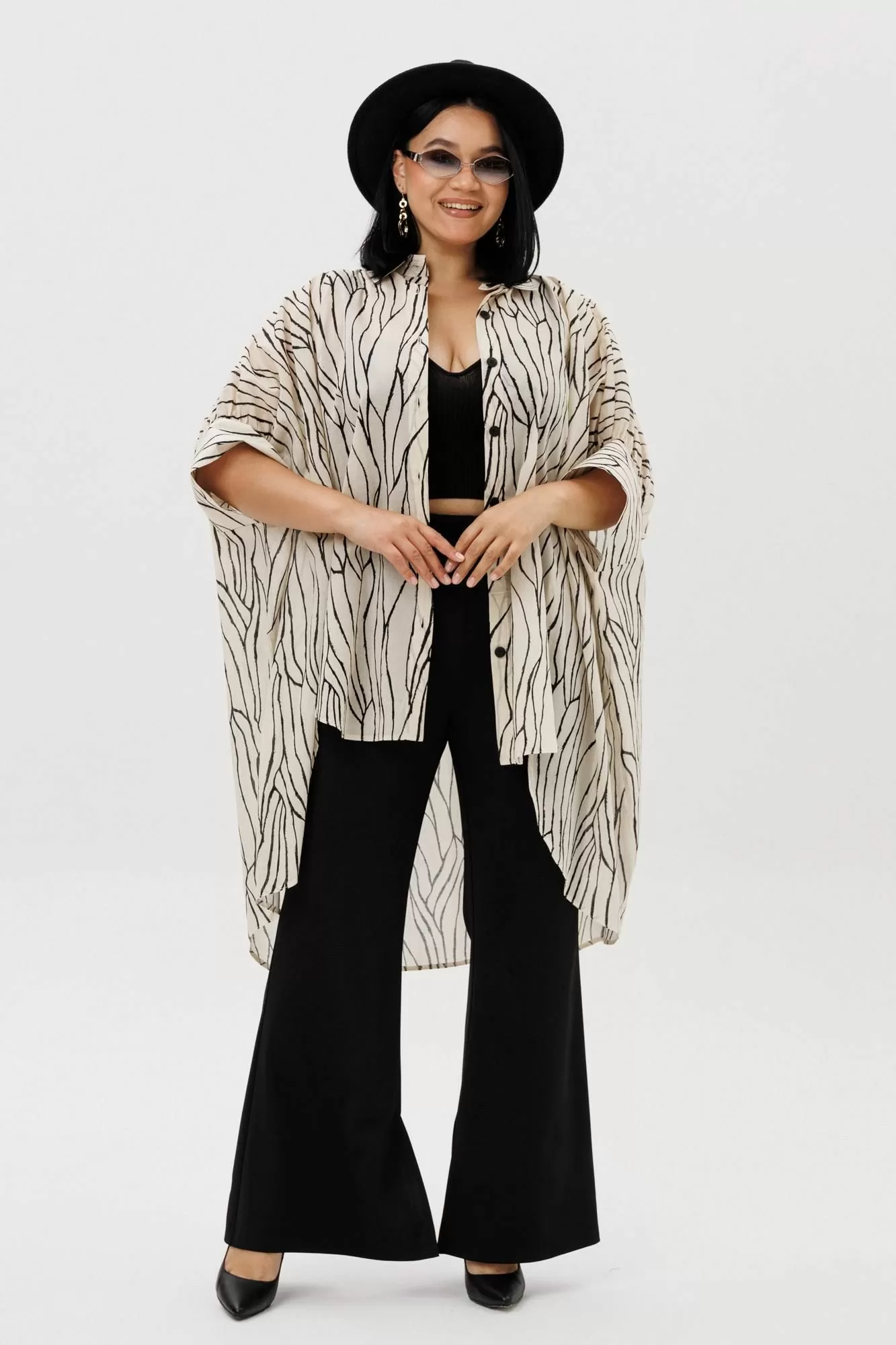 Стильный и изысканный женский комплектот бренда Anastasia, состоящий из блузки и брюк, идеальный для любого случая. Он станет отличным вариантом для торжественных мероприятий таких как: поход в ресторан, выставки, корпоратив. Этот комплект сочетает в себе элегантность и комфорт, что делает его подходящим как для деловых встреч или праздничныйх выходов. Оригинальная женская блузка из хлопковой ткани типа поплина. Легкая и практически невесомая. Модель onesize. Брюки -клеш, пояс на резинке. По внутреннему срезу по низу идут разрезы. Отдельный части комплекта легко будут сочетаться с вещами из Вашего гардероба. Модель можно отнести к стилю кэжуал. Костюм можно носить с туфлями, кроссовками или ботинками. Обязательно добавьте наш бренд в избранное и следите за новинками, распродажами, скидками и акциями! Хороших покупок от «Анастасия». Длина блузки (по спинке): 100 см.