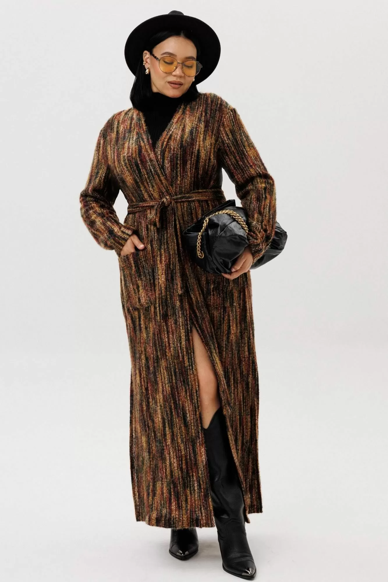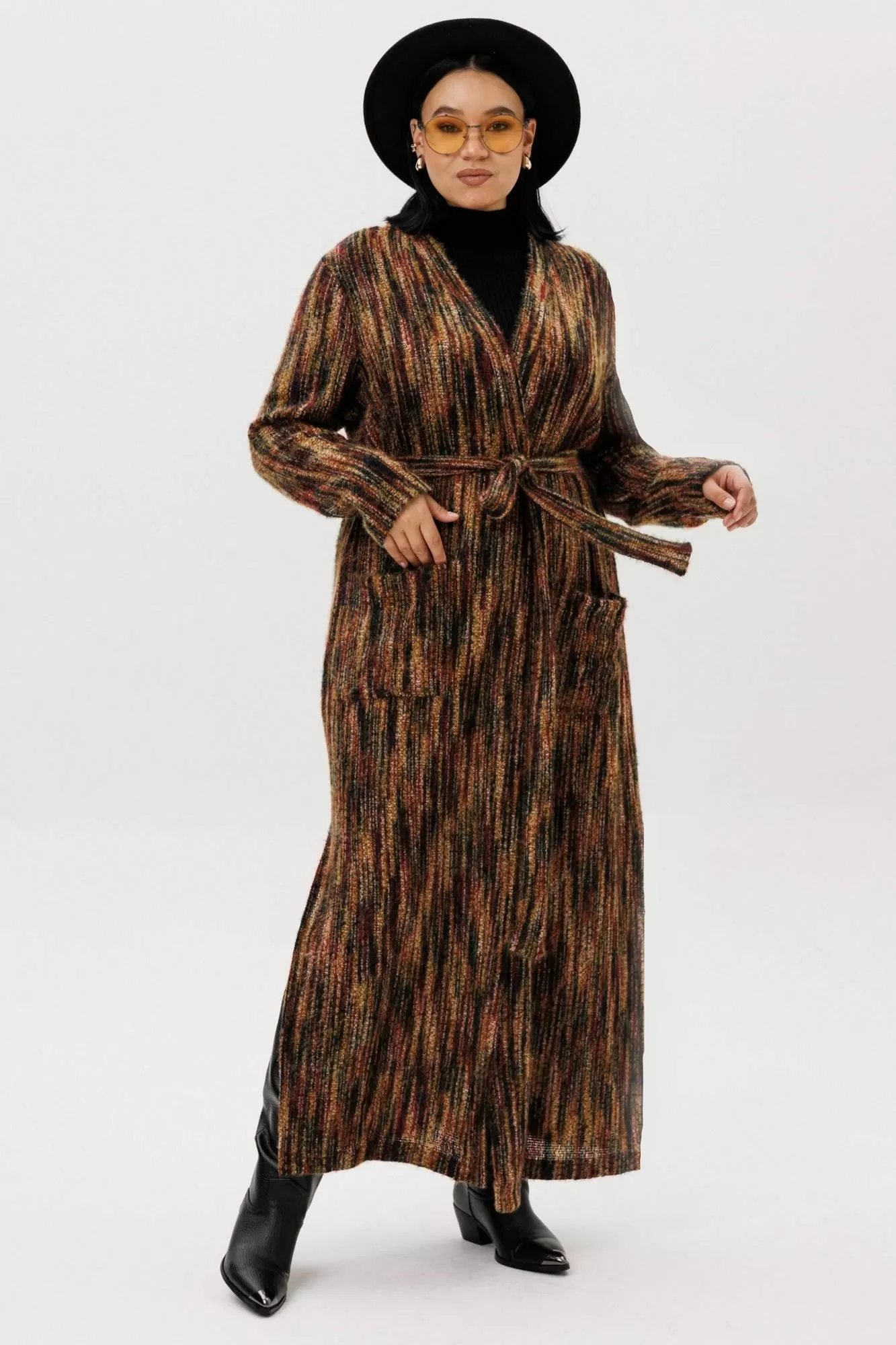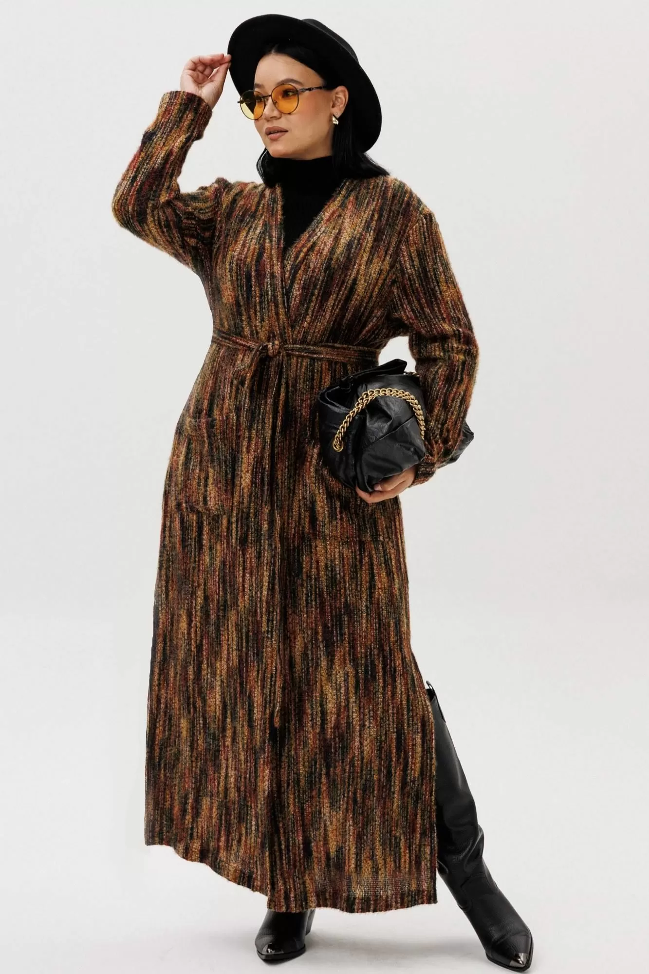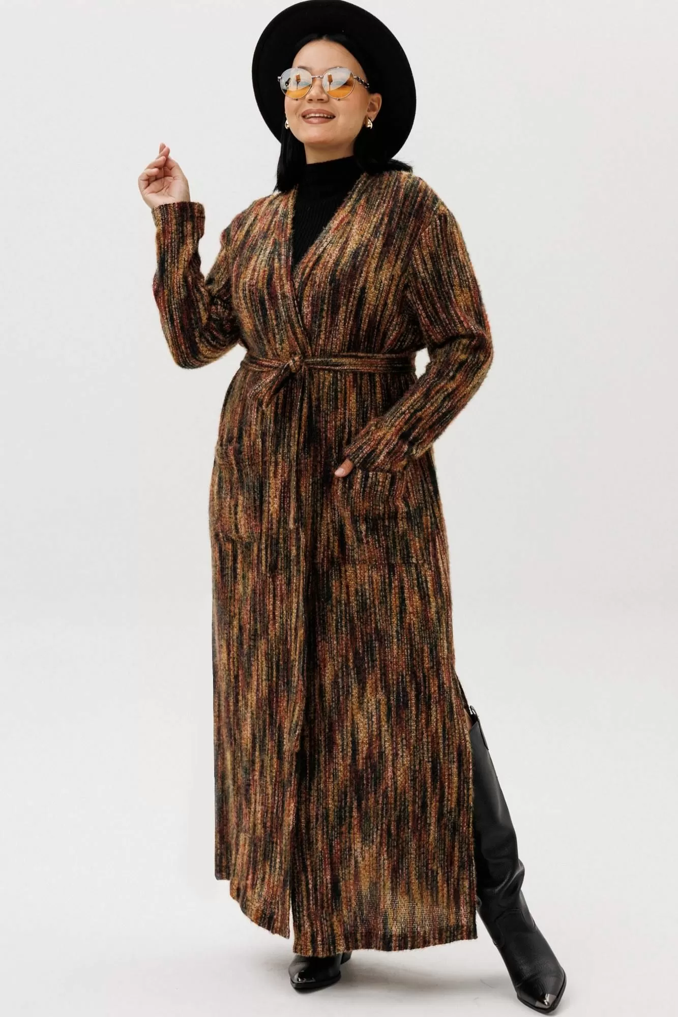 Женский кардиган – идеальный выбор для тех, кто ценит комфорт, стиль и универсальность. Эта вязаная кофта предназначена для женщин, желающих всегда выглядеть модно, будь то осень, зима, весна или лето. Благодаря удлиненному крою, изделие подходит как для повседневной носки, так и для особых случаев, подчеркивая вашу индивидуальность и женственность. Лёгкий трикотажный материал делает эту вещь отличным вариантом для теплого времени года, обеспечивает необходимое тепло в прохладную погоду. Кофта отлично садится на любые типы фигуры в стиле оверсайз, идеально подходит для беременных. Модель выполнена в трендовых цветах 2025 года, что гарантирует актуальность вашего гардероба. Этот женский кардиган легко комбинируется с другой одеждой – от строгих брюк до легких платьев, подходит для офиса и прогулок. Особое внимание уделено деталям и аккуратной отделке. Чтобы ничего не сковывало ваши движения- по бокам разрезы, а для практичности - накладные карманы и пояс. Нарядная и женственная модель подчеркивает достоинства фигуры и делает образ завершенным. Главное конкурентное преимущество – сочетание качества премиальной вязки и современного дизайна, что выделяет этот товар среди других кофт и кардиганов на рынке. Если вы ищете стильные, трендовые и одновременно практичные решения, выбирайте этот вариант – он создан для женщин, которые ценят комфорт и индивидуальность. Длина по спинке: (50-54)-129см, (56-60) -131см, Длина рукава: (50-54)-60см, (56-60): 61см