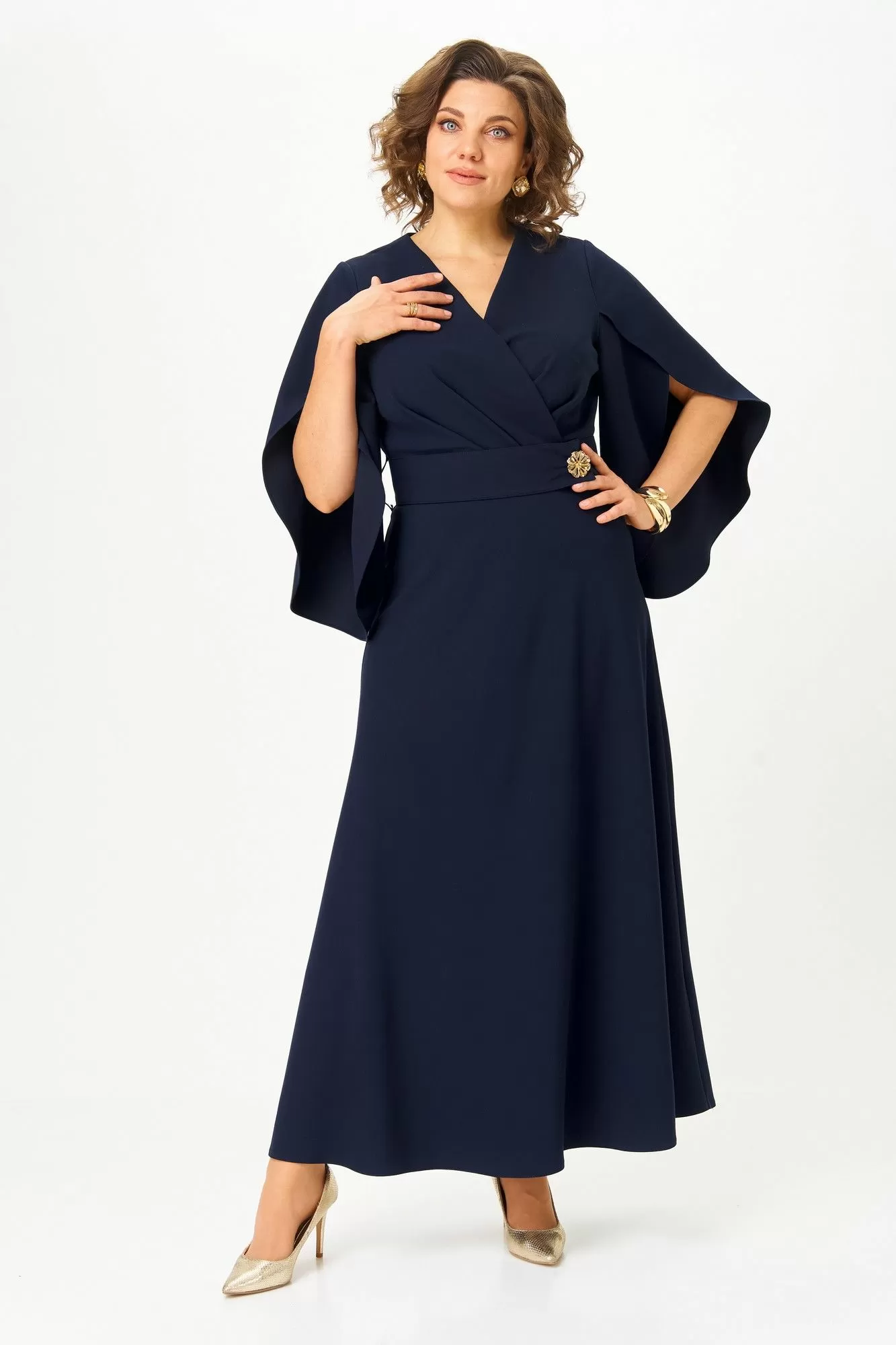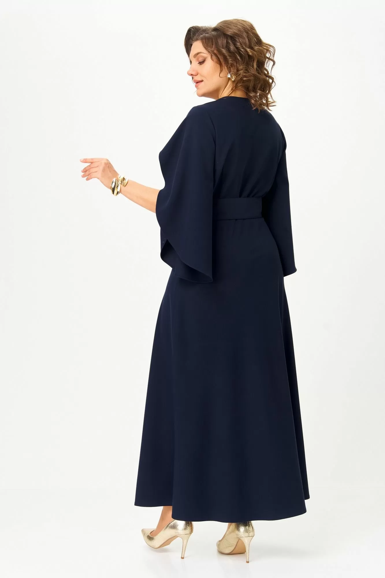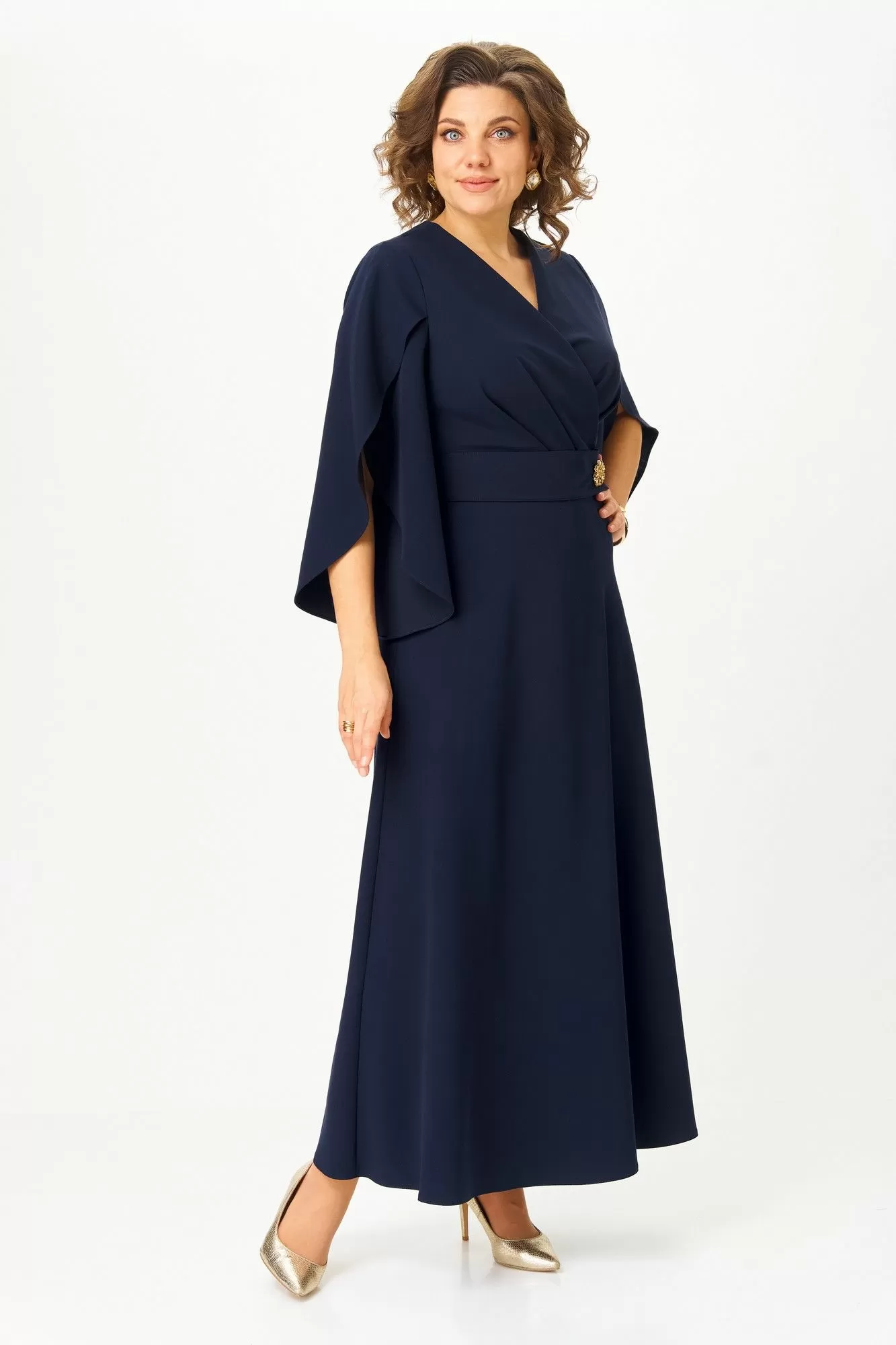 Платье длиной макси, с полуприлегающим лифом и юбкой А-образной формы, выполнено из однотонной ткани костюмно-плательной группы .