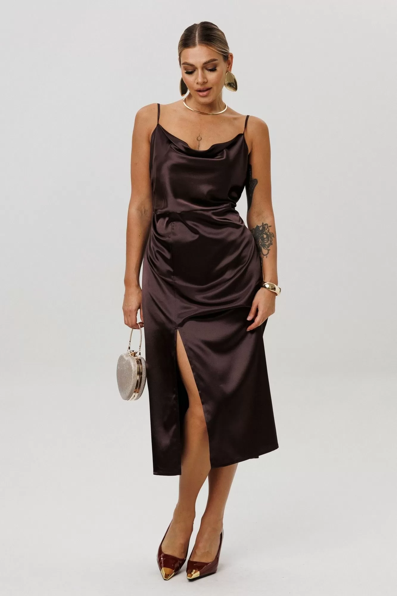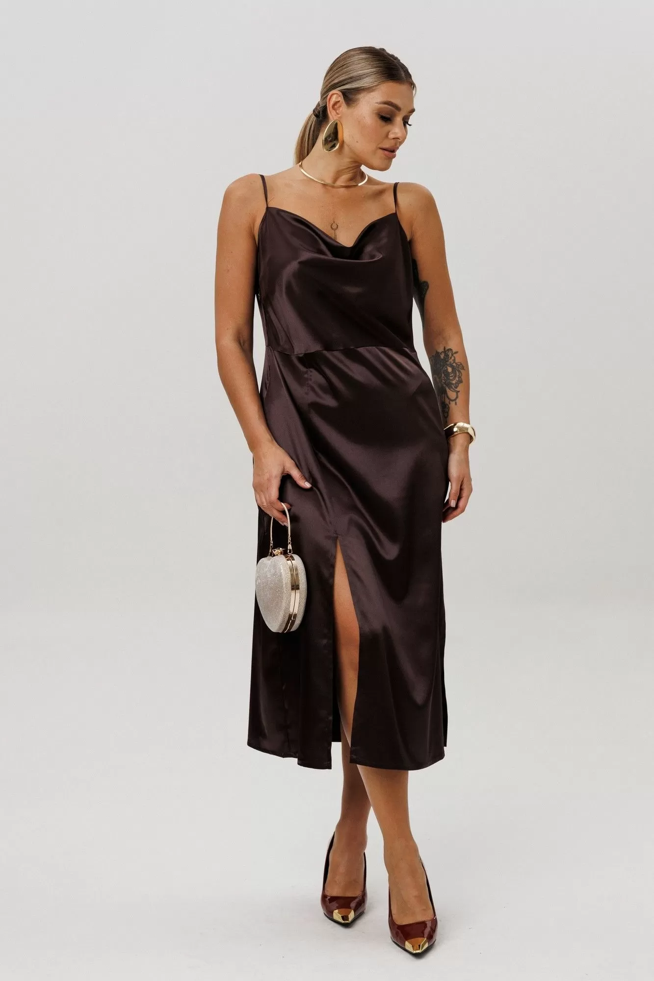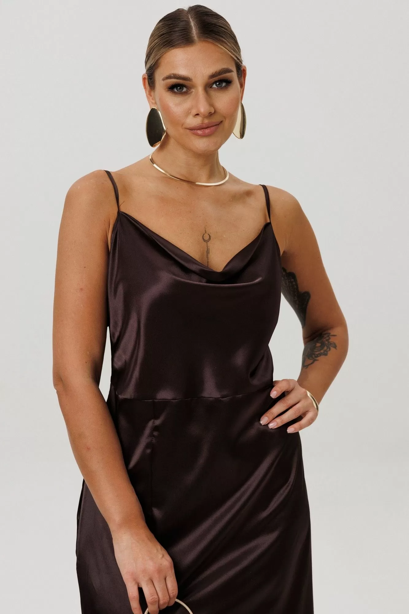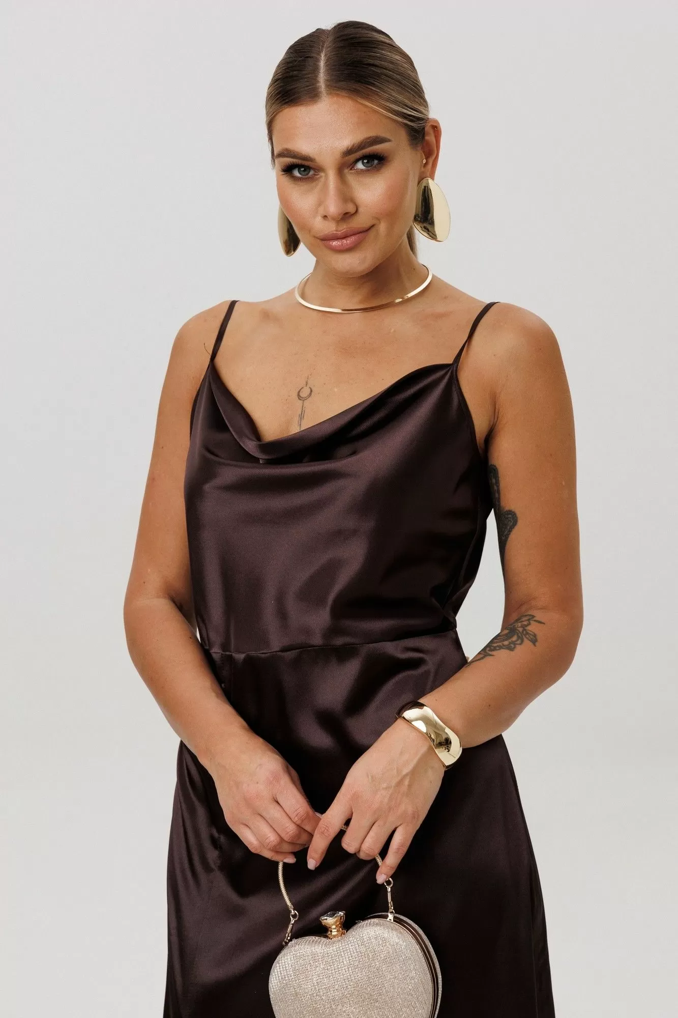 Платье в цвете «ореховый мокко» не оставит вас равнодушными, окунитесь в эту магию, и ваш вечер будет незабываемым.