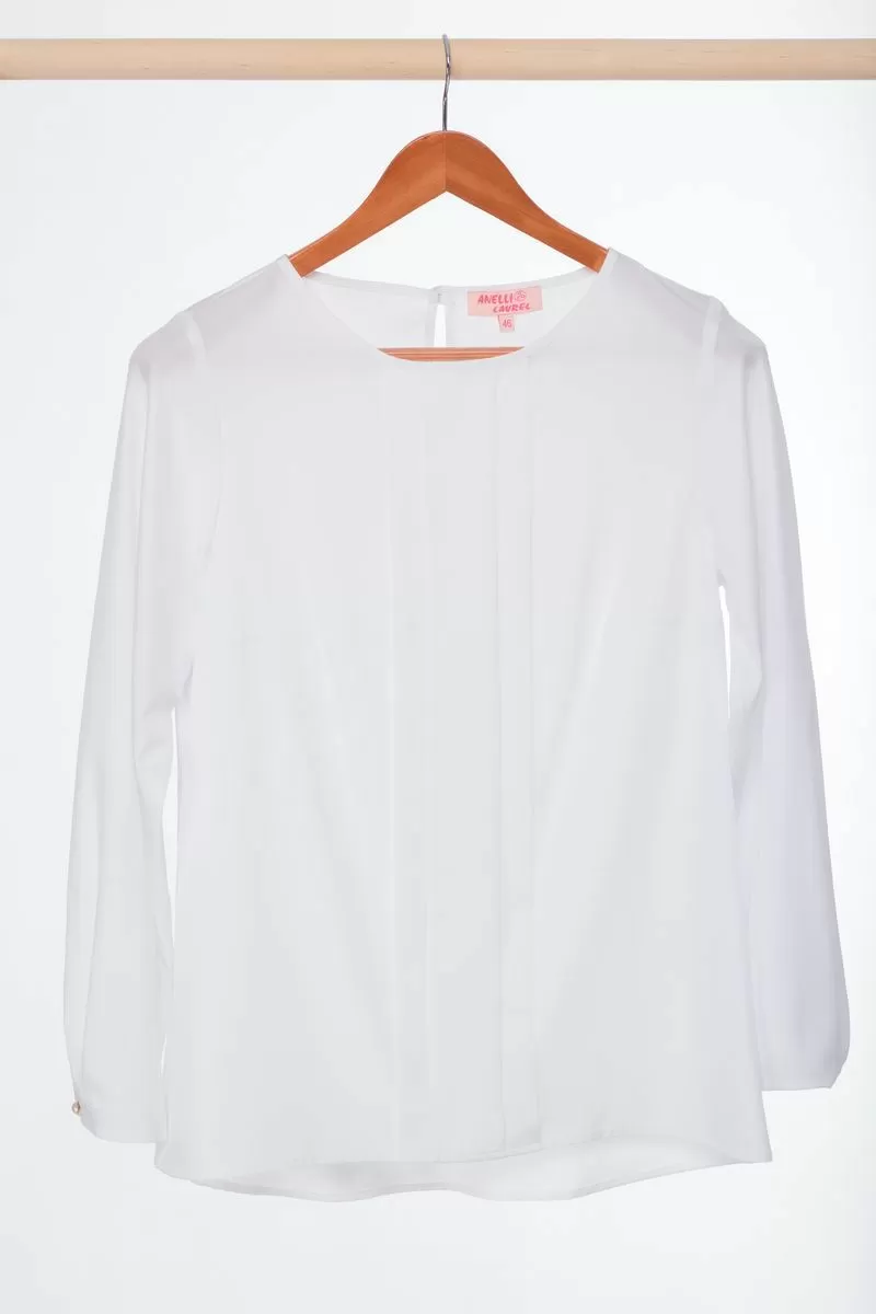 Классическая блузка - элегантная базовая вещь, необходимая каждой девушке! Прямого свободного силуэта, по переду выполнены параллельные складки, визуально вытягивающие силуэт, с втачными длинными рукавами с манжетами и изящными пуговицами, спинка цельная, с застежкой «капля» . Вырез горловины закругленный. Спинка слегка удлиненная.