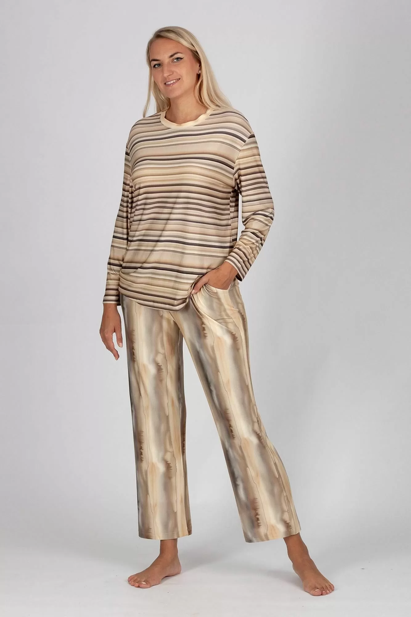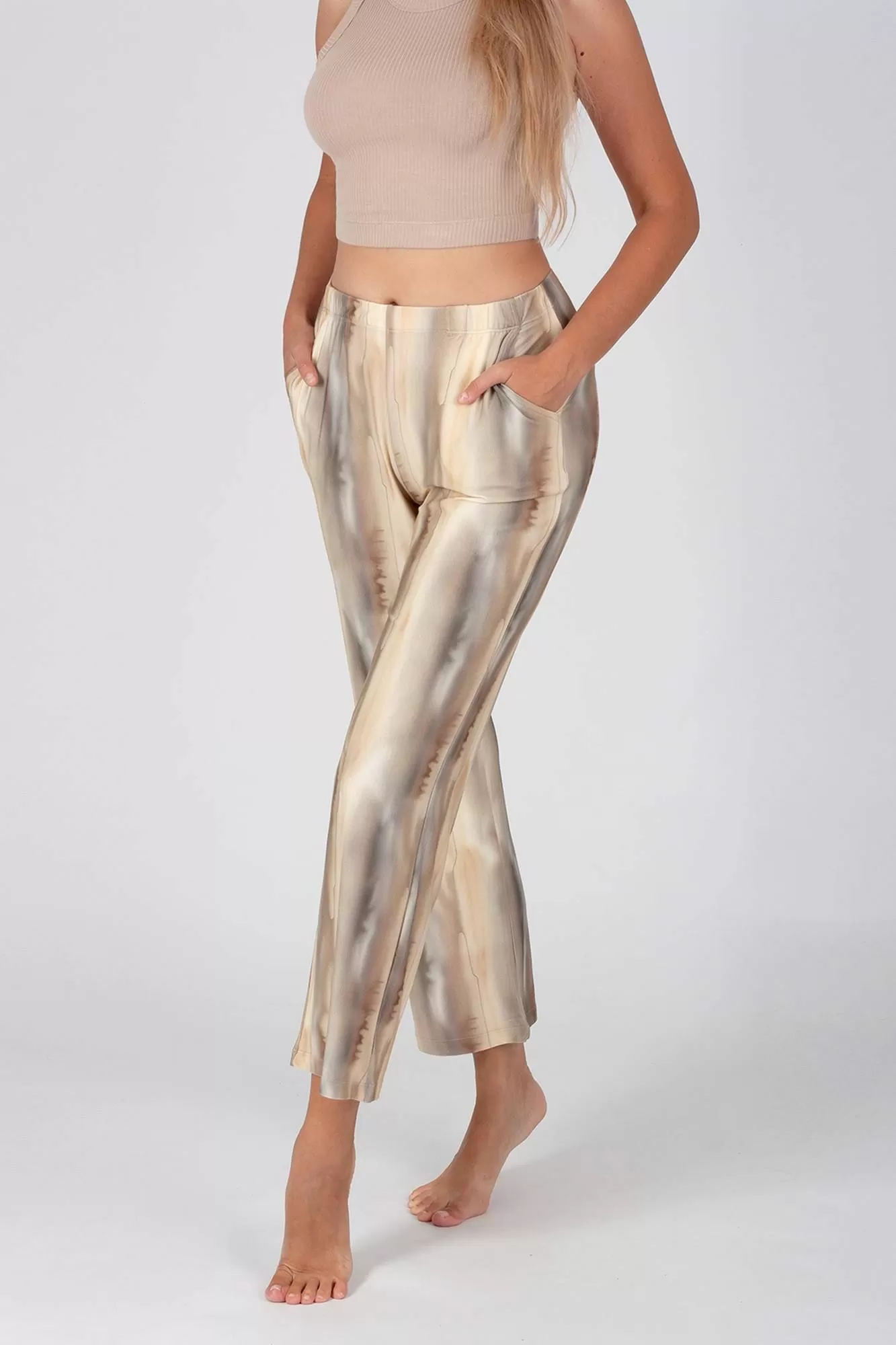 Удобные трикотажные брюки для дома и отдыха с вместительными карманами и широким поясом на резинке.