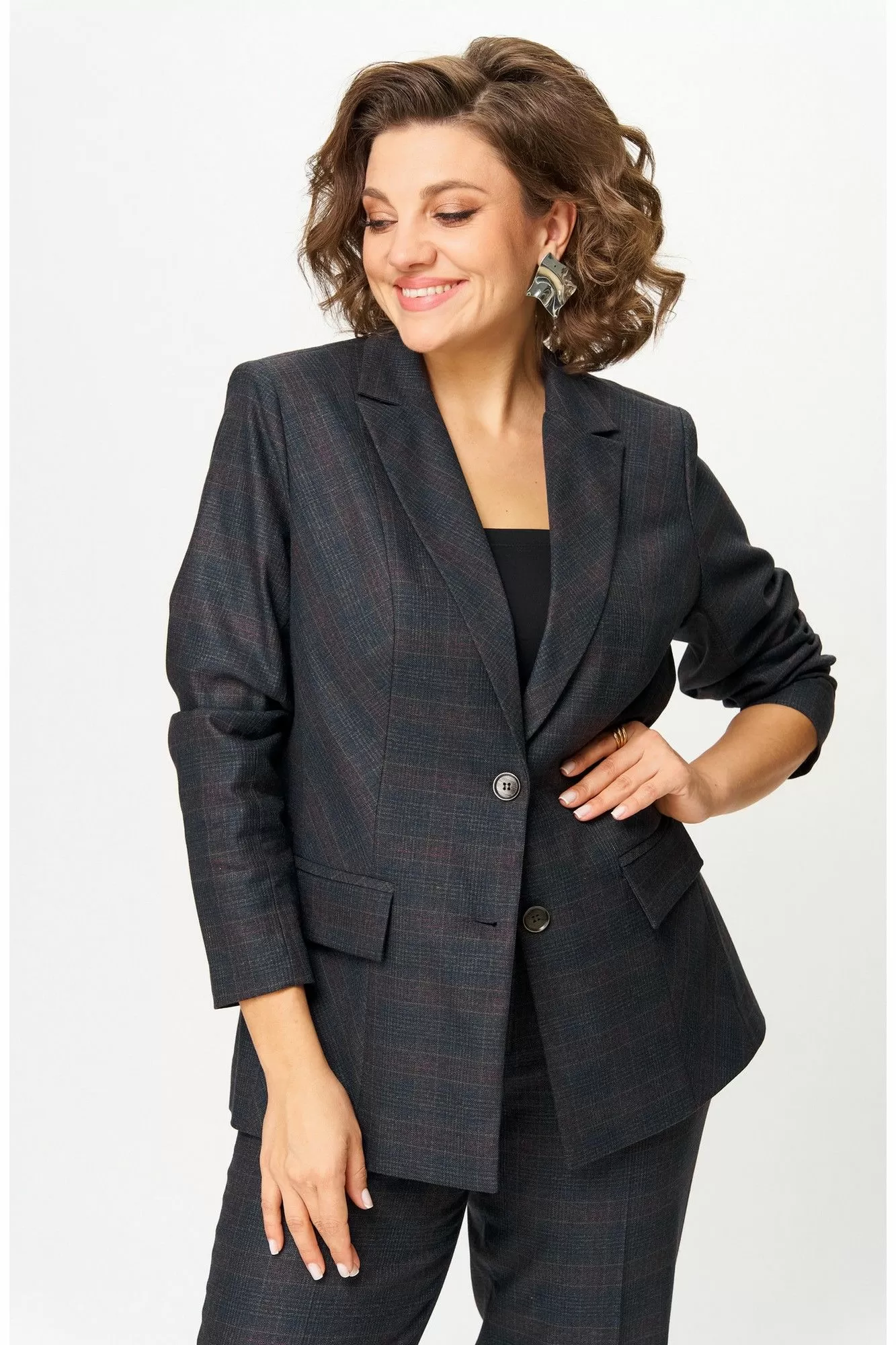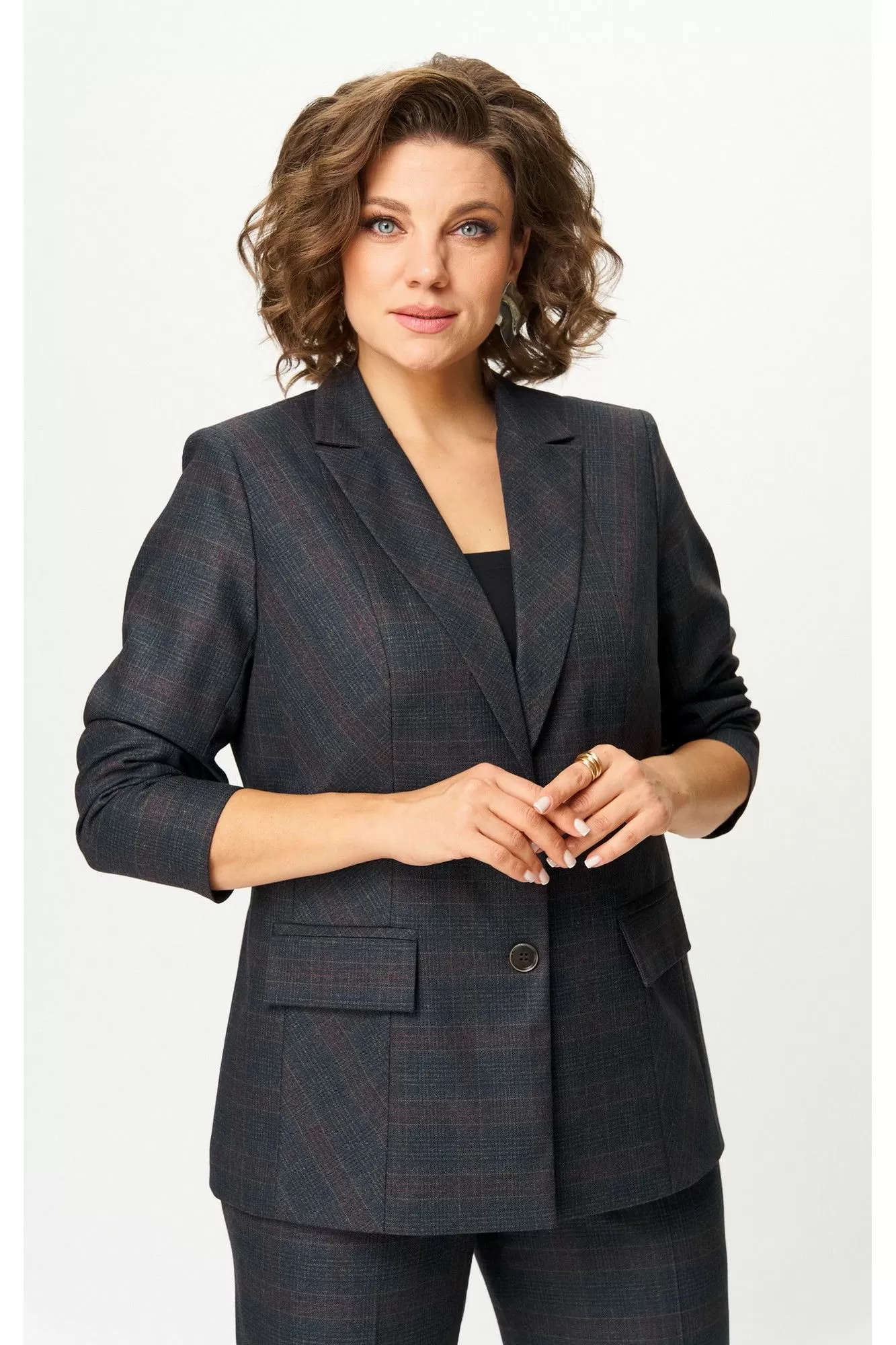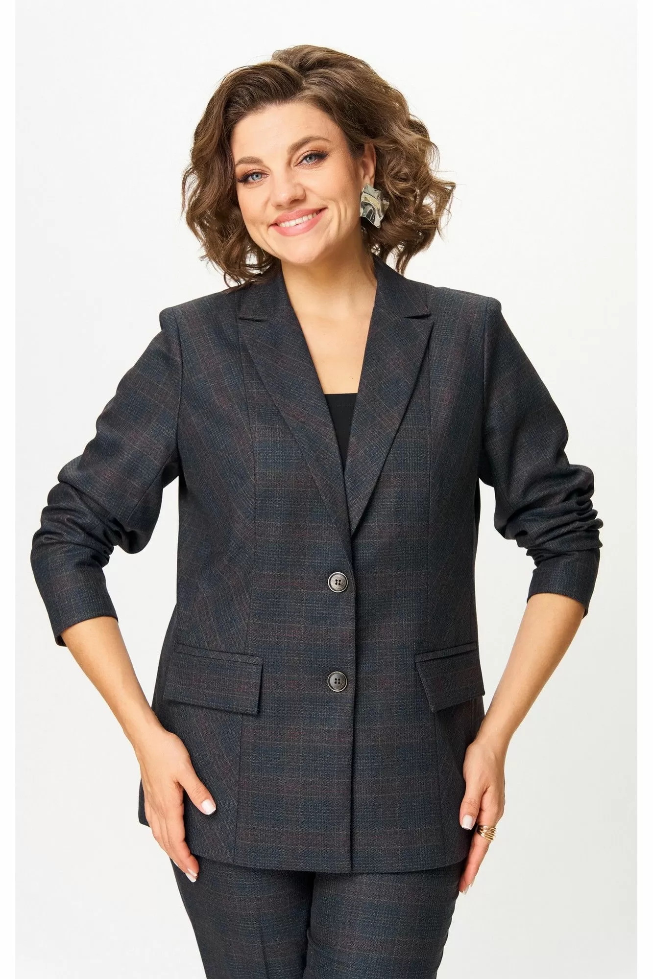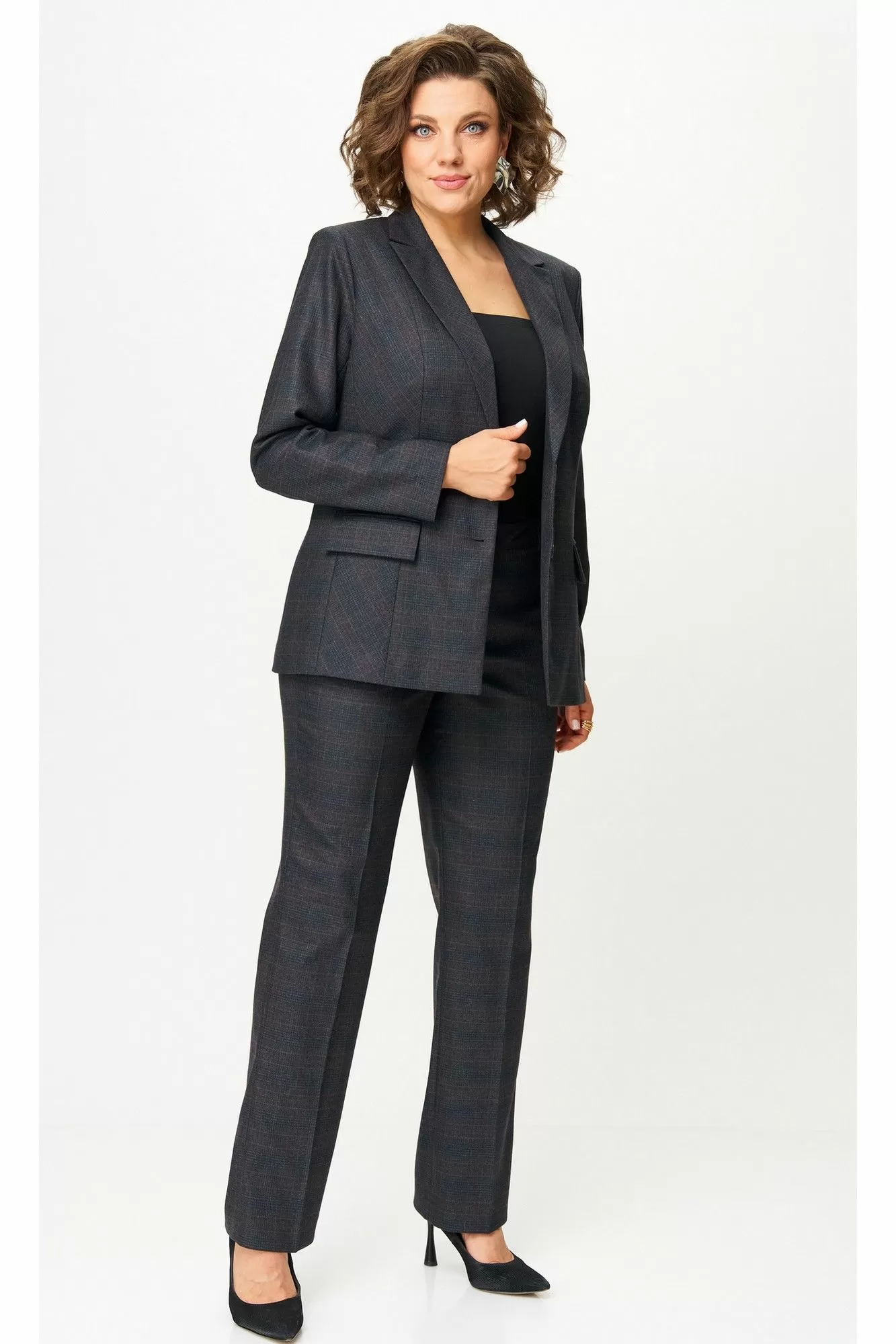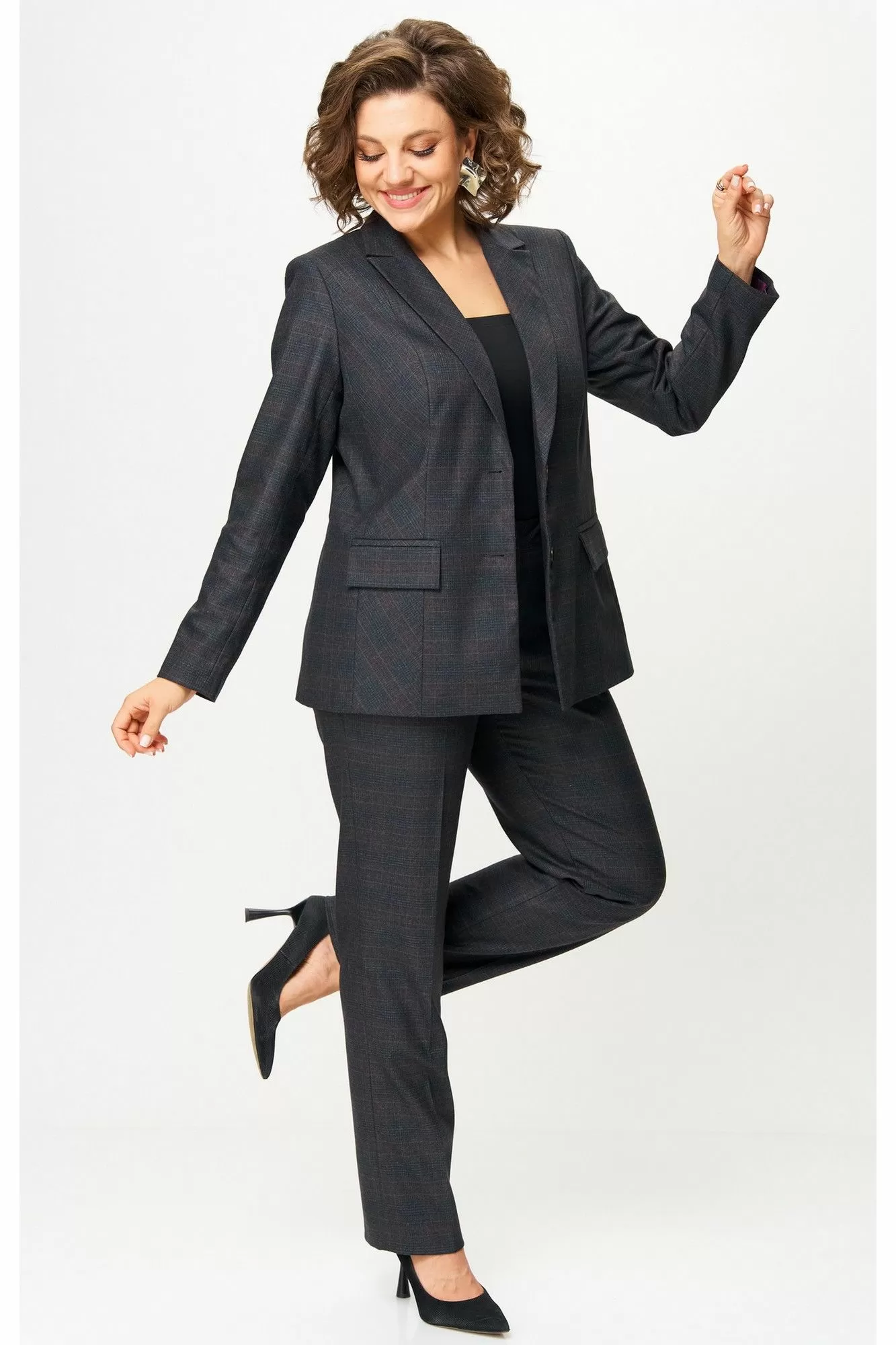 БелЭльСтиль 412-3_14_22+609-3_23_22 серо-коричневая клетка, Брючный костюм