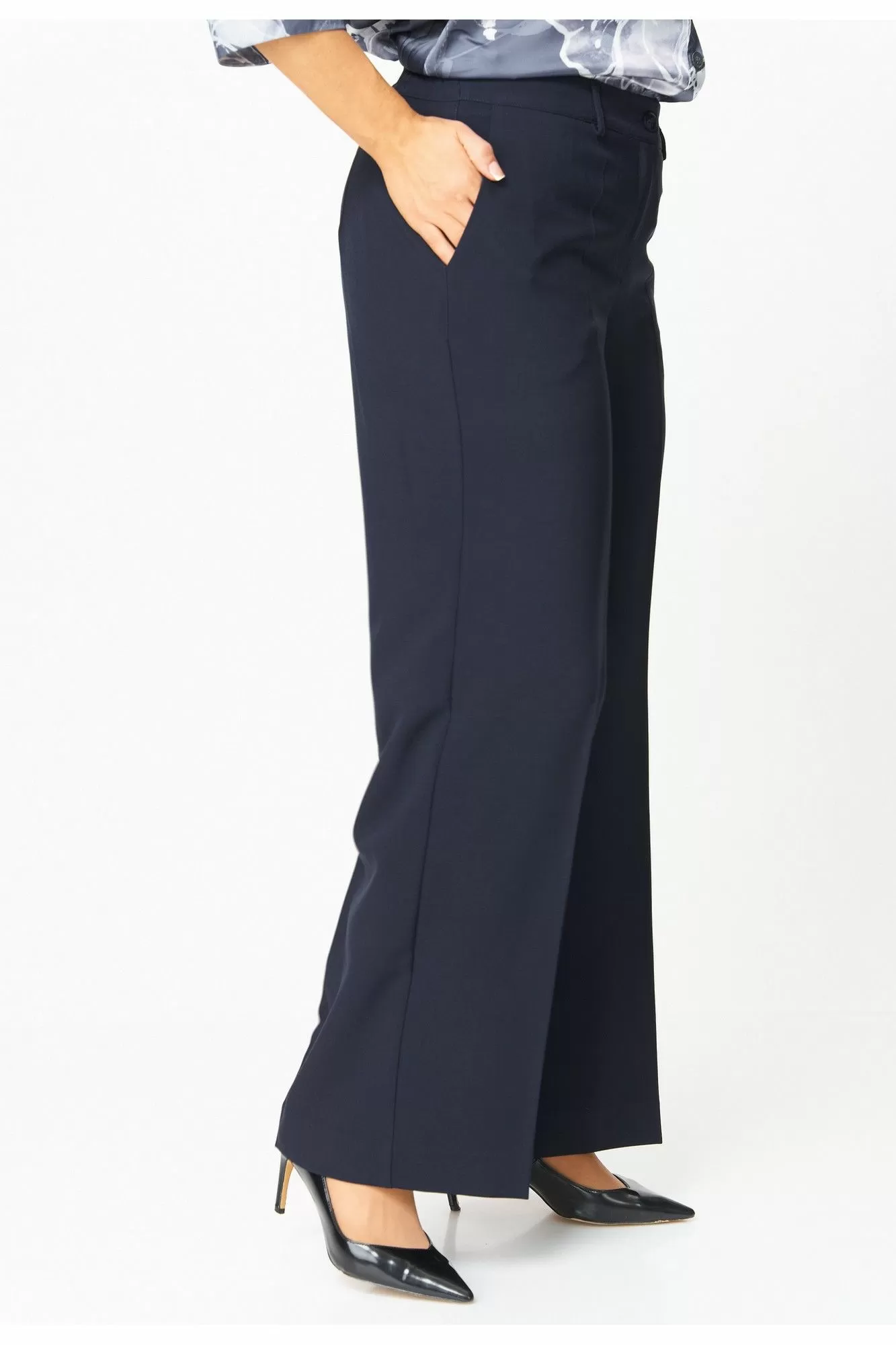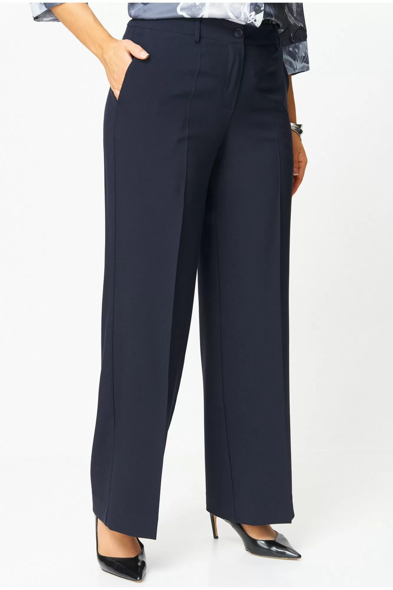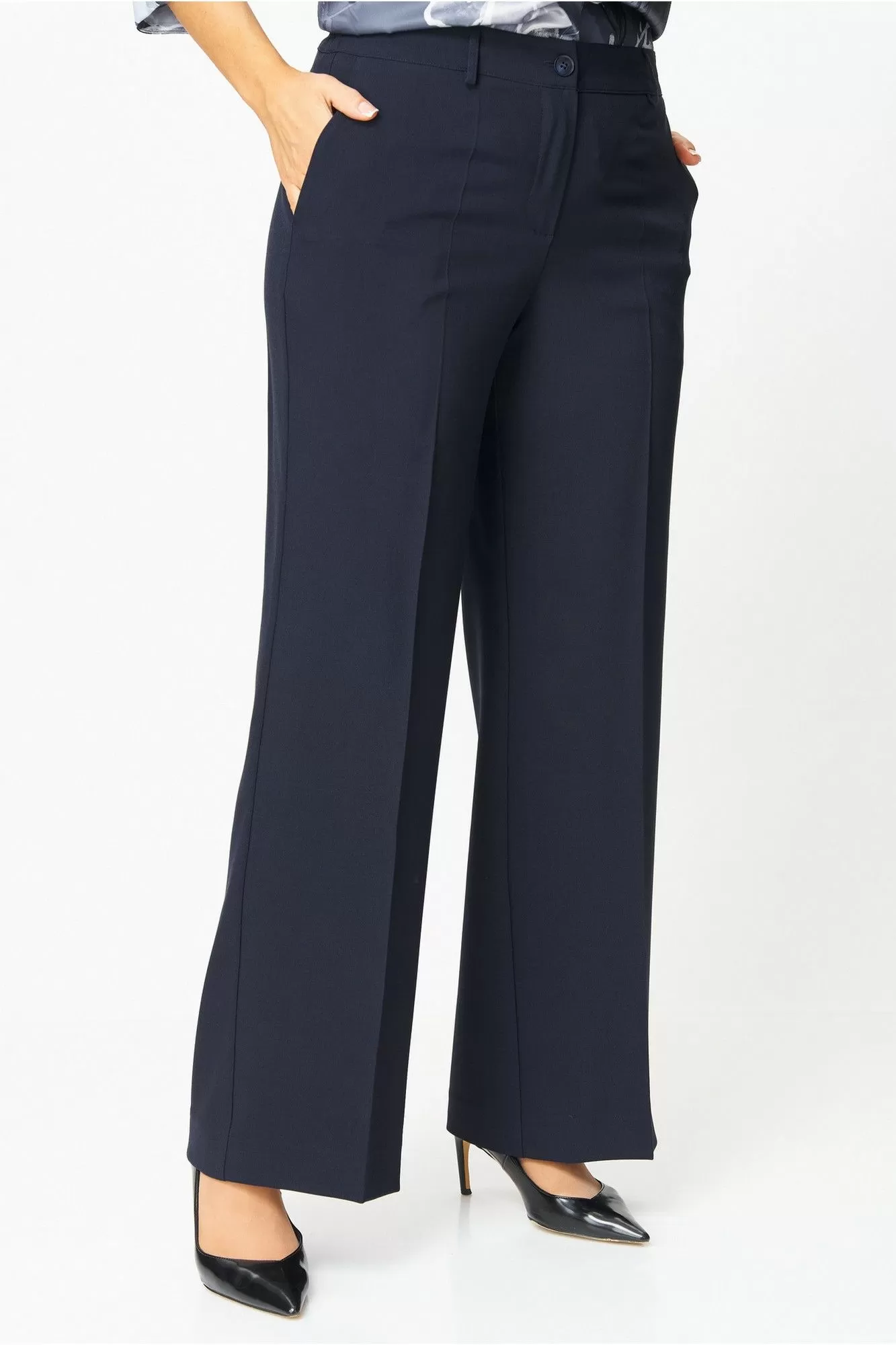 Брюки-палаццо, модель идеального кроя, создает изящный силуэт и невероятный комфорт. Скрытые карманы и фасон с высокой талией делают их одновременно стильными и практичными. Длина брюк от талии по боковому шву 103 см.