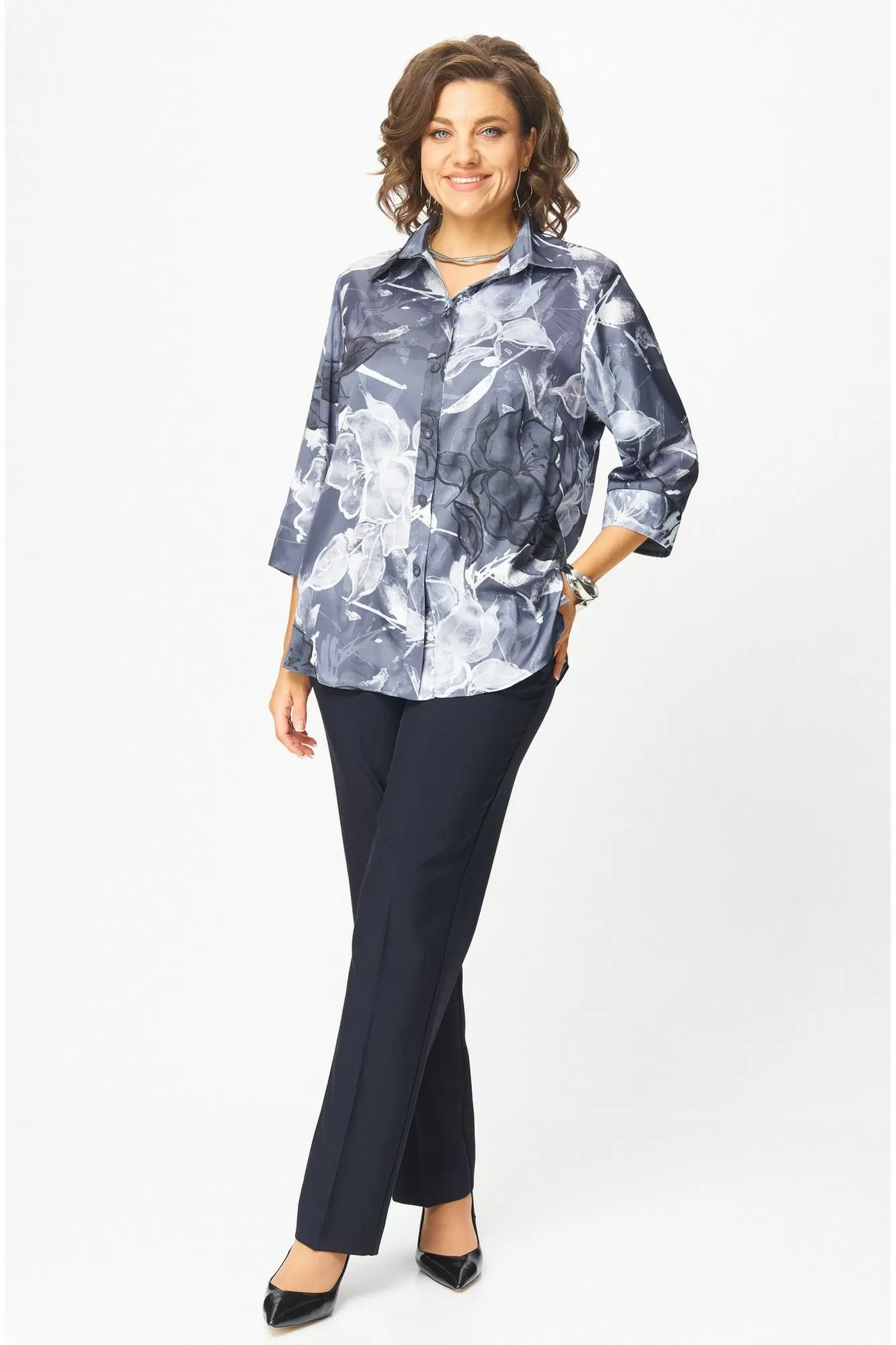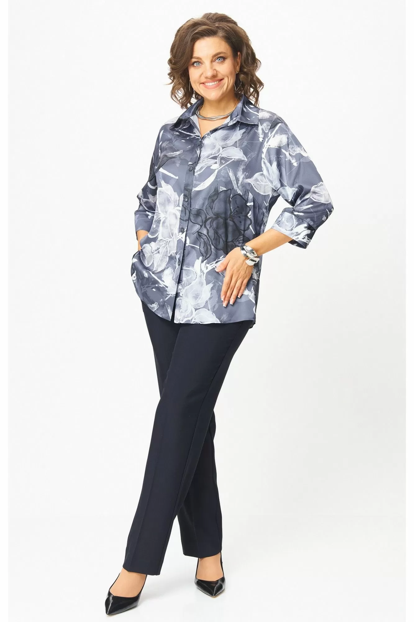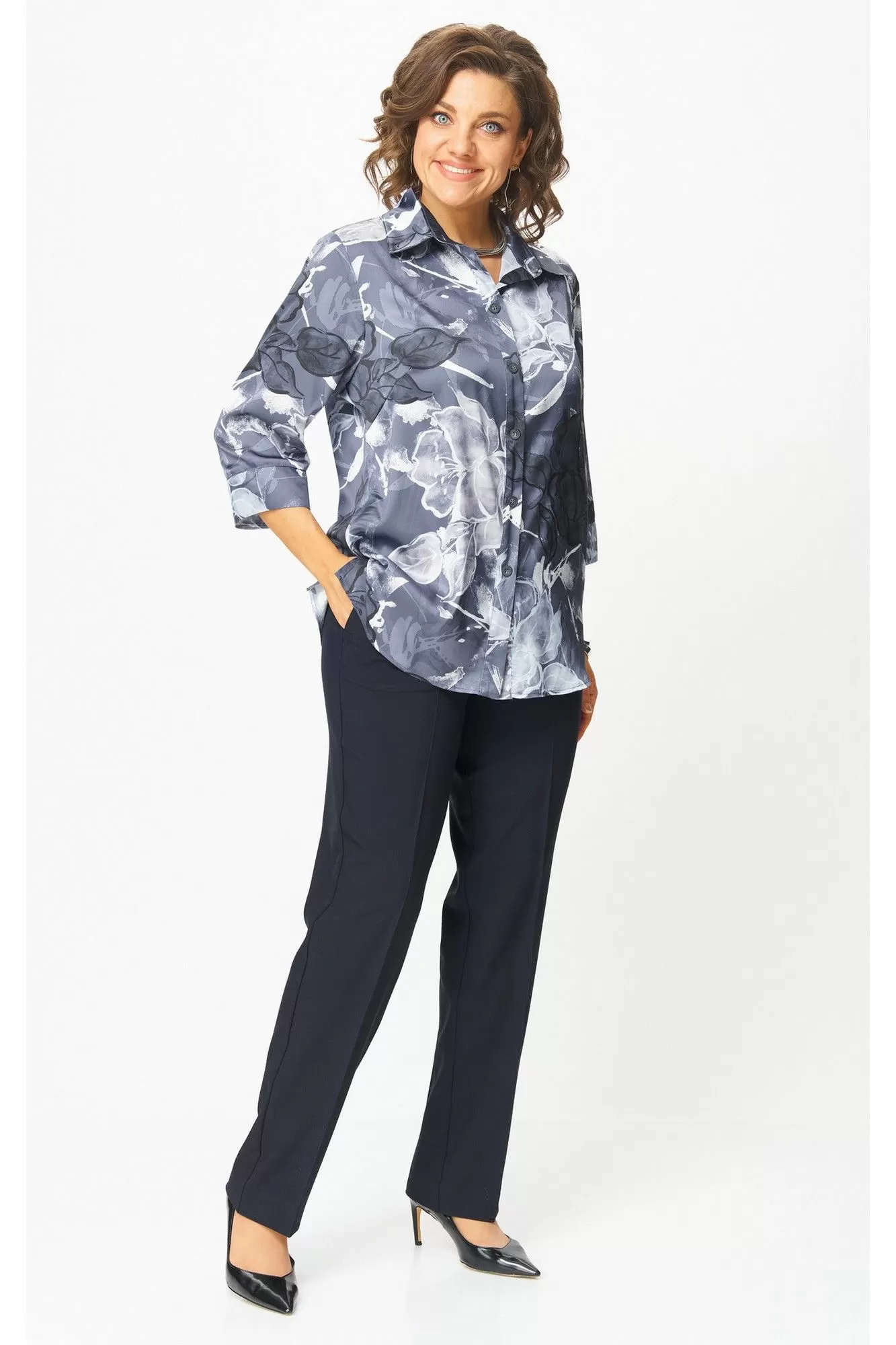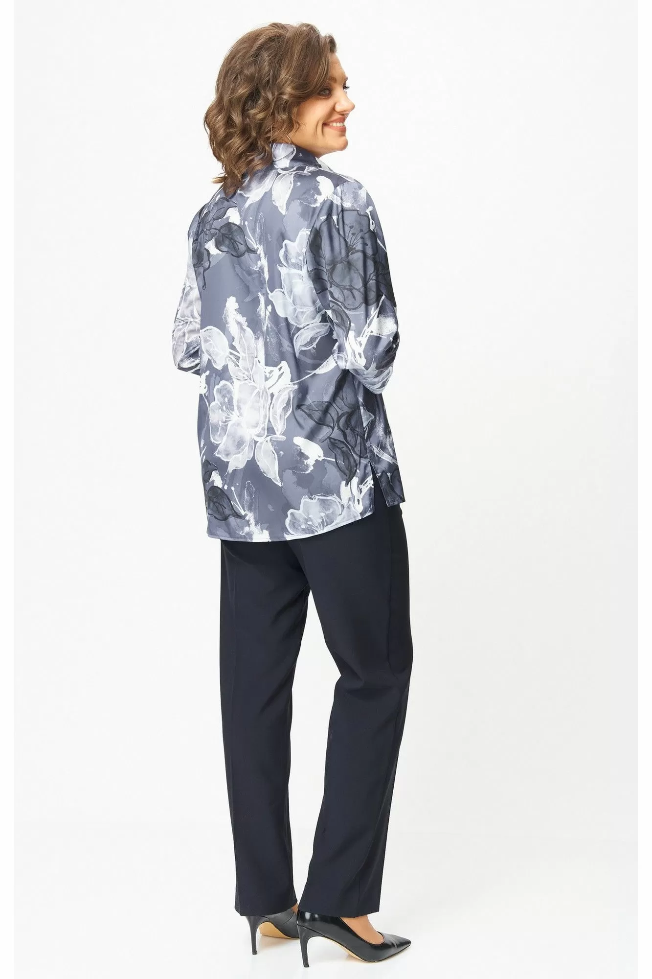 БелЭльСтиль 877-3_26_22+609-3_23_22 синий принт+синий, Брючный комплект