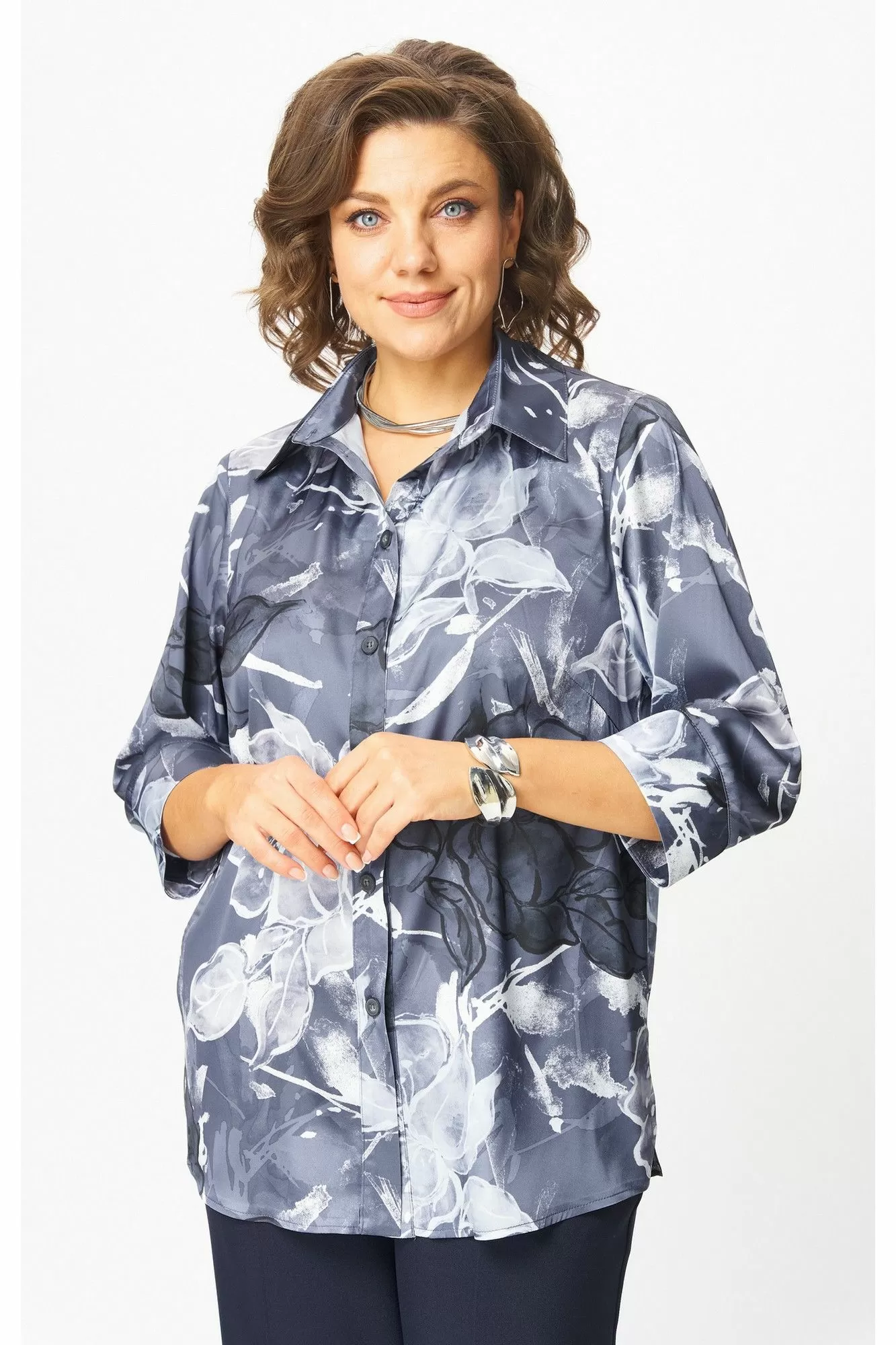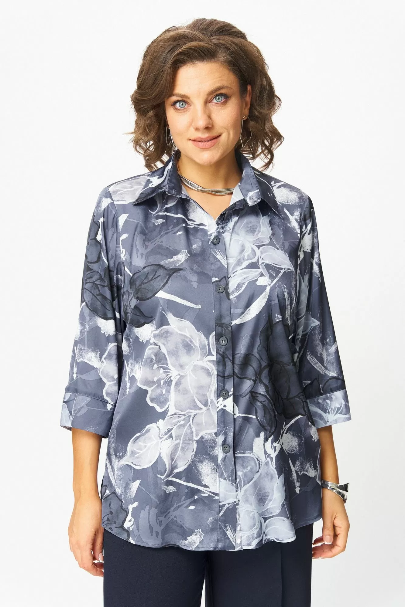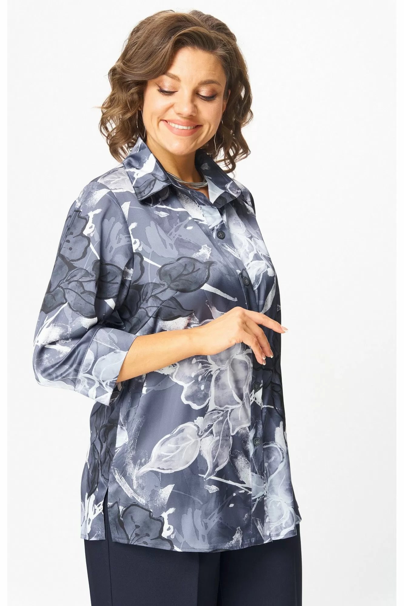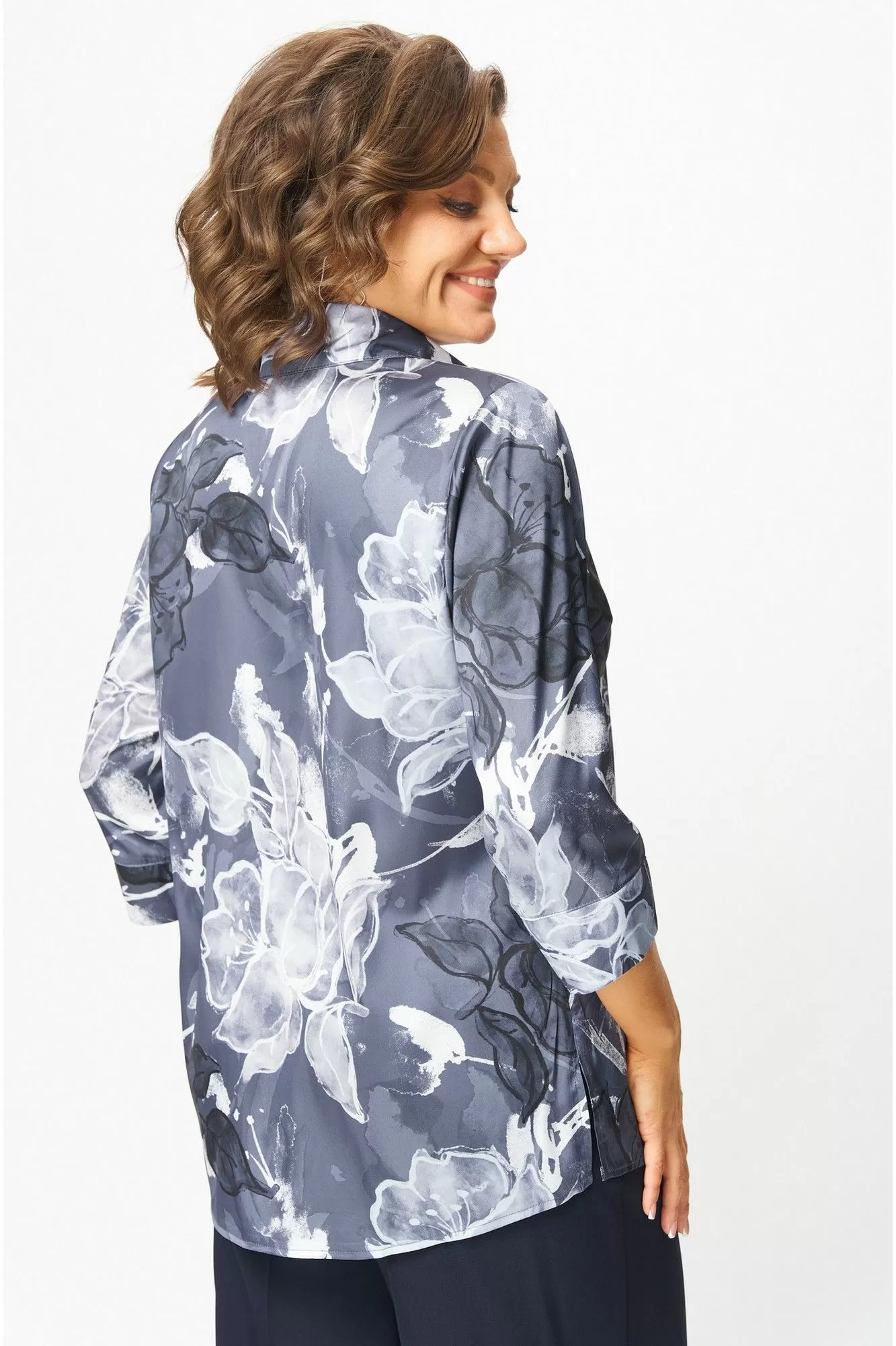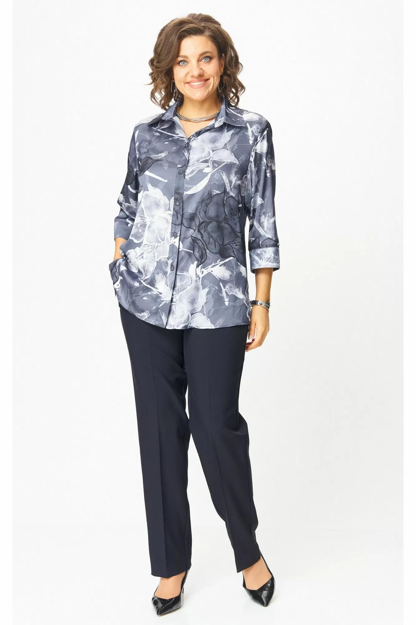 БелЭльСтиль 877-3_26_22+609-3_23_22 синий принт+синий, Брючный комплект