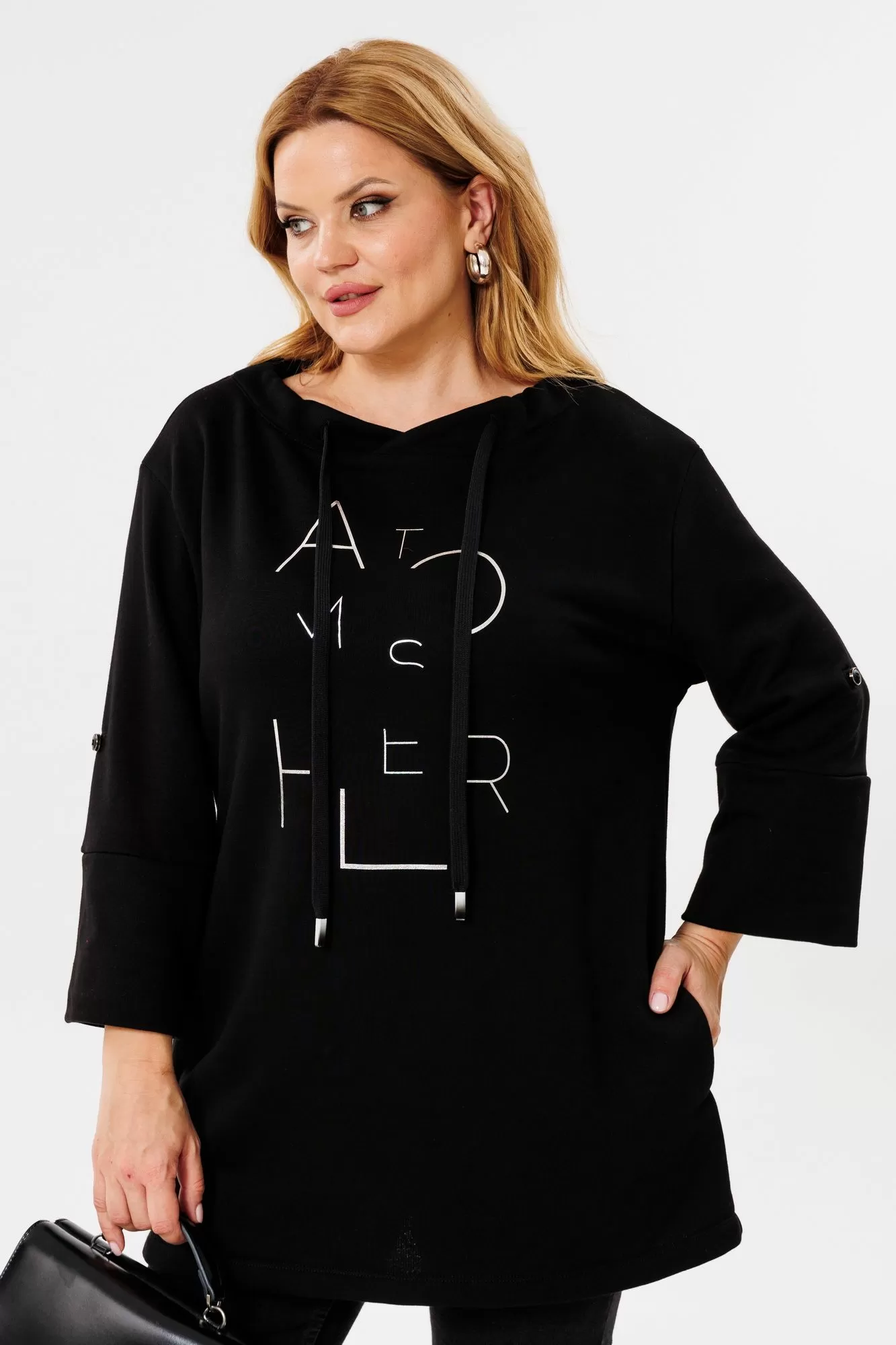 Туника из плотног, мягкого, комфортного хлопка. Удлиненная прямого силуэта, со спущеной линией плеча, по горловине в планке декоративный шнурок с наконечниками, в боковых швах карманы, акцент сдеоан на дизайнерской печати буквы. Рукав длиной 7/8 с широкой манжетой на пату и пуговицу. Спинка лаконичная. Супер вариант спрот -шик на работу , встречу и для будней.