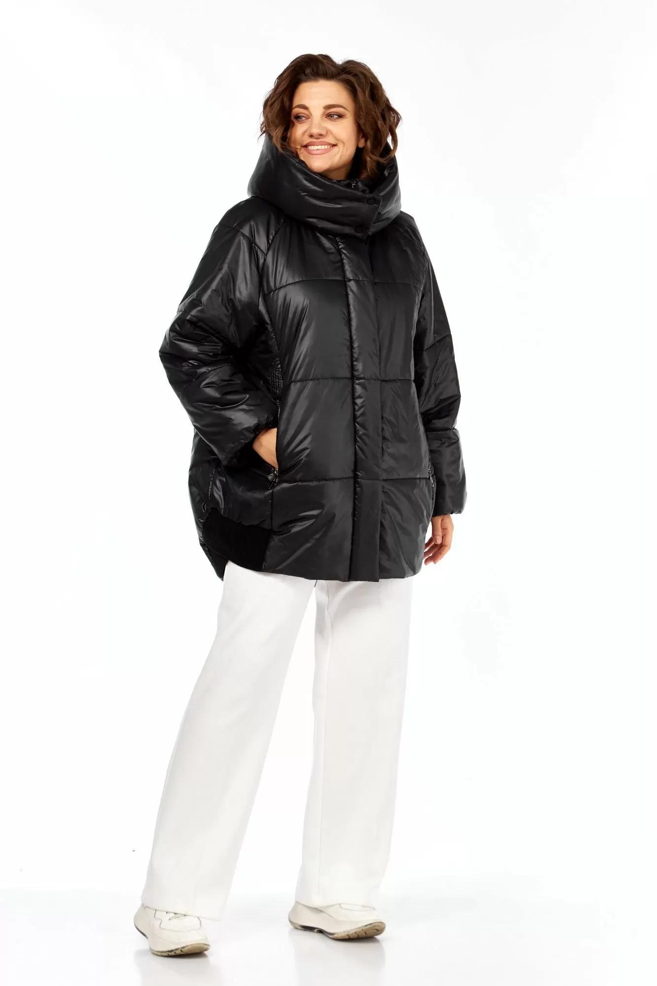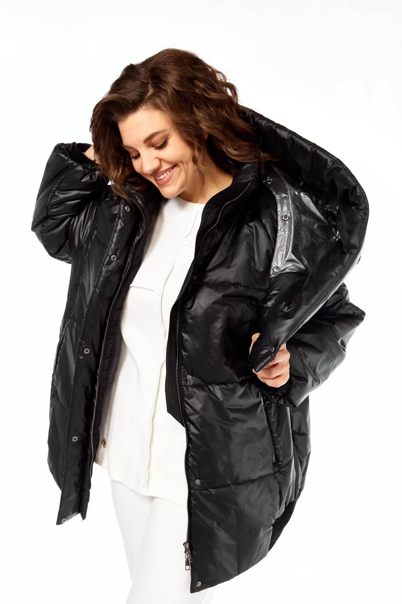 Куртка женская, прямого силуэта с рукавом реглан. Застежка центральная на тесьму молнию и планку с кнопками. По спинке рельефные швы. По переду рельефные швы, в швах карманы с молнией и отделочной деталью, по низу боковых швов-довяз. Рукав реглан с вытачкой и манжетом(довяз)- по низу. Воротник стойка. Капюшон с центральной частью, с отделочной деталью по отлету (застежка на кнопки)-съемный, фиксируется с помощью кнопок. На центральной части под молнией -ветровик. В качестве отделки используется фурнитура и детали. Температурный режим до -10 градусов.