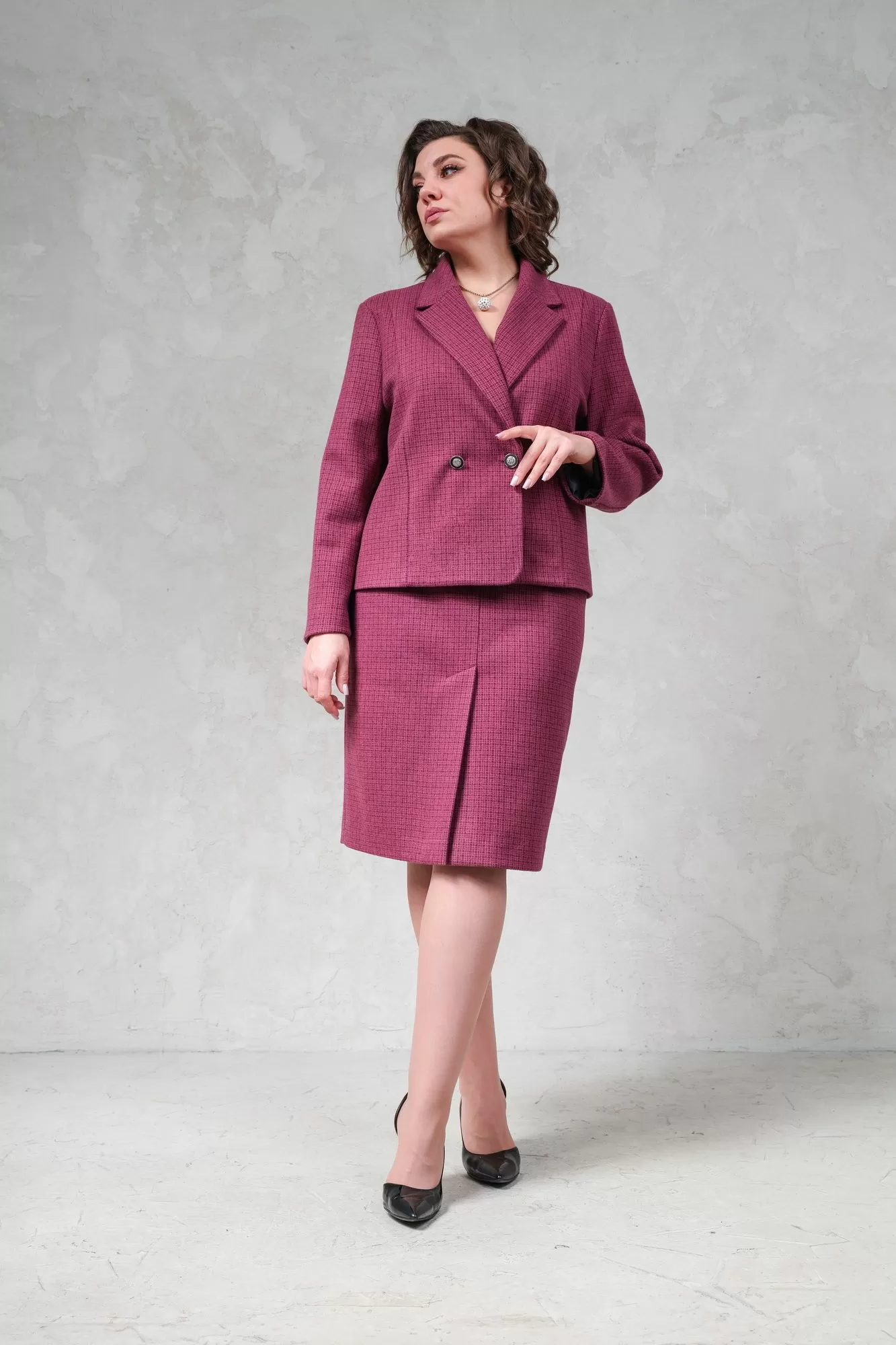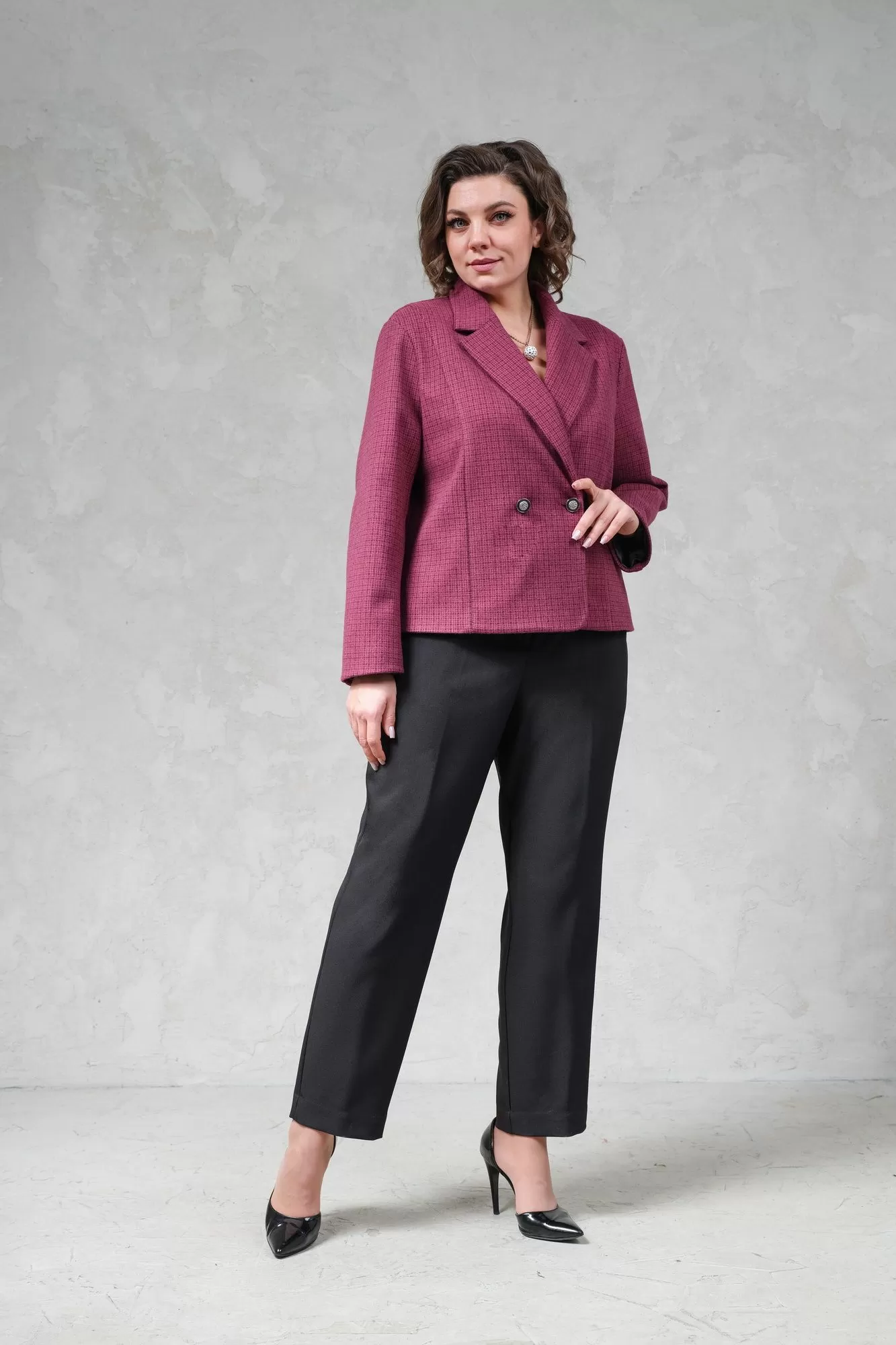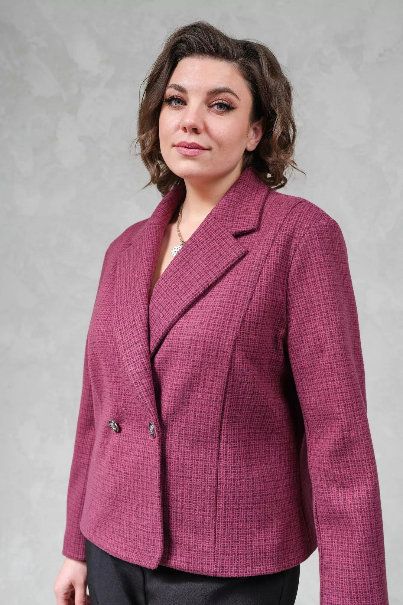Двубортный жакет - спенсер винного цвета на две петли и пуговицы с классическим пиджачным воротником и лацканом, будет удобен для службы и в будний день. Рукав двухшовный обеспечит четкий силуэт и свободу движения.