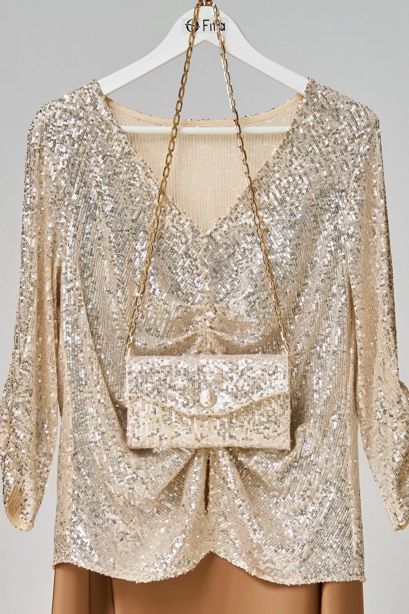 Нарядный комплект "Зария" состоит из нарядной блузки с пайетками и сумки-клатча.