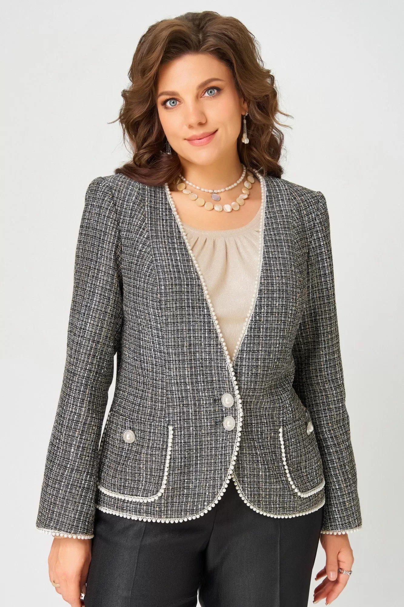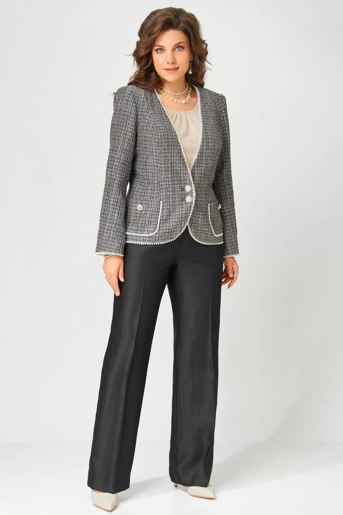 "Ясиня" — нарядная тройка, которая легко впишется в повседневность. Жакет, брюки и джемпер создают элегантный образ, подходящий как для торжеств, так и для рабочих будней. Стиль, комфорт и женственность — в каждой детали.