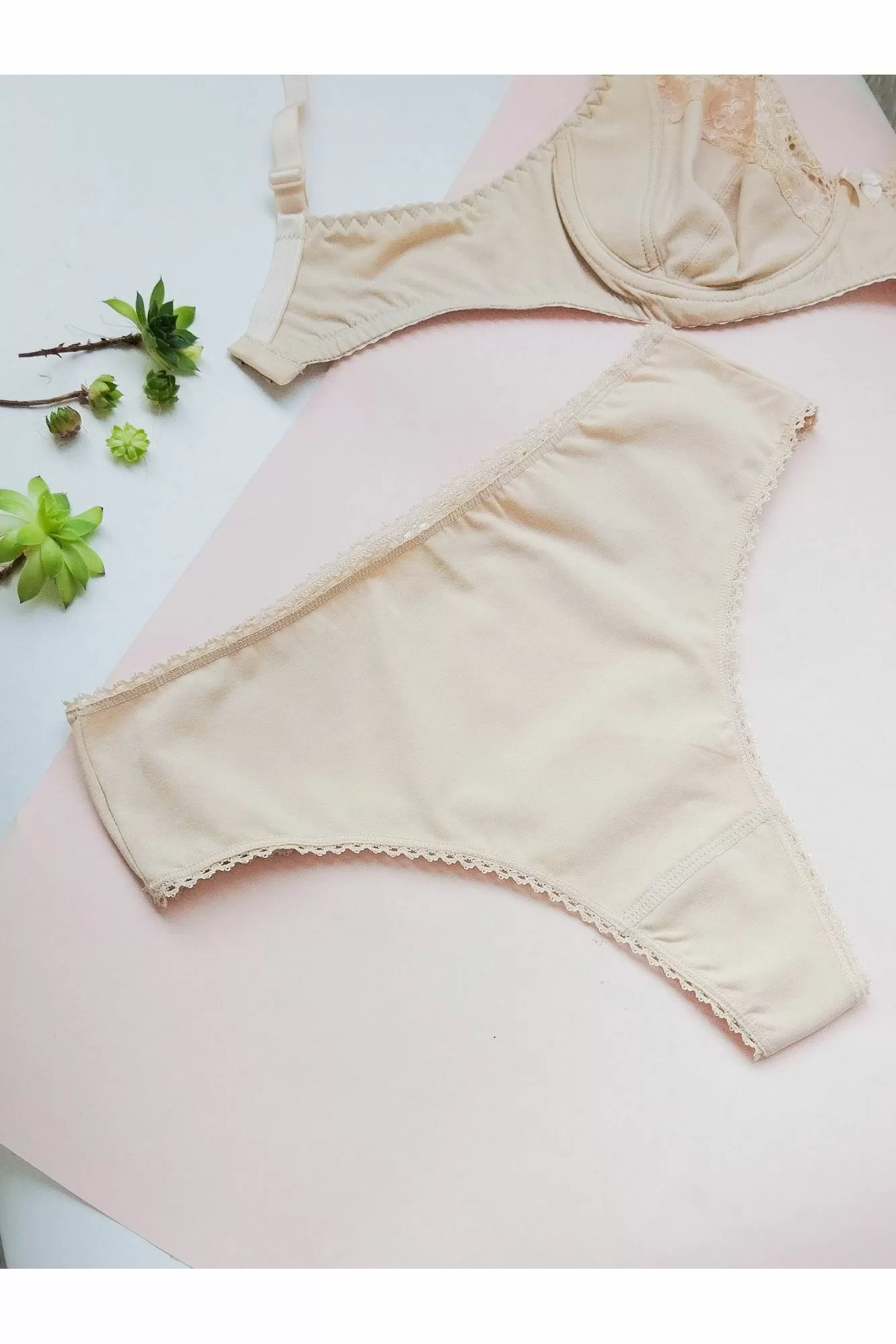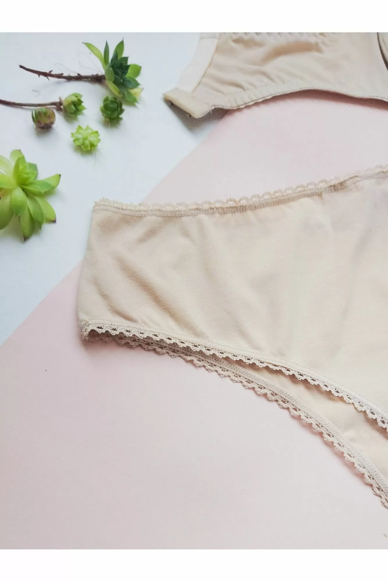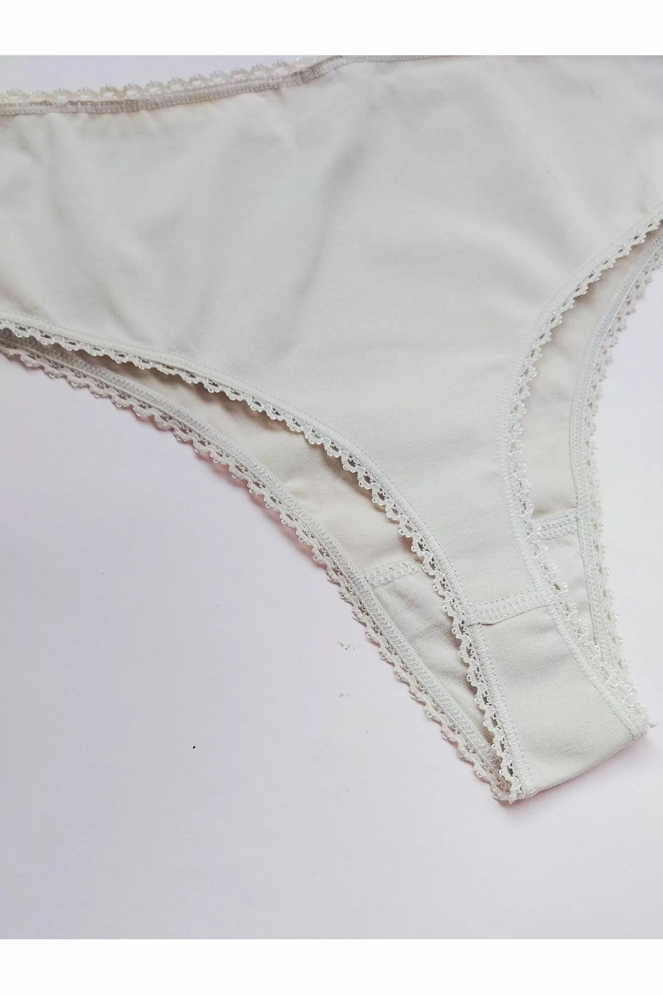 Хлопковые стринги с высокой посадкой. Широкая боковая часть. По верху обработаны эластичной тесьмой. Хлопковая ластовица.