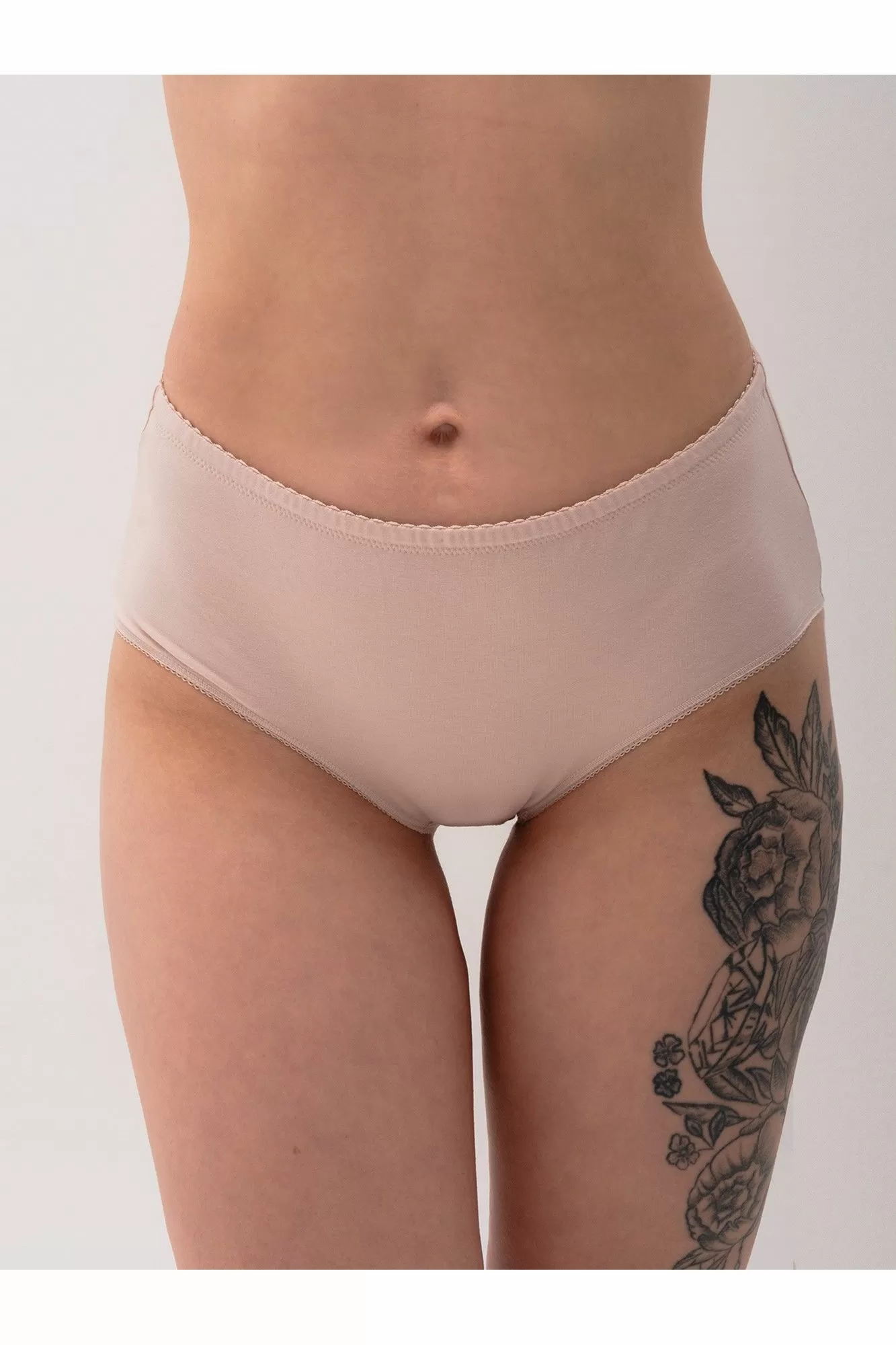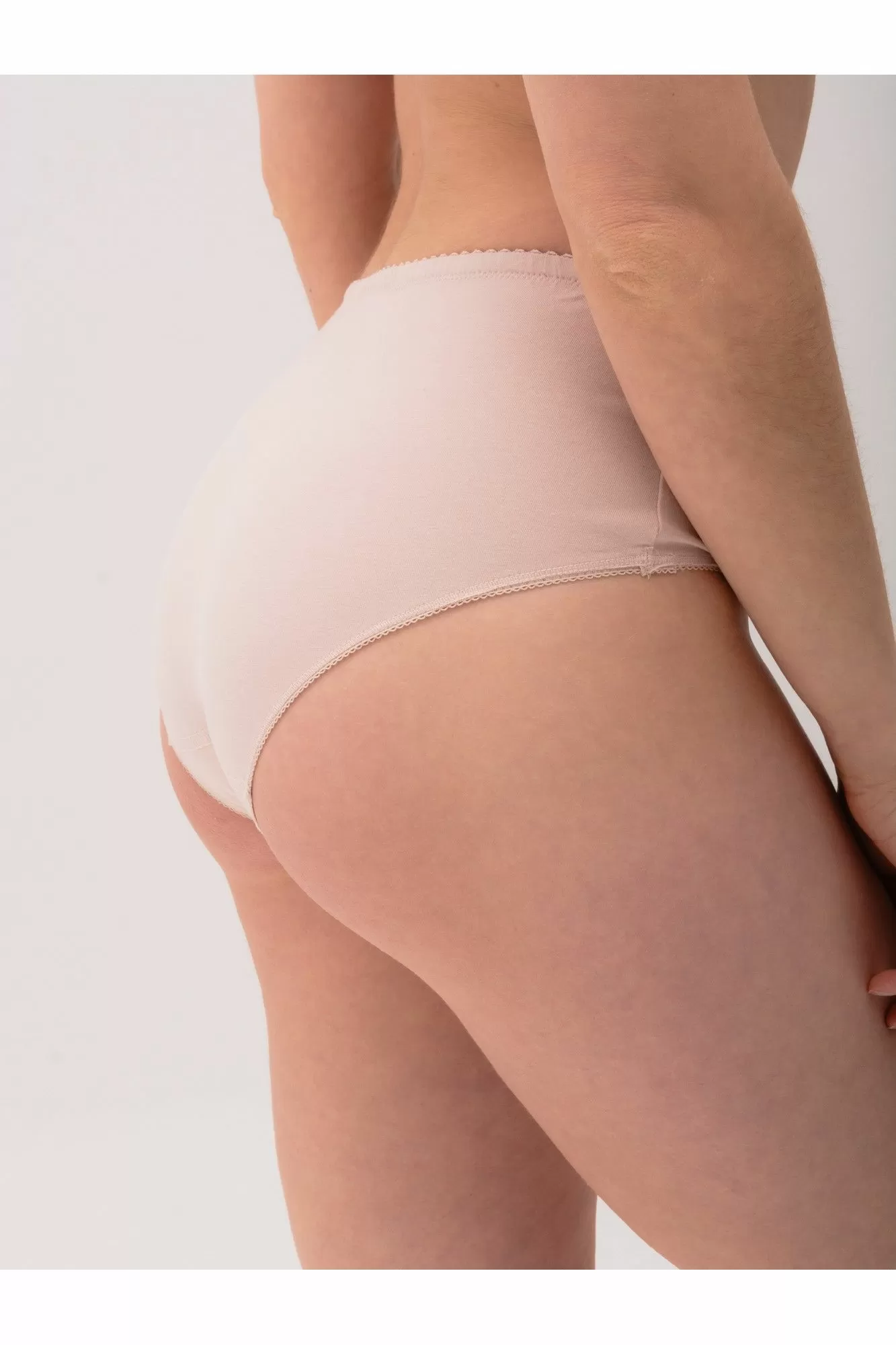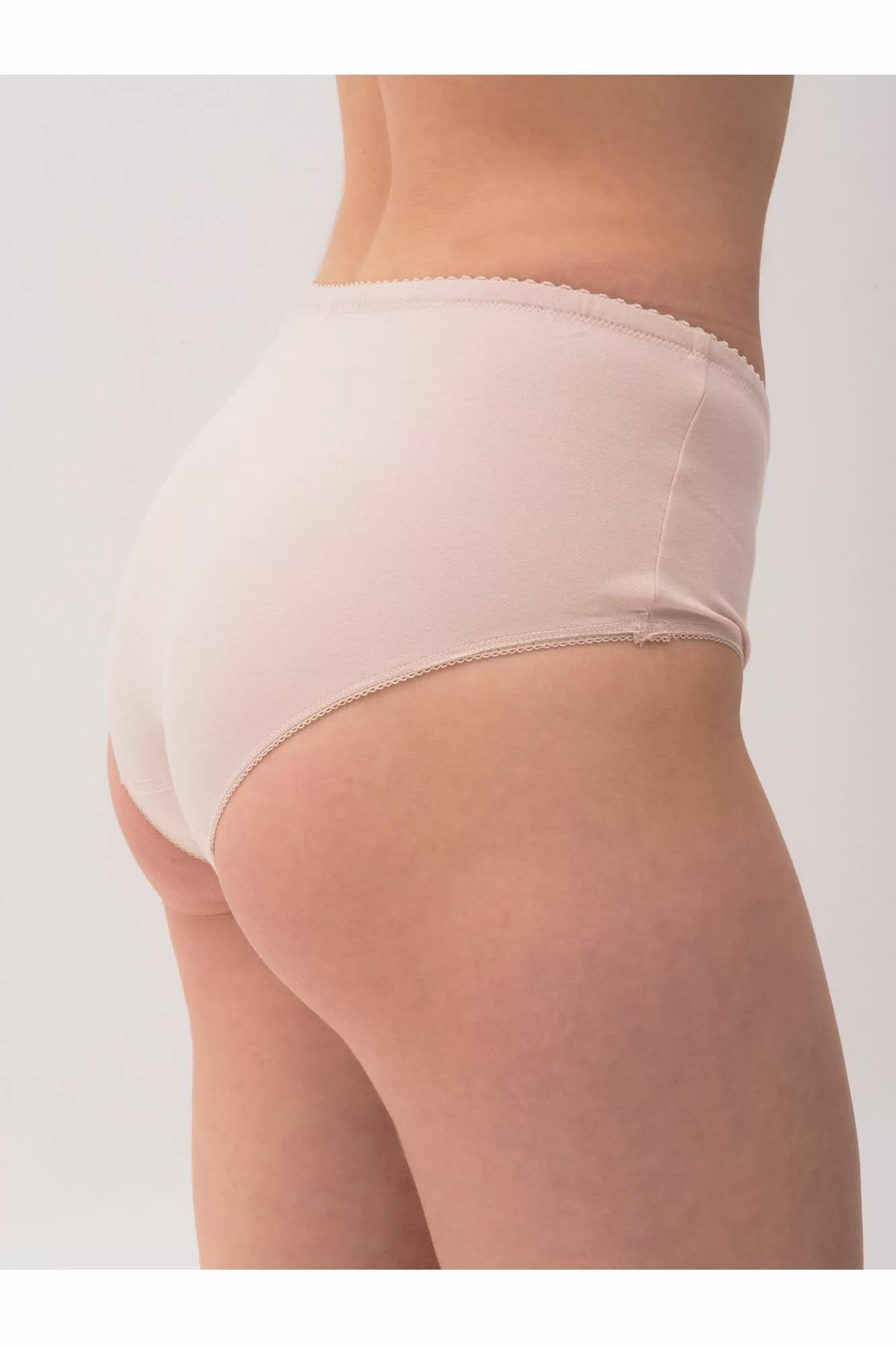 Хлопковые трусы больших размеров, средней завышенной посадки, классические слипы. Выполнены из эластичного хлопка. Линия талии обработана эластичной лентой, низ изделия обработан плоским швом. Хлопковая ластовица.