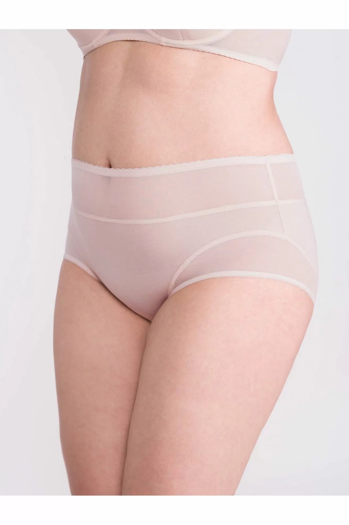 Хлопковые трусы больших размеров. Трусы макси с средней завышеной посадкой, классического кроя. Выполнены из эластичного хлопкового полотна в сочетании с плотным сетчатым полотном. Линия талии обработана эластичной лентой, низ изделия обработан плоским швом. Хлопковая ластовица.