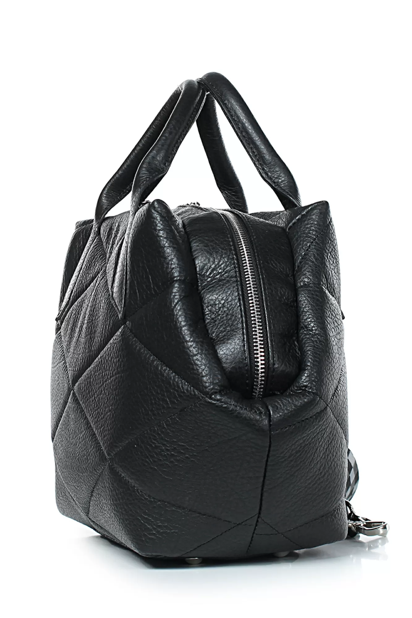 Сумка на одно отделение, закрывающееся на застежку-молнию, с двумя ручками длиной 310+-10 мм, со съемной нерегулирующейся ручкой-ремнем длиной 960+-10 мм, с декоративной растрочкой стенок, с пуклями на дне. Цвет фурнитуры - никель. Размеры: 420x220x130