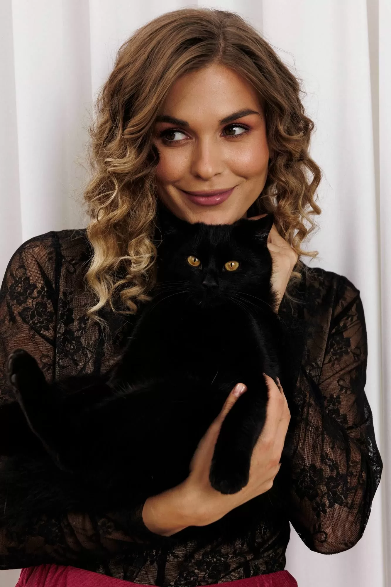 Блузка приталенного силуэта из кружевной сетки. Перед и спинка с рельефами и средним швом. Рукав втачной. Перед и спинка на телесной подкладке. Длина джемпера - см, длина рукава джемпера - см.