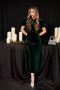 Платье без воротника, с круглым вырезом горловины, центральной застежкой на петли и пуговицы по лифу переда. Платье отрезное по линии талии. По лифу переда с нагрудными вытачками. Спинка со средним швом, заканчивающимся разрезом, талиевыми вытачками. Рукав втачной, короткий, по низу, присборен на резинку. Окат рукава присборен.