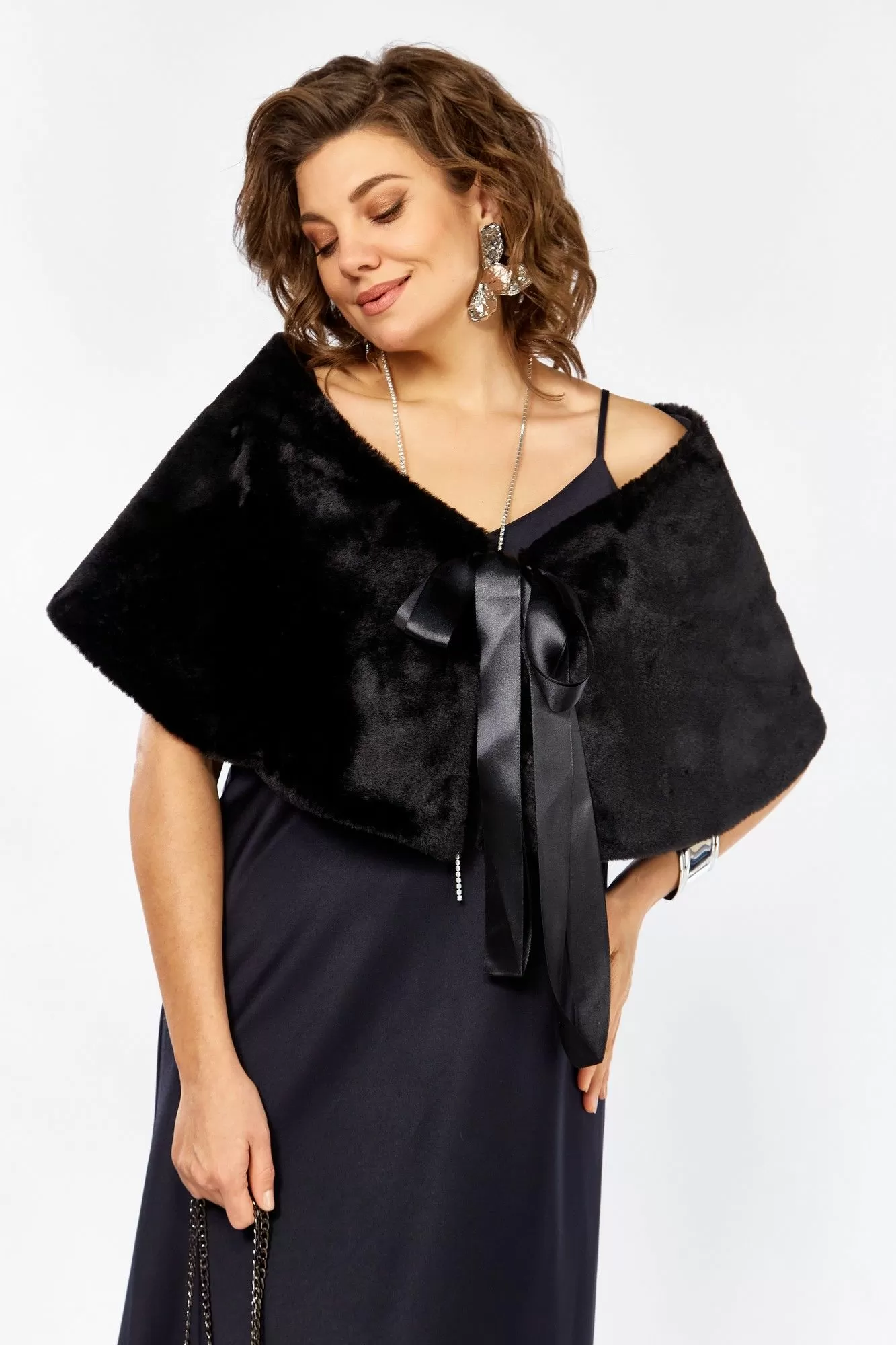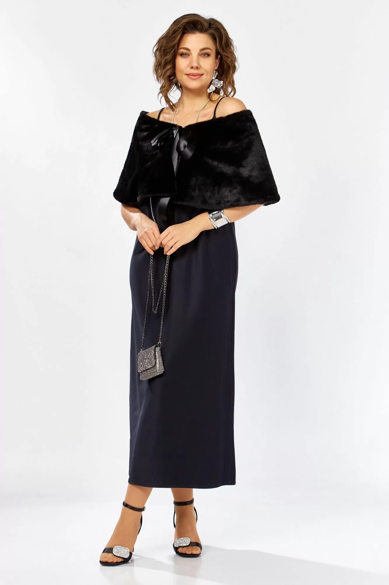 Изысканный комплект сочетает в себе платье из плотного атласа, свободного А образного силуэта ,изящной меховой горжеткой создавая образ утончённой элегантности женственности