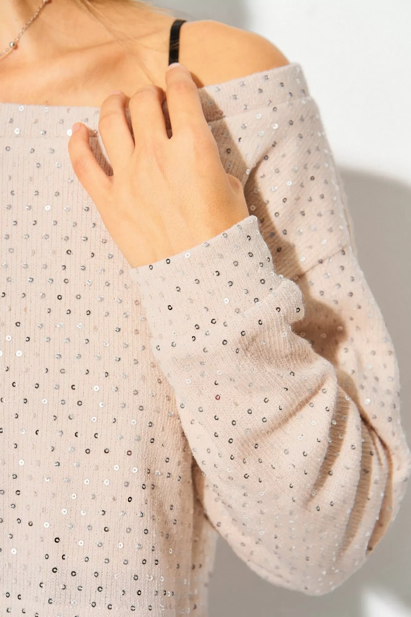 Джемпер свободного силуэта, длиной до линии талии, со спущенной линией плеча, с втачными рукавами. Вырез горловины формы «лодочка», с втачной бейкой. Рукава втачные одношовные, с притачными манжетами.