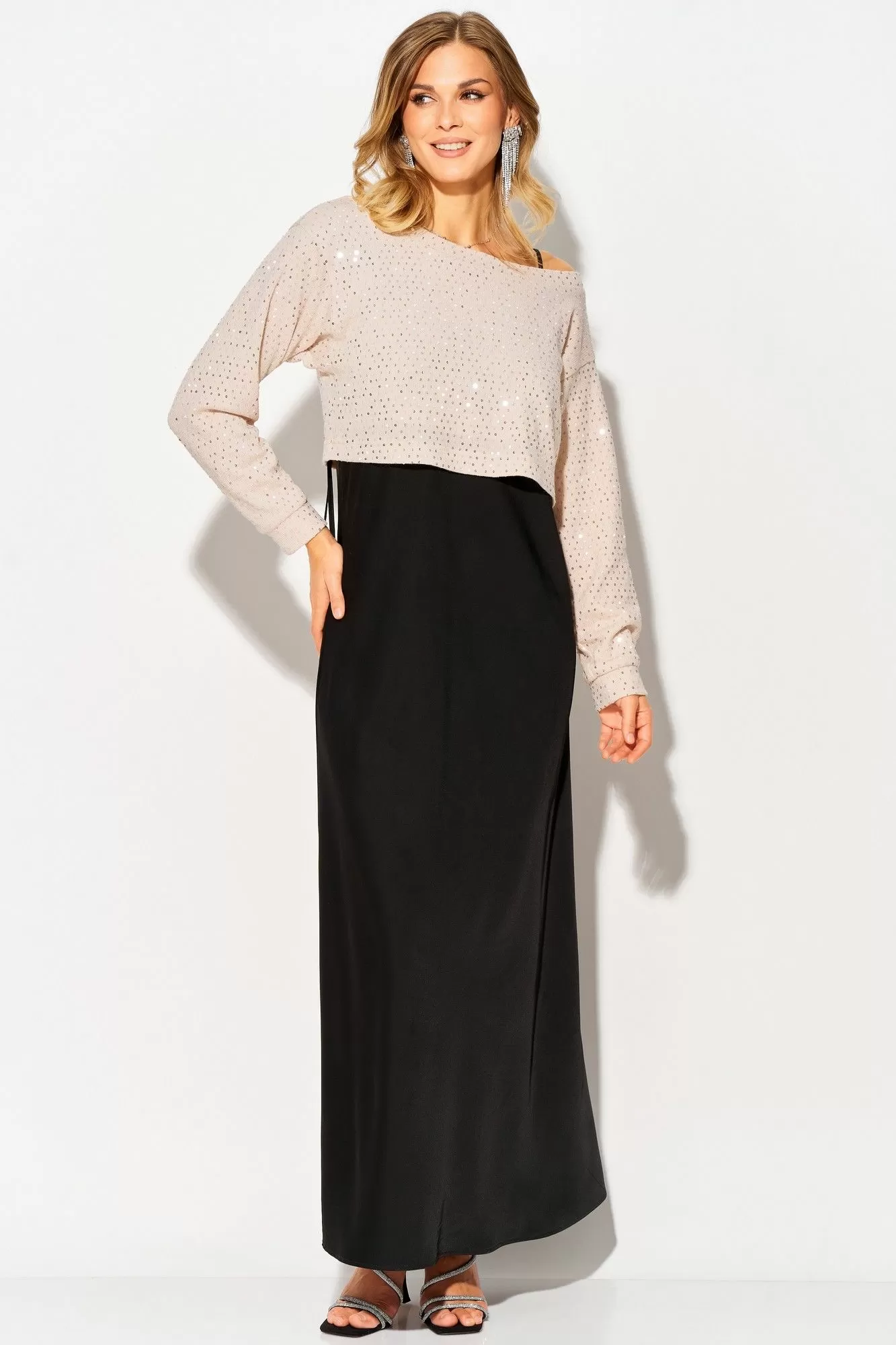 Нарядный комплект от LAIKONY, состоящий из трикотажного джемпера и платья из атласа.