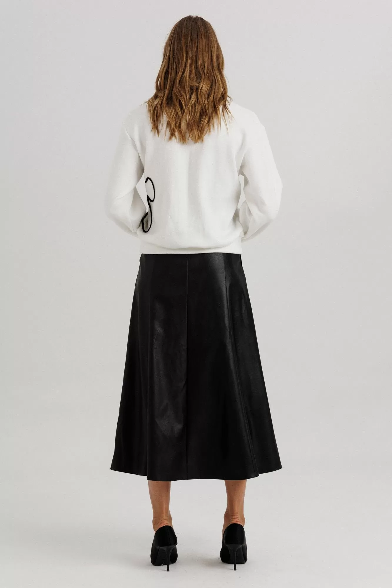 Блузон из уютного трикотажного полотна, свободного прямого силуэта. Линия плеча чуть спущена, рукав прямой на зауженной манжете. Длина рукава вместе с плечевой линией 78 см. Из них 13 см: длина плеча и 65 см: длина рукава с напуском. Высота манжета 8 см.