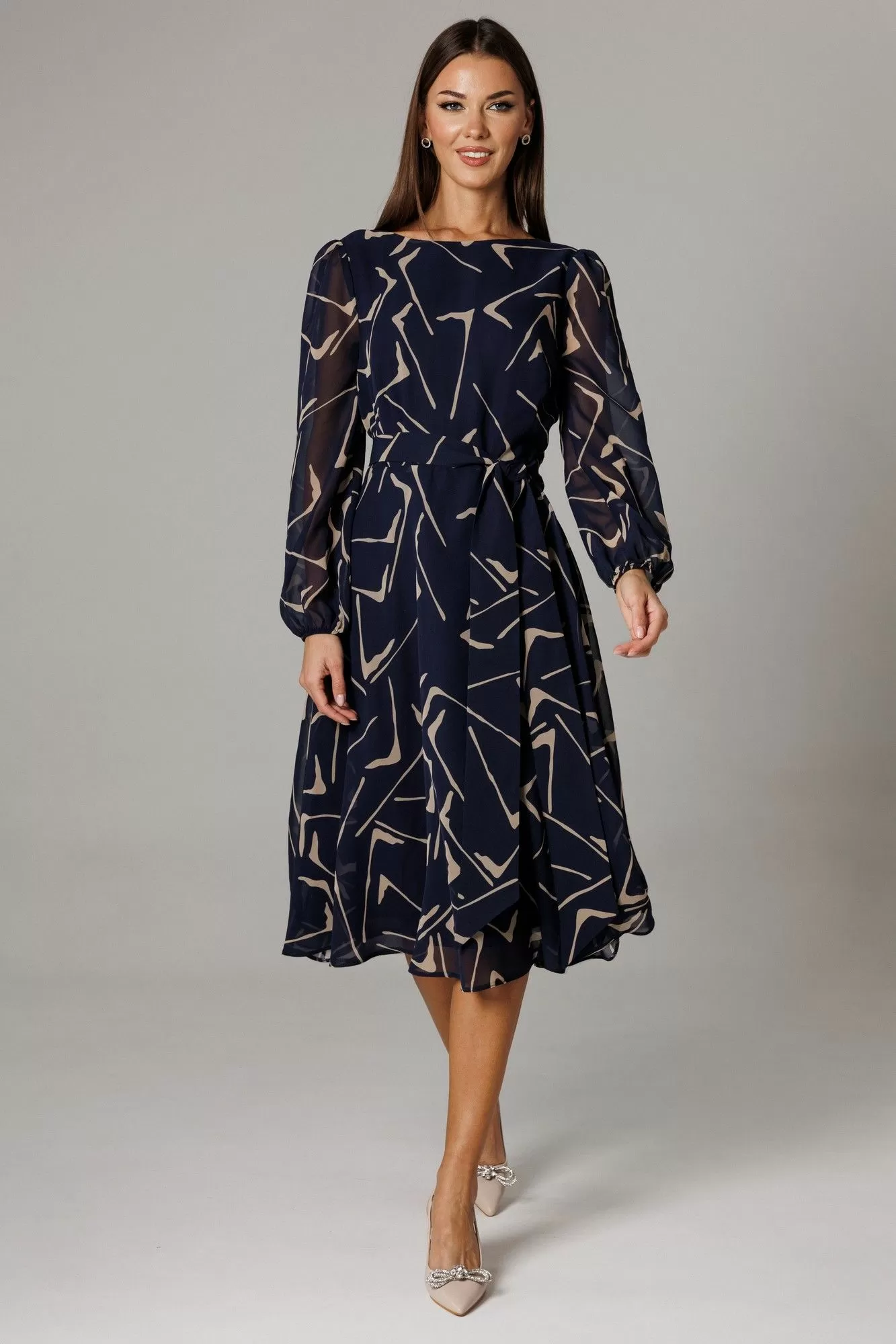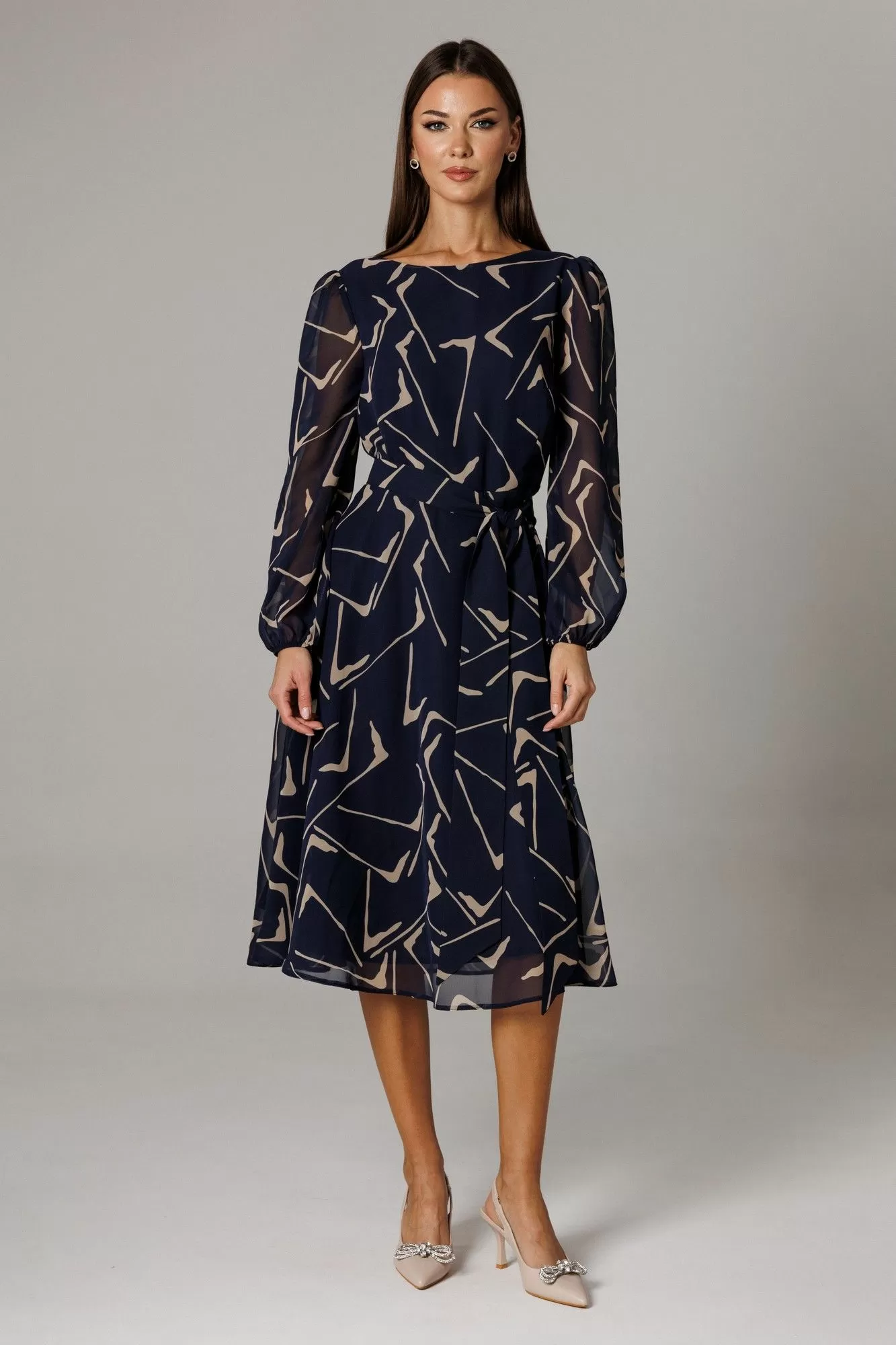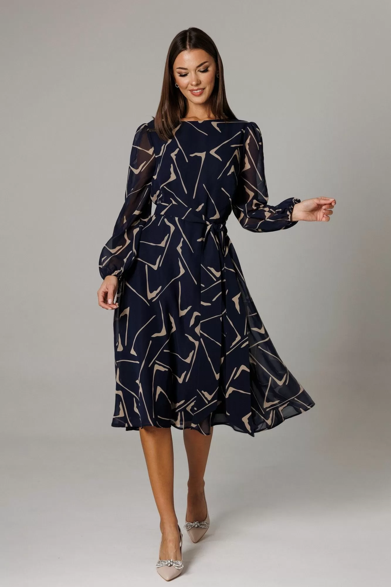 Чтобы подчеркнуть изящество талии: платье дополнено съемным текстильньм поясом, который может быть завязан на бант или классический узел.
