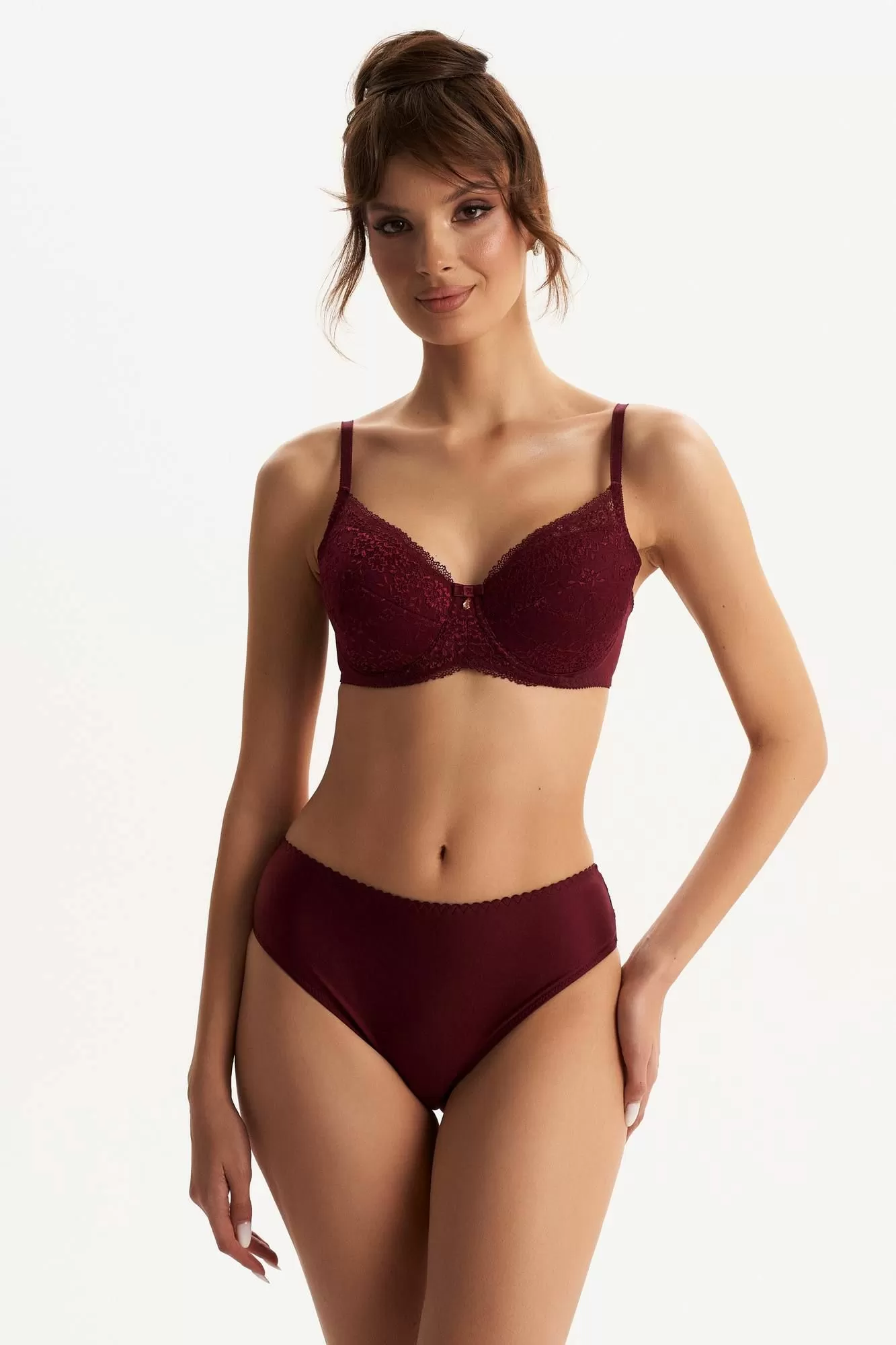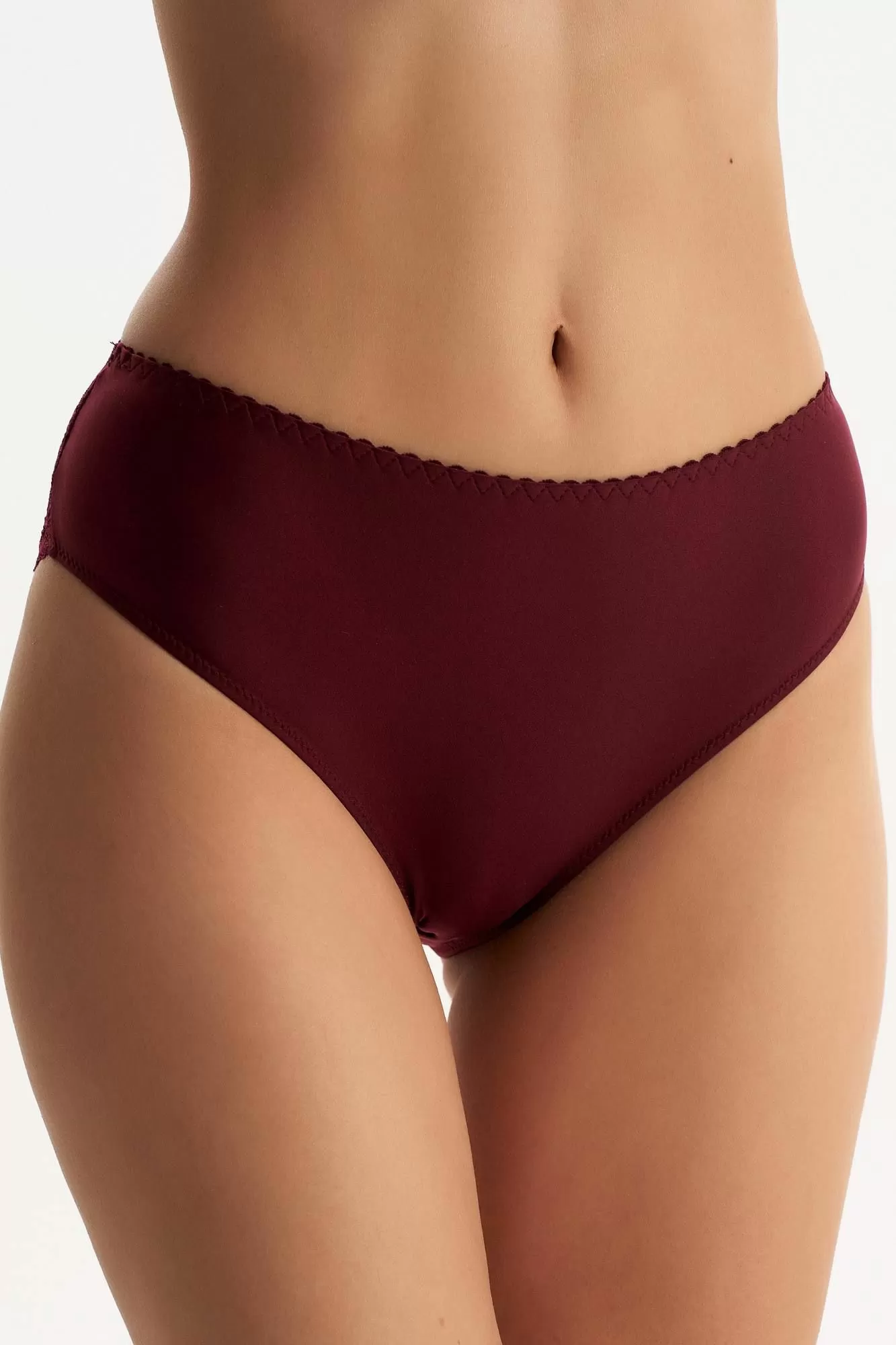 Трусы с высокой линией талии из эластичного трикотажного полотна (микрофибра). Задняя деталь полностью из эластичного кружева. Подкладка ластовицы из 100% х/б