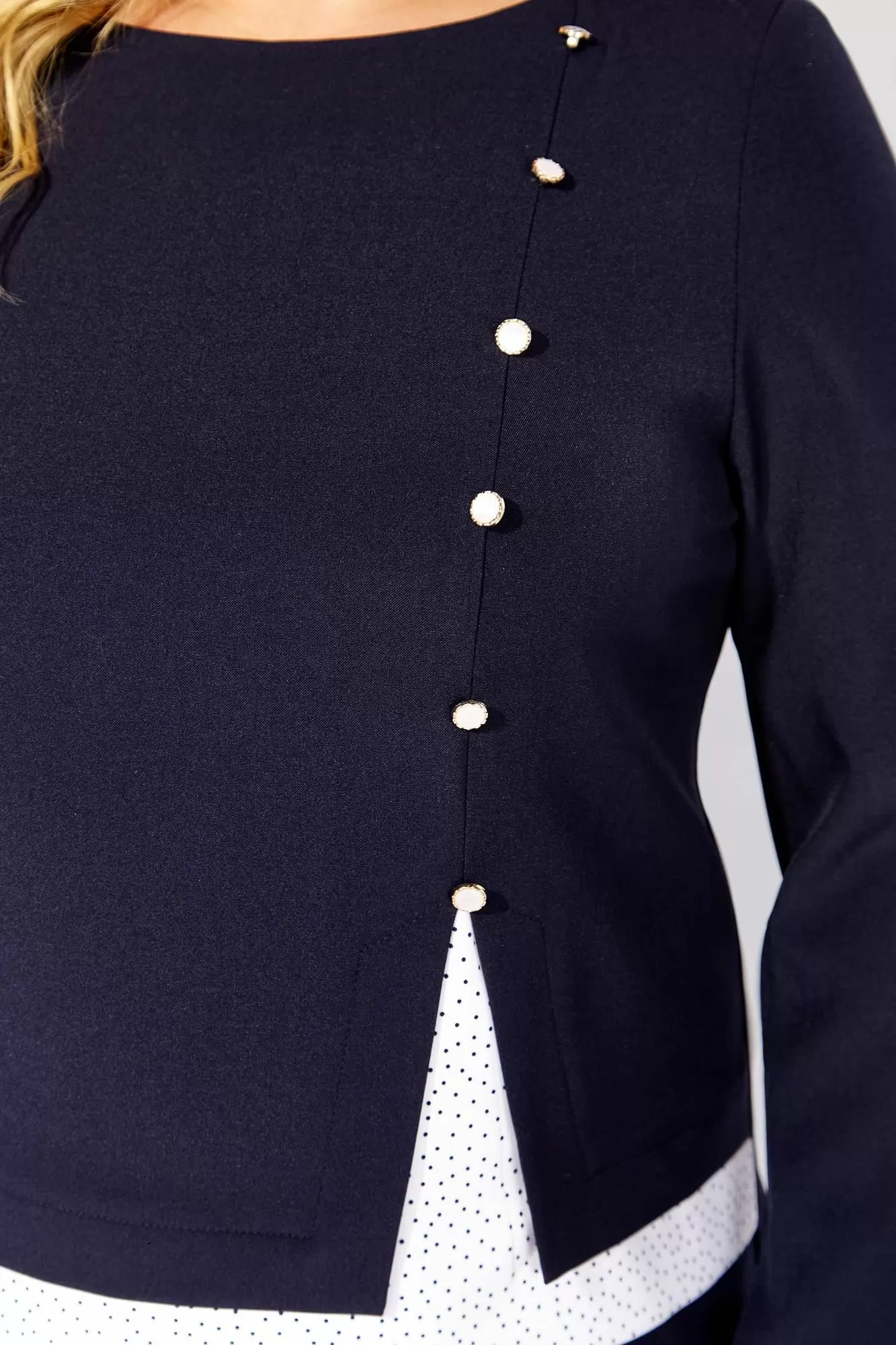 Текстильное женское платье полуприлегающего силуэта средней длины за колено на рост 164см. Вырез горловины круглый. Рукав втачной длинный. Спинка с плечевыми вытачками и средним швом со шлицей и молнией. Основная ткань платья однотонный текстиль, отделочная – блузочная с принтом. Линия Л. - это идеальный выбор для женщин, ищущих комфорт и стиль в повседневной жизни, на работе или в школе. Подходит на торжественное мероприятие, где требуется дресс-код. Это платье изготовлено из полиэстера с добавлением спандекса, что обеспечивает его удобство и долговечность. Платье легко стирается и подходит для ежедневного ношения - прекрасный выбор для деловых женщин. Стильное и элегантное платье женское больших размеров станет прекрасным дополнением для вашего гардероба. Оно прослужит долгое время и будет радовать вас своим комфортом и практичностью. Его можно легко сочетать с различными аксессуарами, создавая разнообразные образы для любого случая. Линия Л. - это женская одежда больших размеров для взрослых, которая отшивается на собственном производстве в Бресте (Республика Беларусь) с использованием современного оборудования и поштучного контроля качества.
