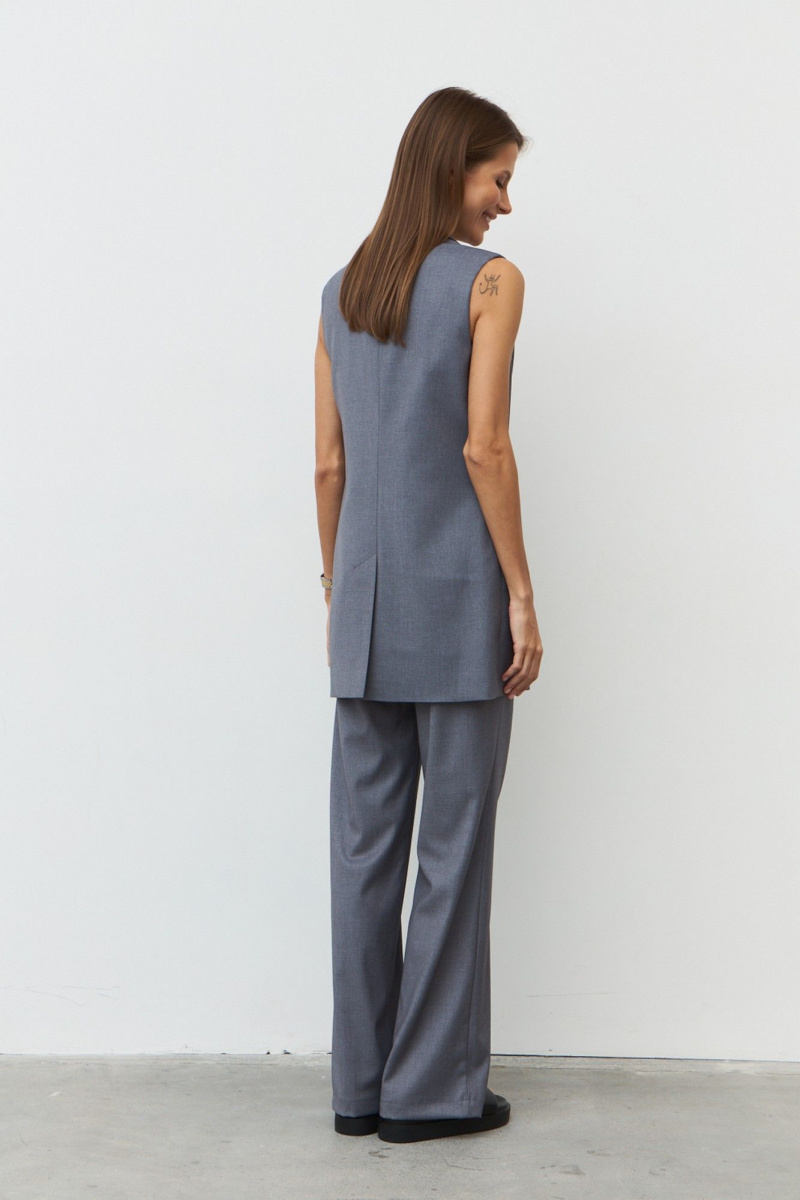 жилет: ПЭ - 64%; вискоза - 33%; эластан - 3%. брюки: ПЭ - 64%; вискоза - 33%; эластан - 3%