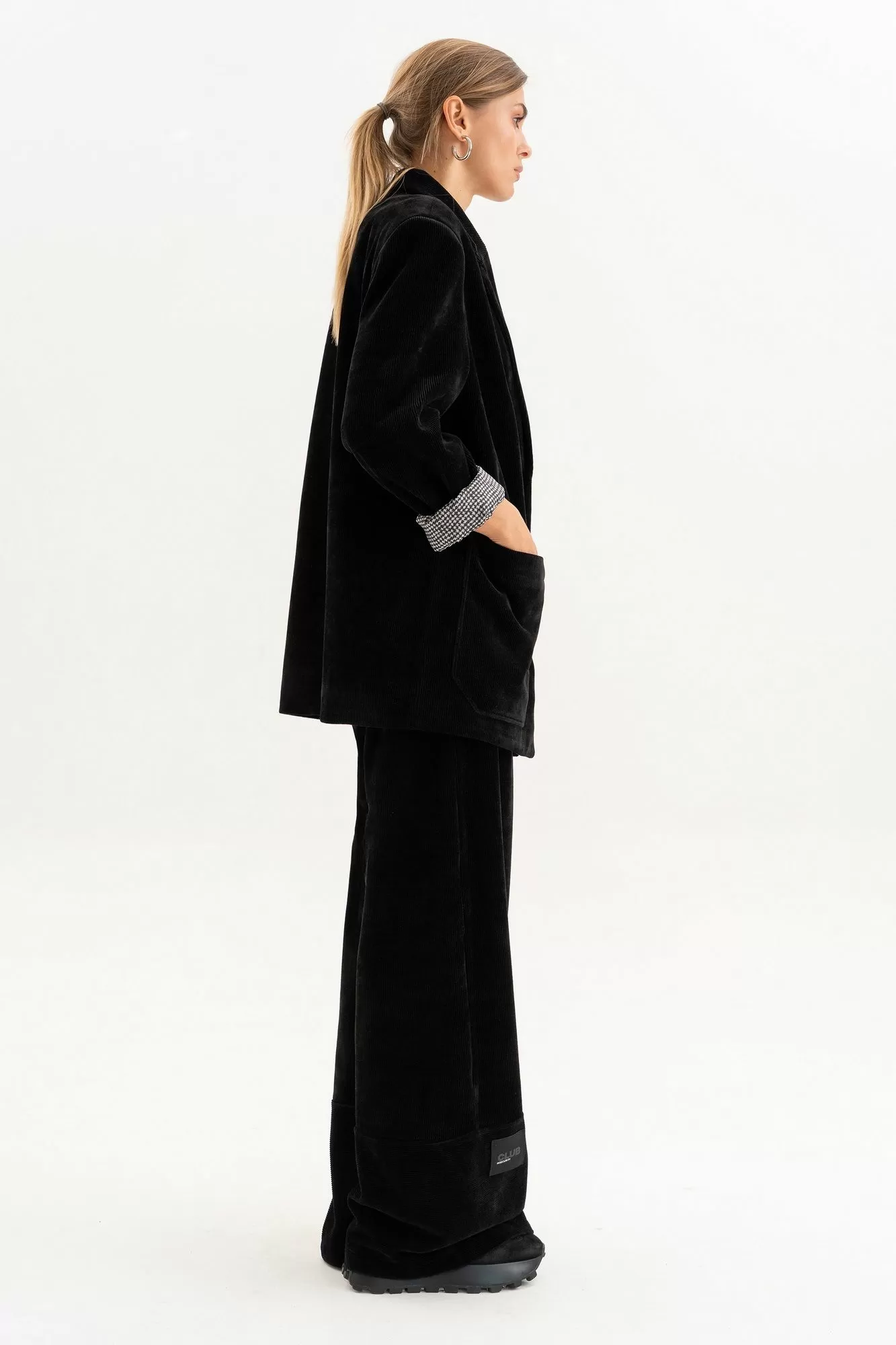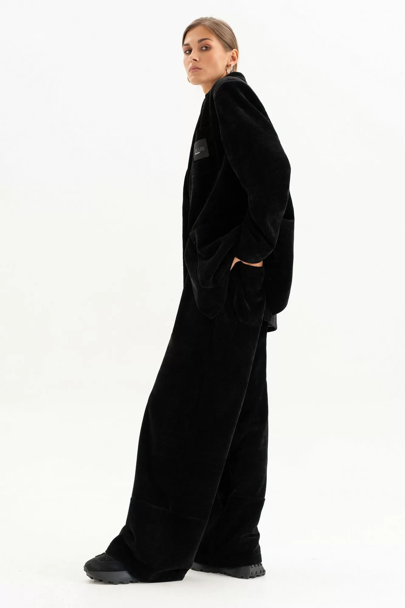 Стильный женский костюм-двойка из штрукса подходит для создания элегантного кэжуал образа.Трендовый костюм состоит из удлиннённого жакета оверсайз и прямых широких брюк. Жакет свободного кроя прямого силуэта с расширенной линией плеч с центральной застёжкой на две петли-пуговицы,с накладными карманами.По спинке-шлица с патой на пуговицу.Брюки свободного кроя прямого силуэта с резинкой на талии,накладными карманами и отрезными широкими манжетами с нашивкой.Костюм можно дополнить топом,кроссовками,бейсболкой и получится casual look на каждый день.