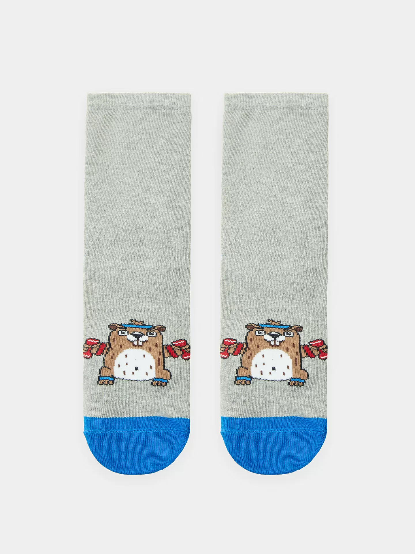 рис.1347 Детский носок гладкий с рисунком в виде сурка среда.