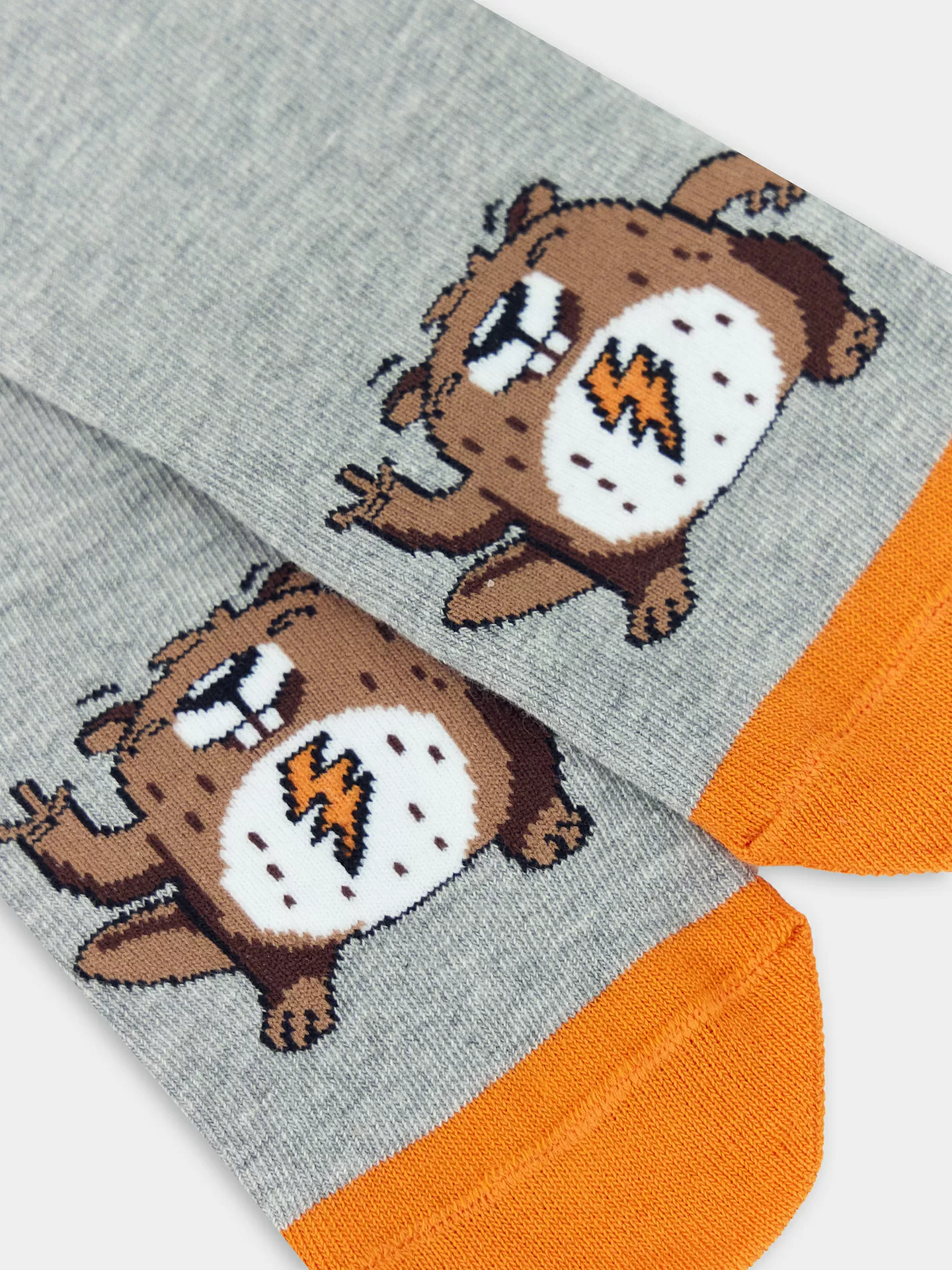 Детские носки из высококачественного хлопка с рисунком в виде сурка "Пятница". Натуральные волокна отлично пропускают воздух и впитывают влагу, дарят ощущение комфорта в течение дня. Благодаря небольшому количеству эластана в составе, высокие детские носки удобно сидят и не сползают, хорошо тянутся и легко надеваются. Пятка и мысок дополнительно укреплены для защиты от протирания. Резинка мягко, но надежно удерживает носки, не оставляя на коже следов. В ассортименте Mark Formelle можно выбрать самые разнообразные дизайны и расцветки: однотонные зеленые, желтые, синие или серые детские носки подойдут и для мальчика, и для девочек, найдутся модели в полоску, с оригинальными авторскими рисунками, орнаментами, а также базовые носки белые и черные детские. Маленьким модникам точно понравятся!