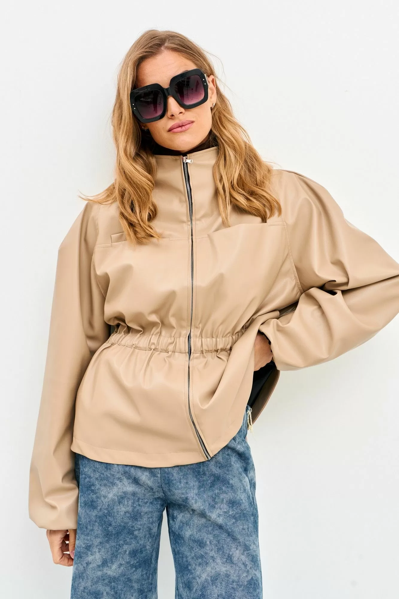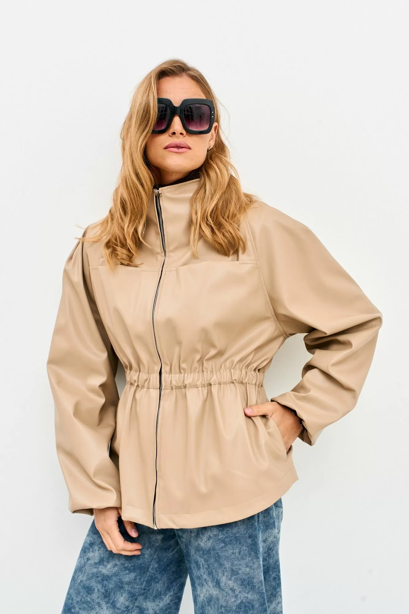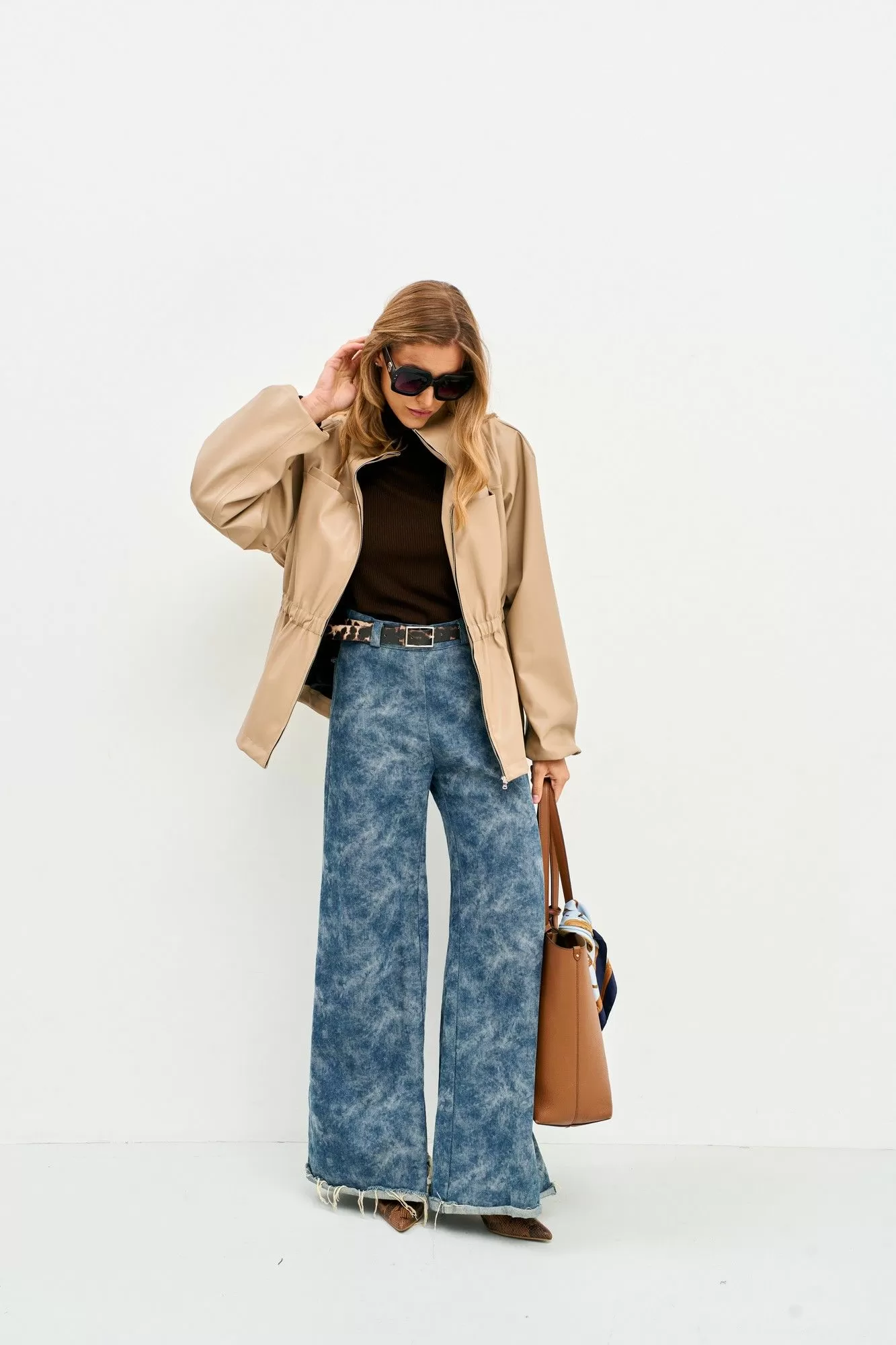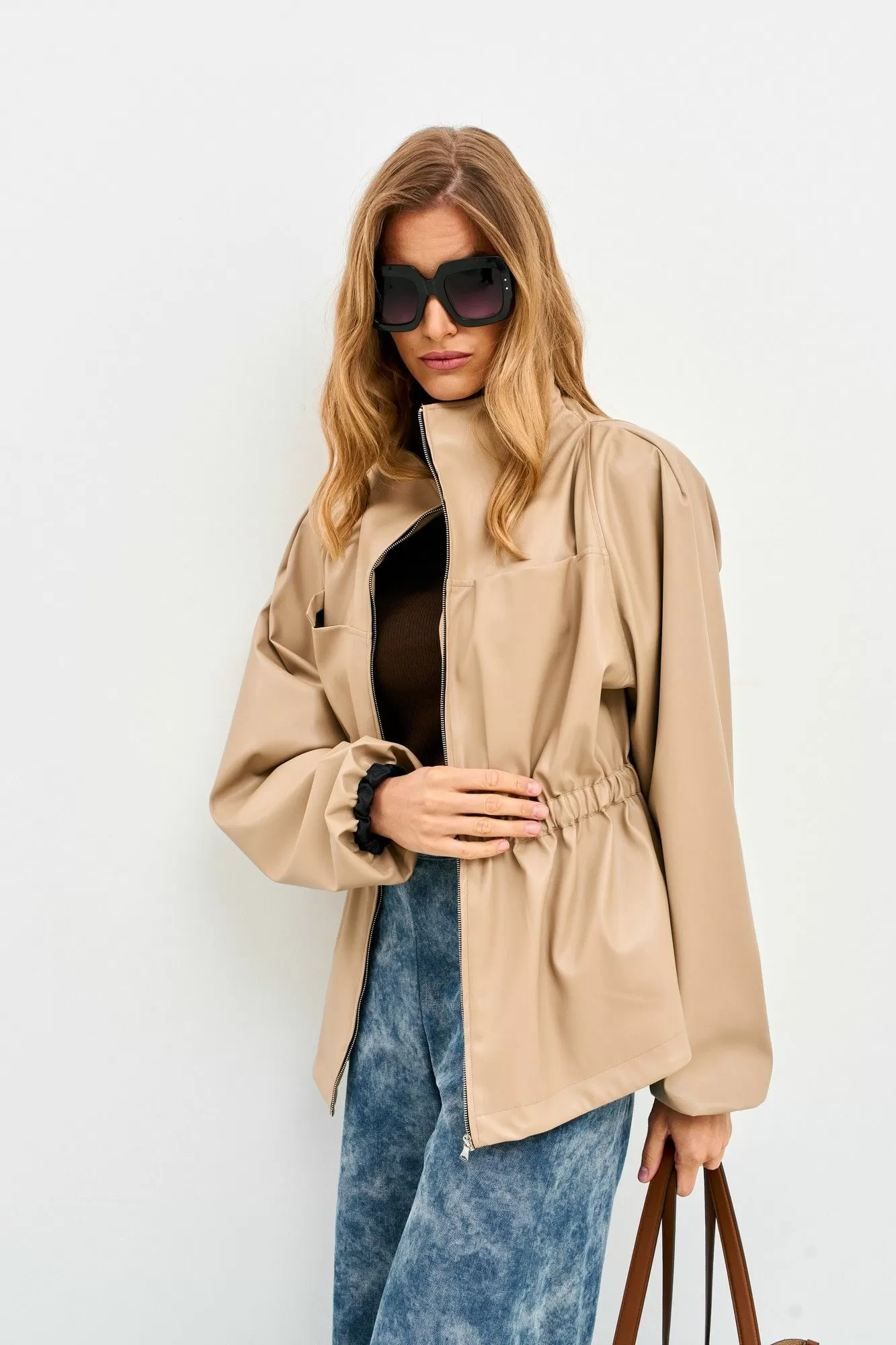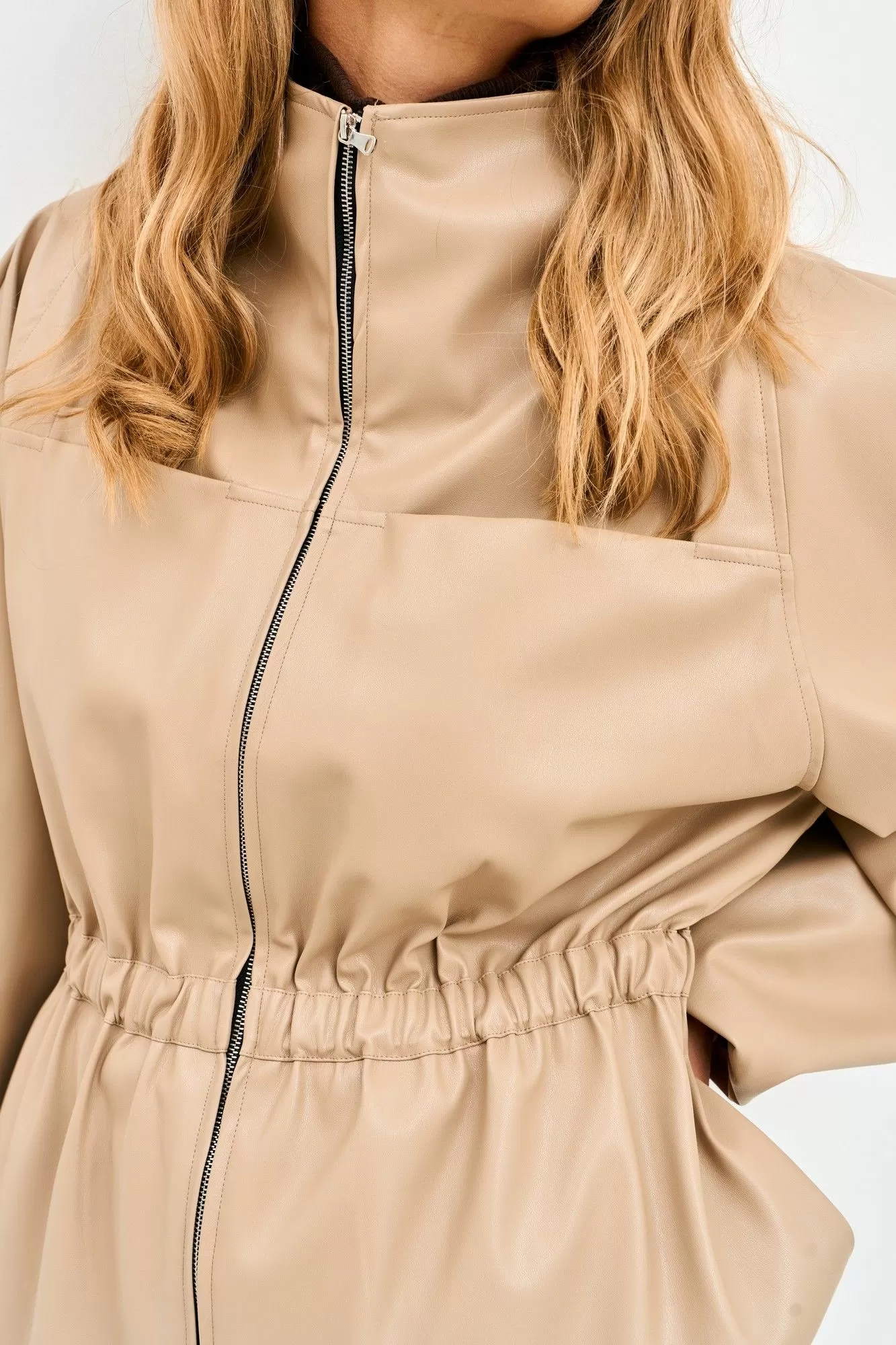 Куртка женская на подкладке с центральной бортовой застежкой на тесьму "молния" . Воротник цельнокроеная стойка. В боковых швах обработаны карманы.Рукав покроя реглан, по низу на резинке.Деталь переда с отрезной кокеткой, в шве притачивания которой обработаны карманы в швах. По линии талии обработана кулиса в которую вставлена резинка.