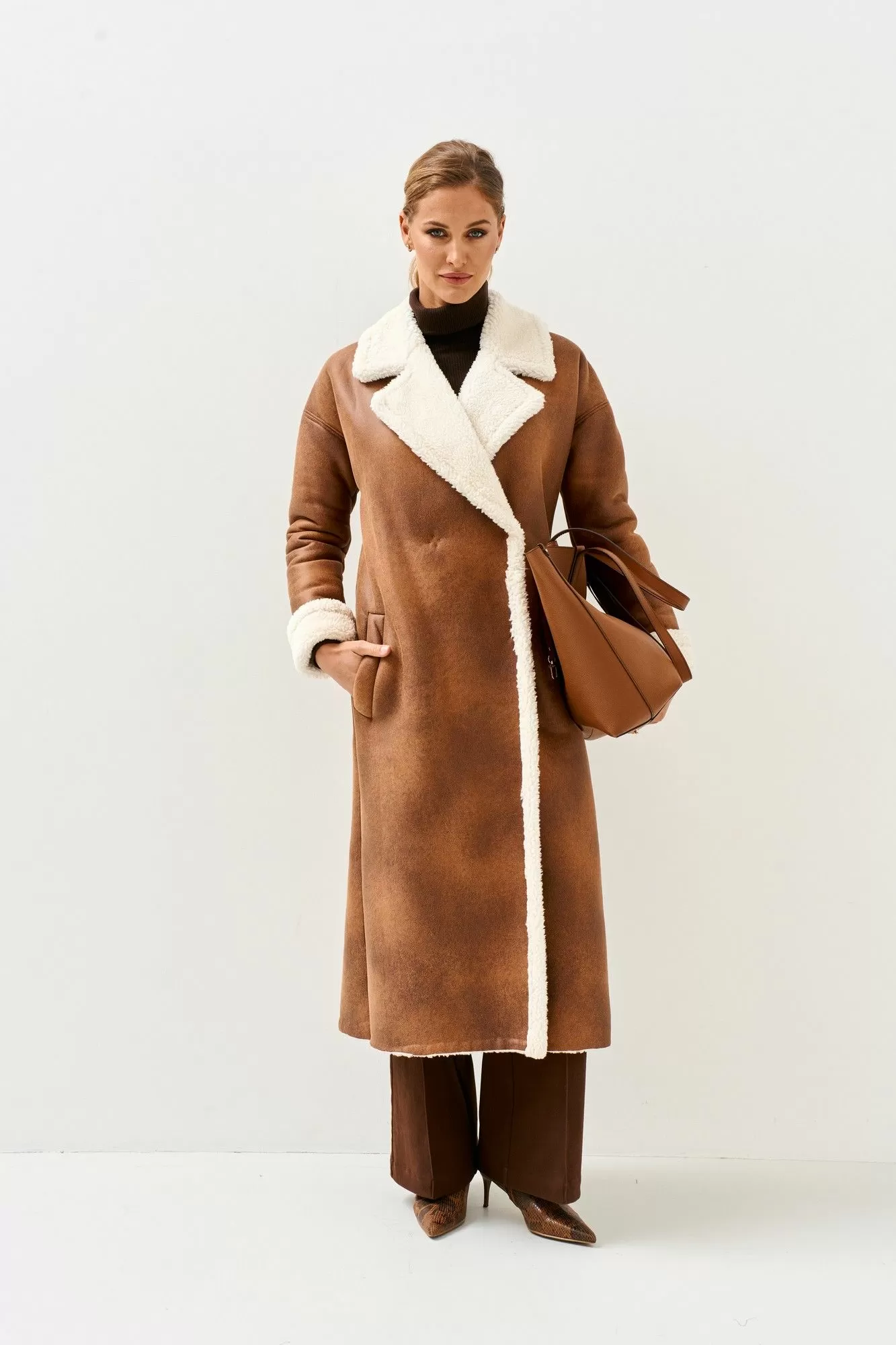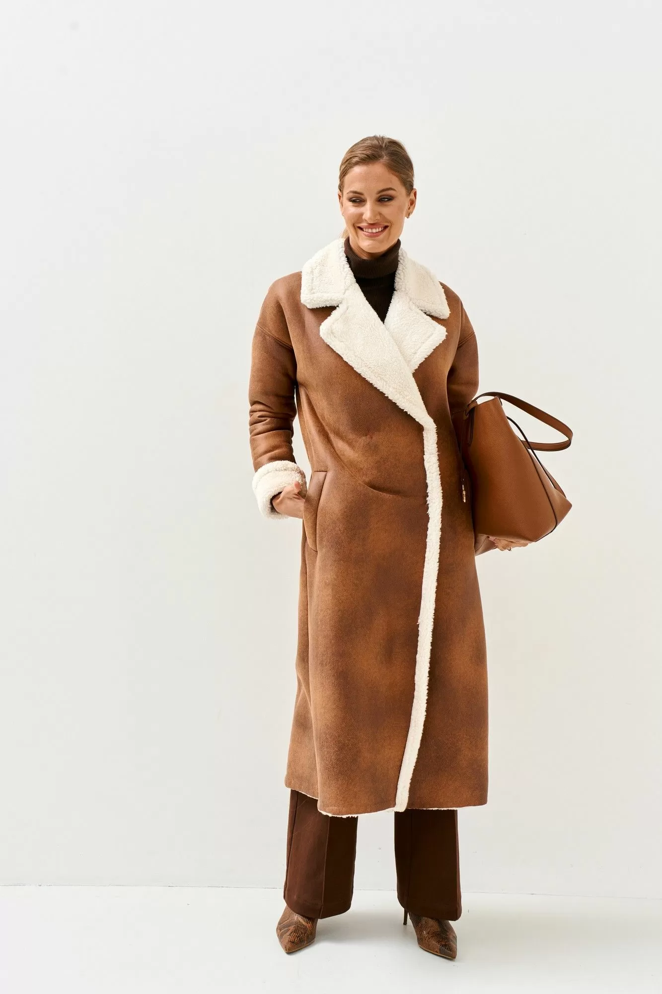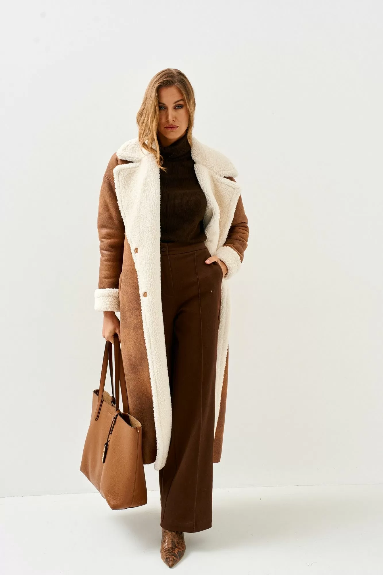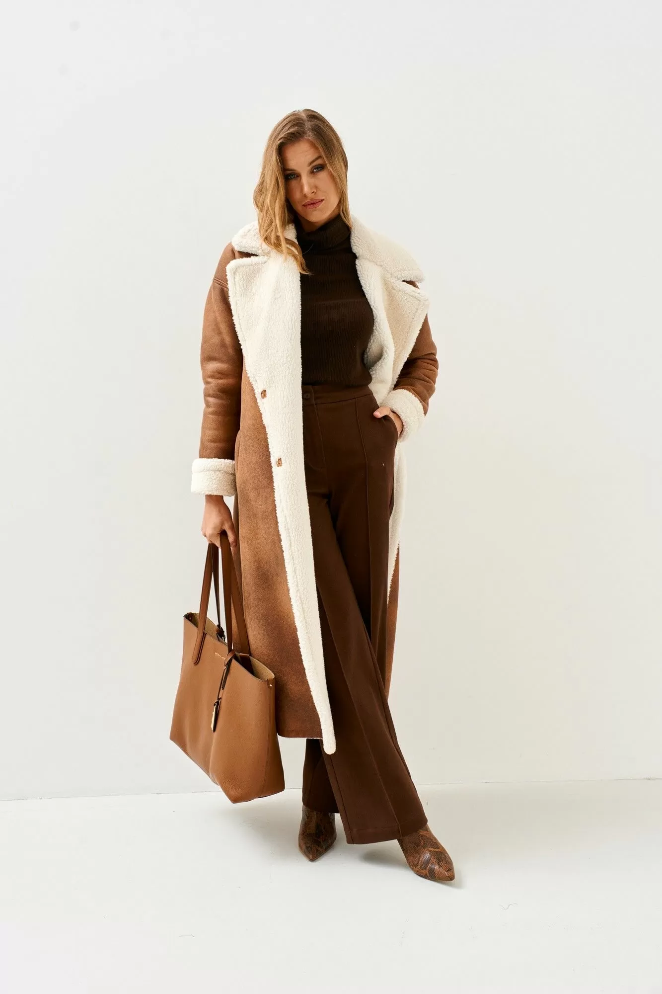 Пальто женское полуприлегающего силуэта, со смещенной бортовой застежкой на пришивные кнопки. Рукав втачной спущенный с цельнокроеной манжетой . На деталях переда обработаны боковые прорезные карманы с листочками. Спинка разрезная, в среднем шве обработана шлица.