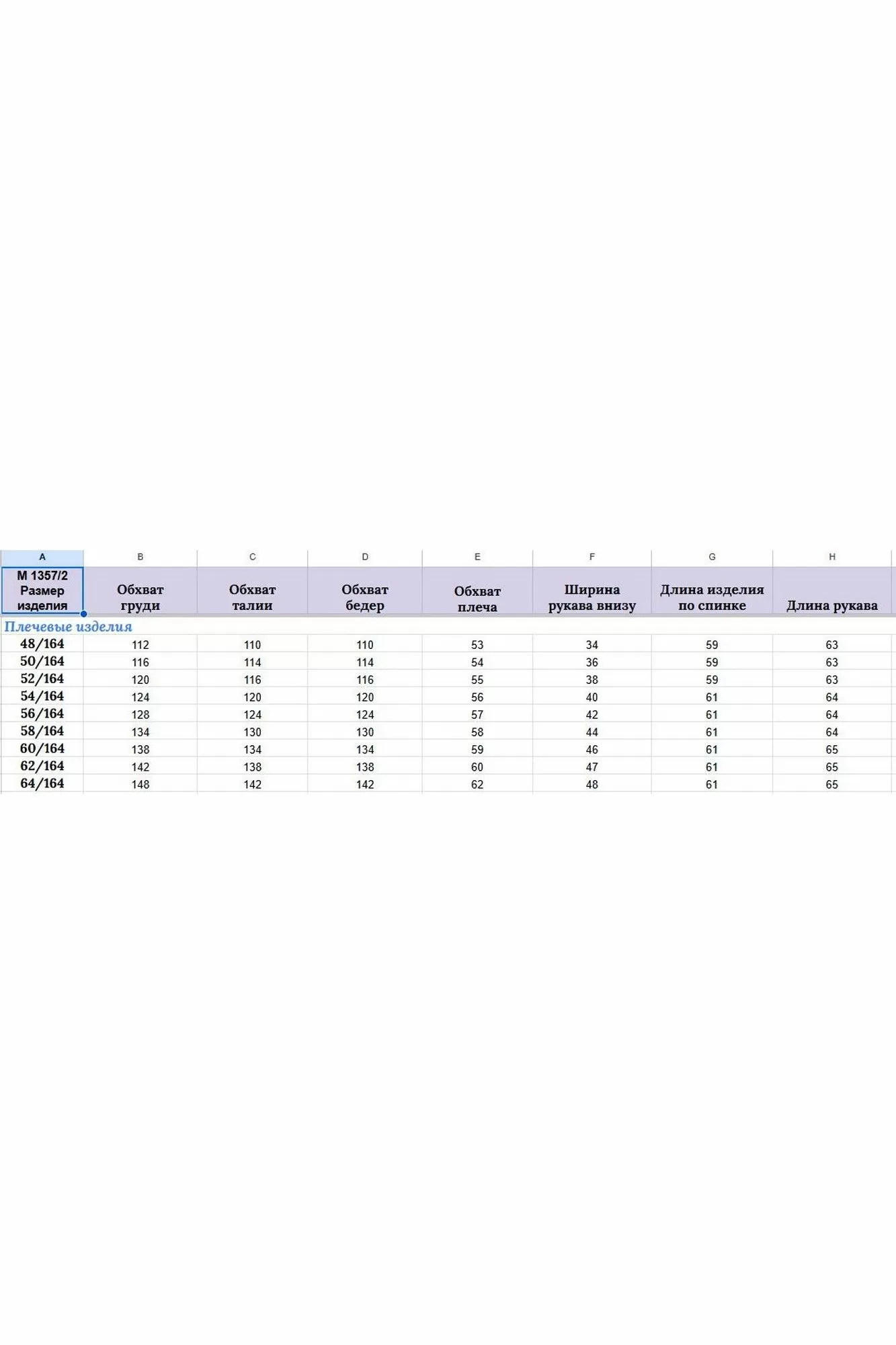 Длина жакета по спинке 60 см +\- 1 см, длина рукава 64 см +\- 1 см; длина брюк по боковому шву 97 см +\- 1 см, по шаговому шву 65 см.