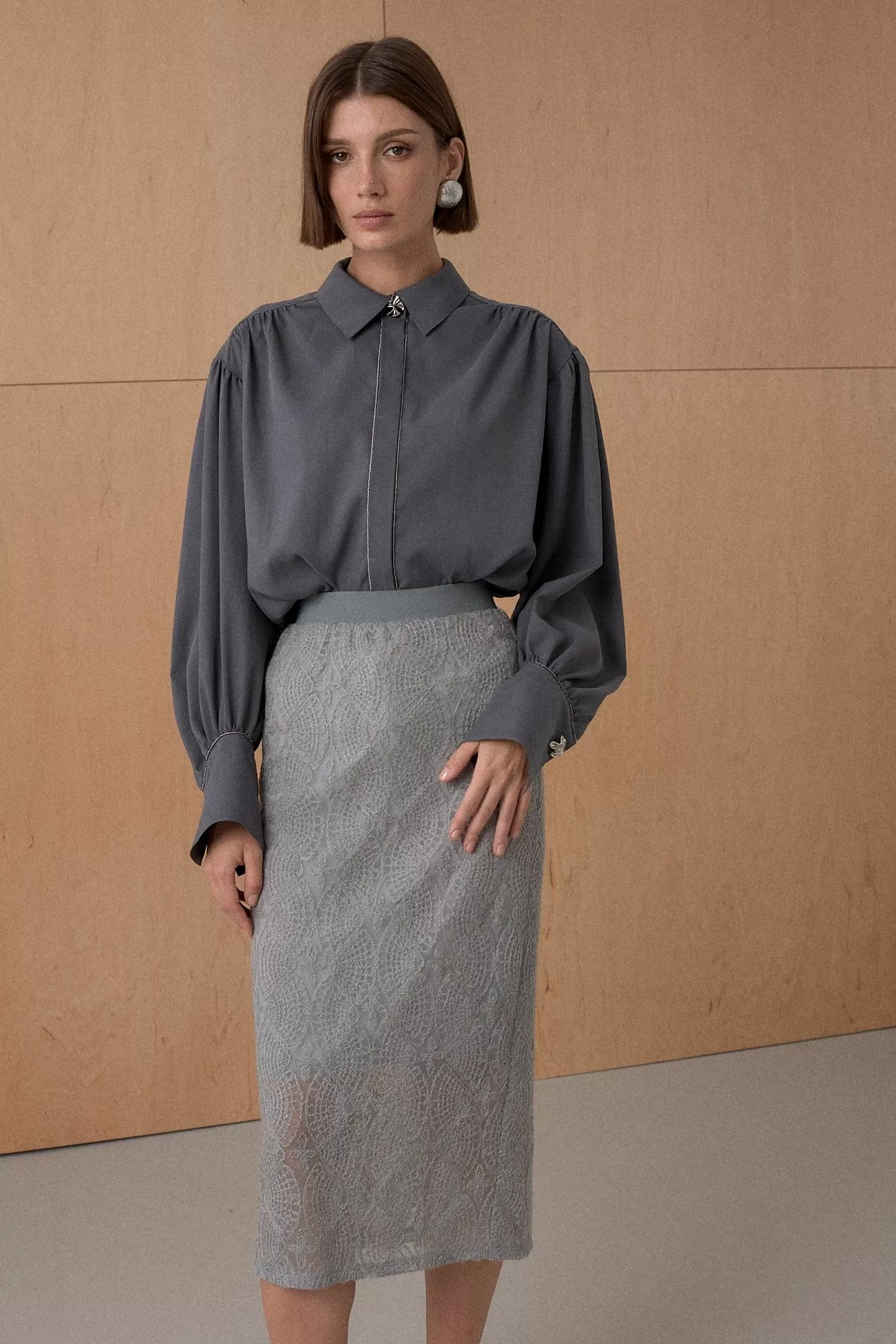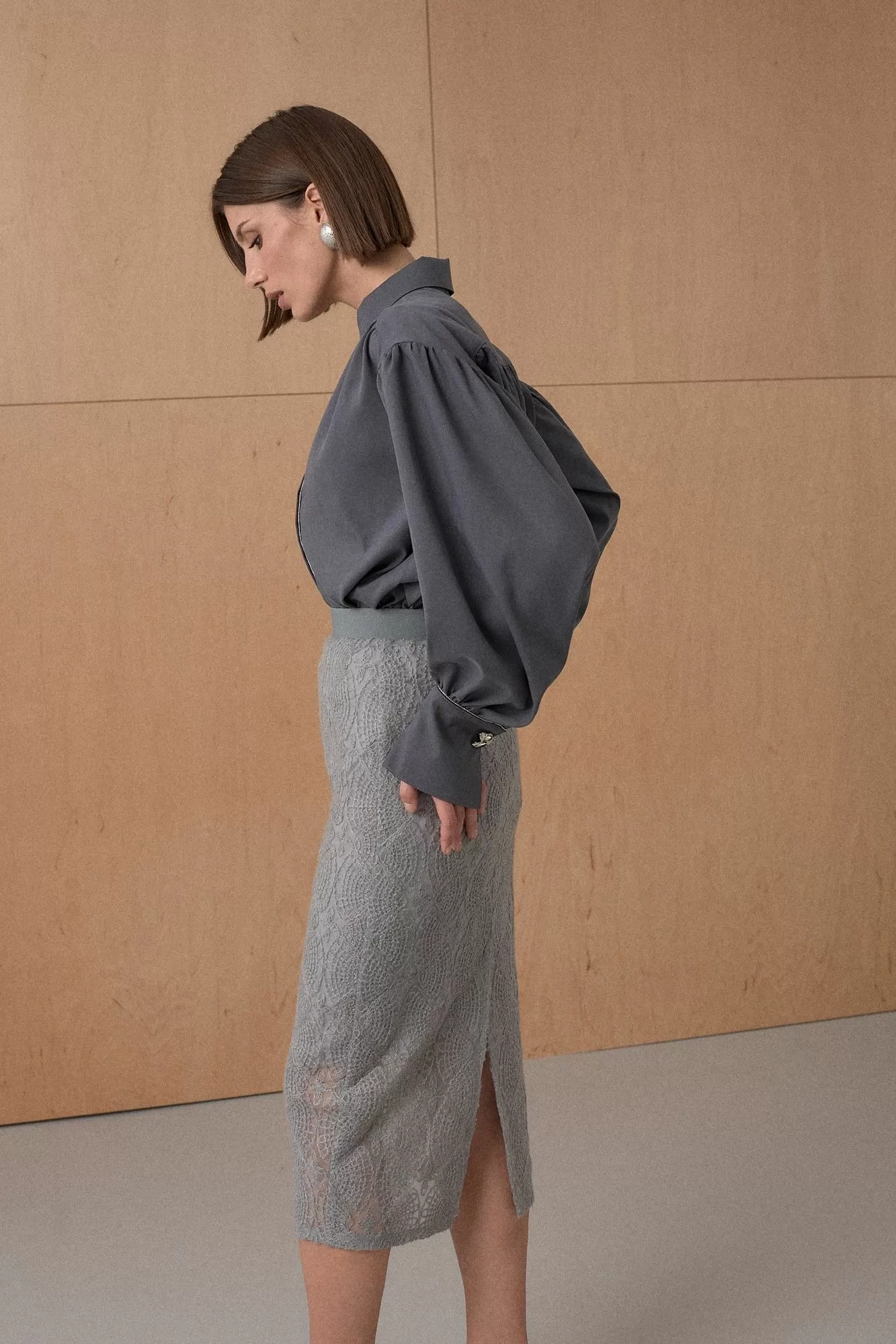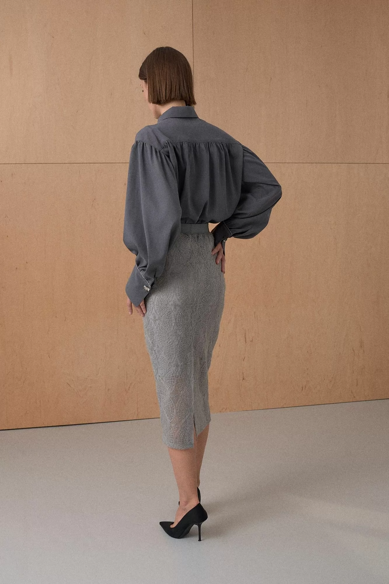 Юбка на резинке из фактурного полотна с добавлением шерсти. Длина юбки 82 см. Состав 60% ПЭ, 40% шерсть.