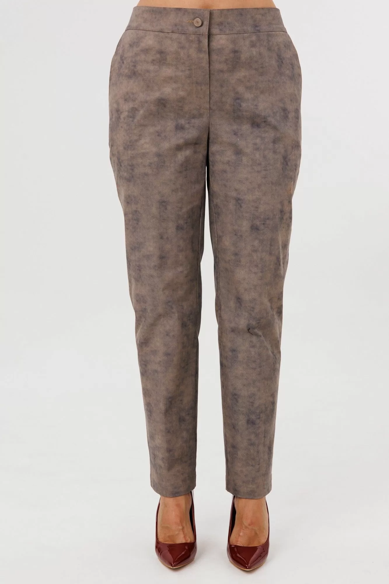 Брюки прямого силуэта с высокой посадкой, в боковых швах наклонные карманы, по срезу банта-застежка-молния. Верхний срез оформлен поясом, с эластичной резинкой по задней половинке