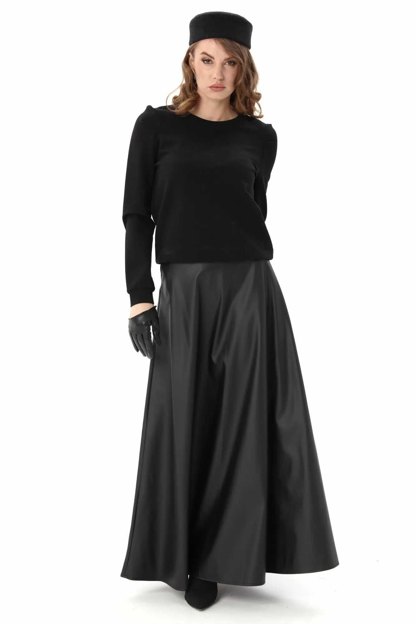 кардиган - 49% хлопок, 44% полиэстер, 7% люрекс, юбка - экокожа, 96% полиэстер, 4% спандекс