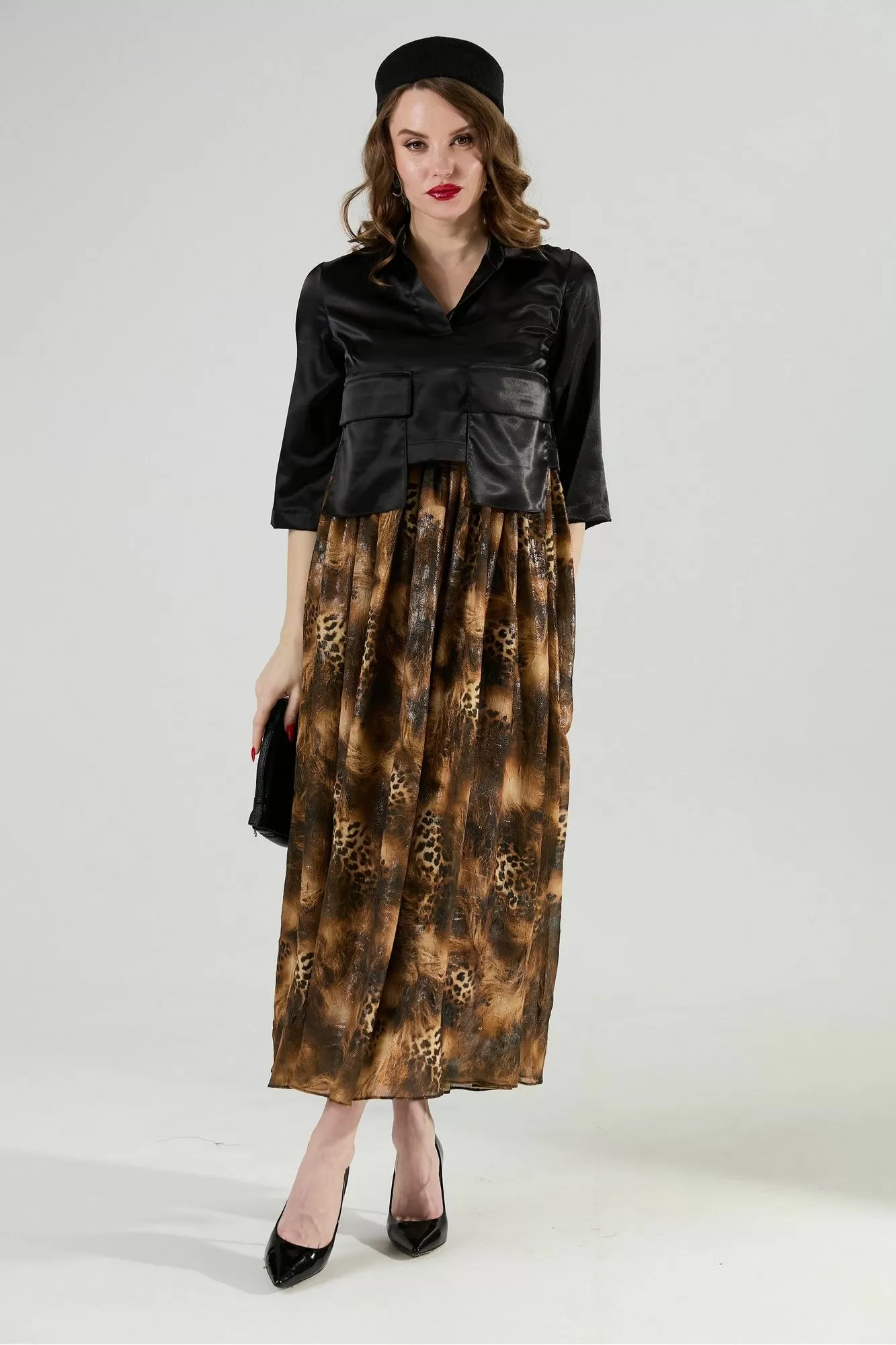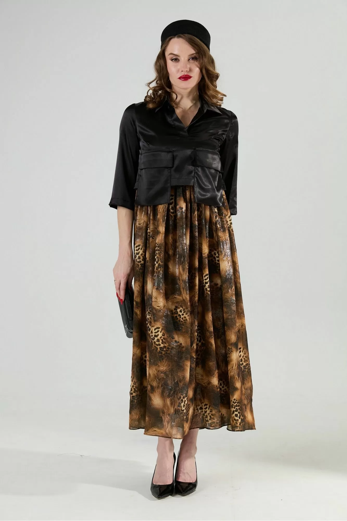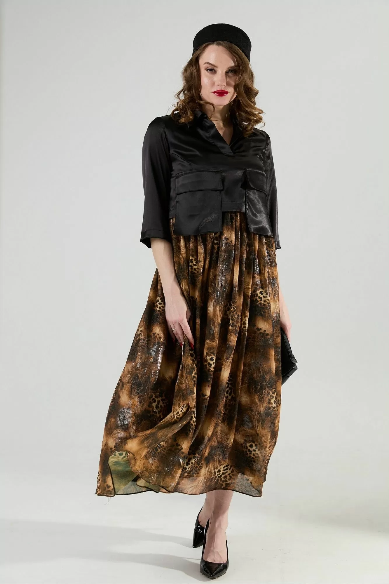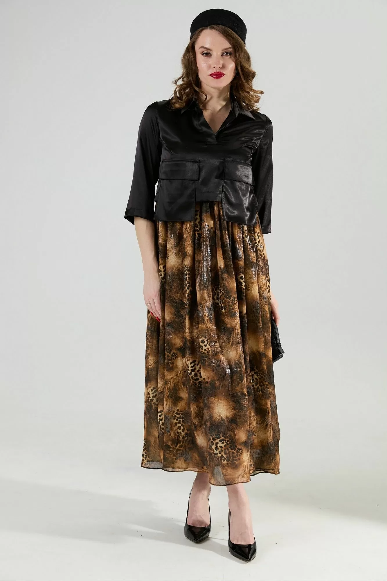 NikVa 514-4 чёрный и кофейный леопард, Платья