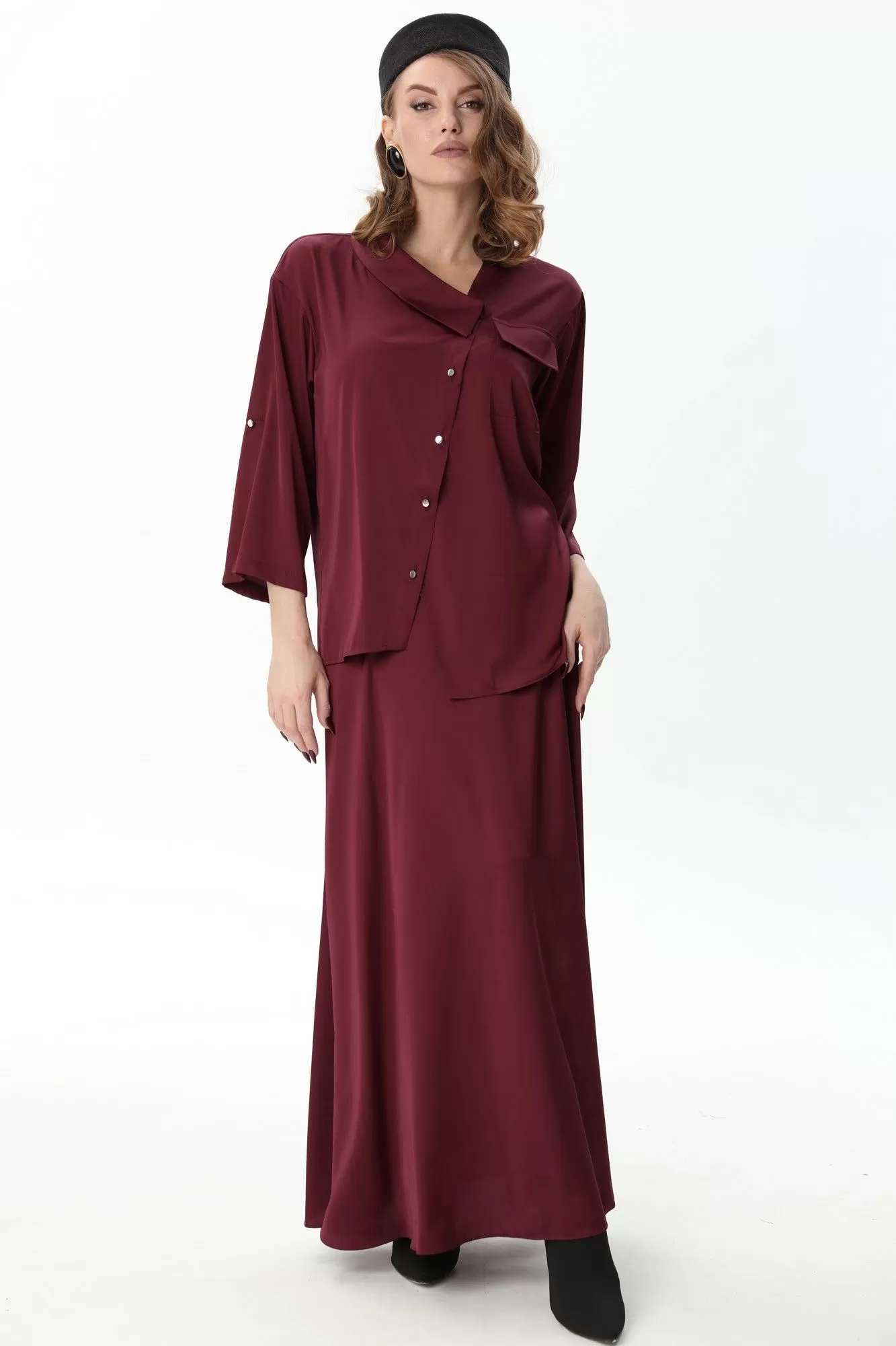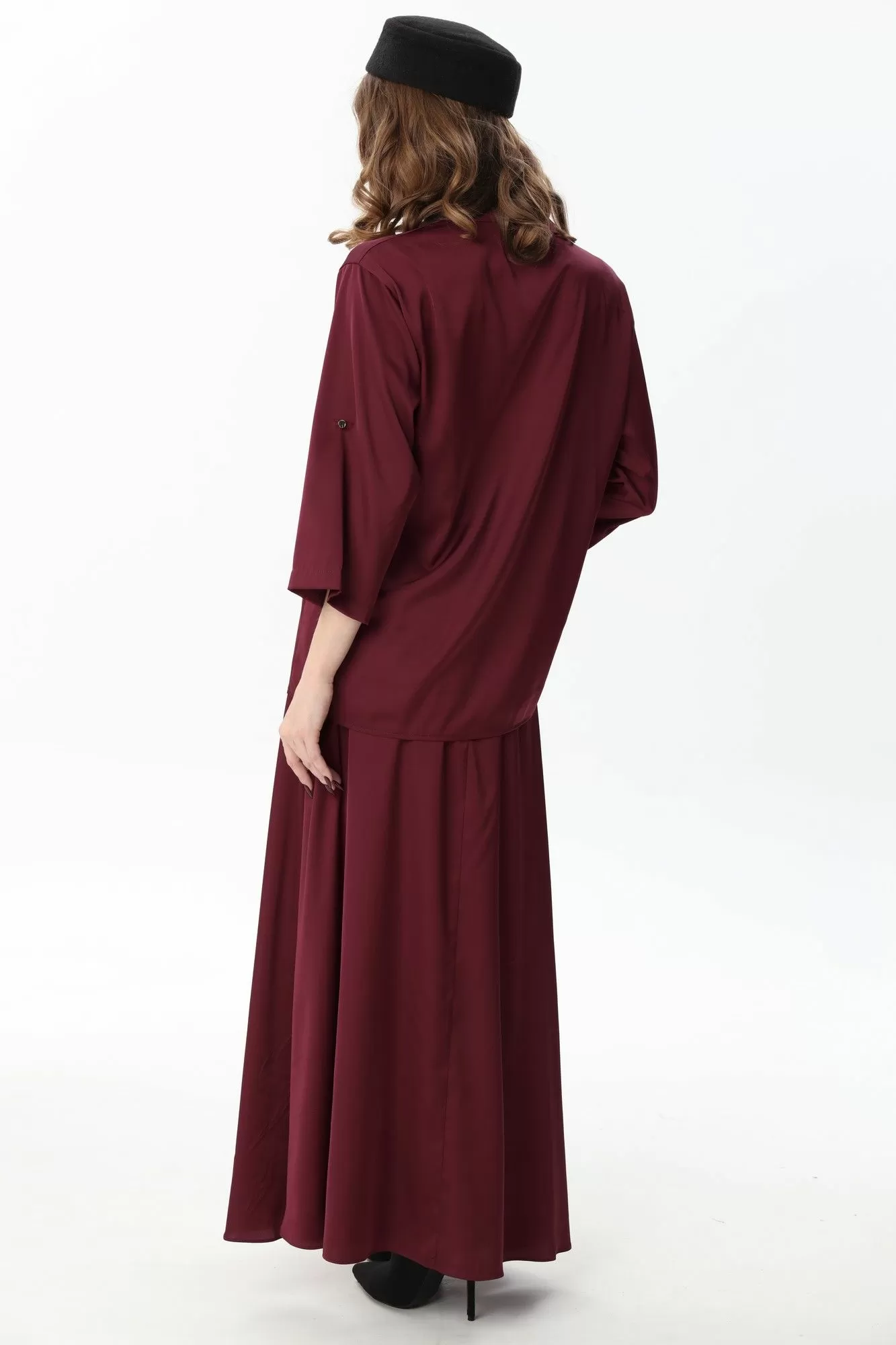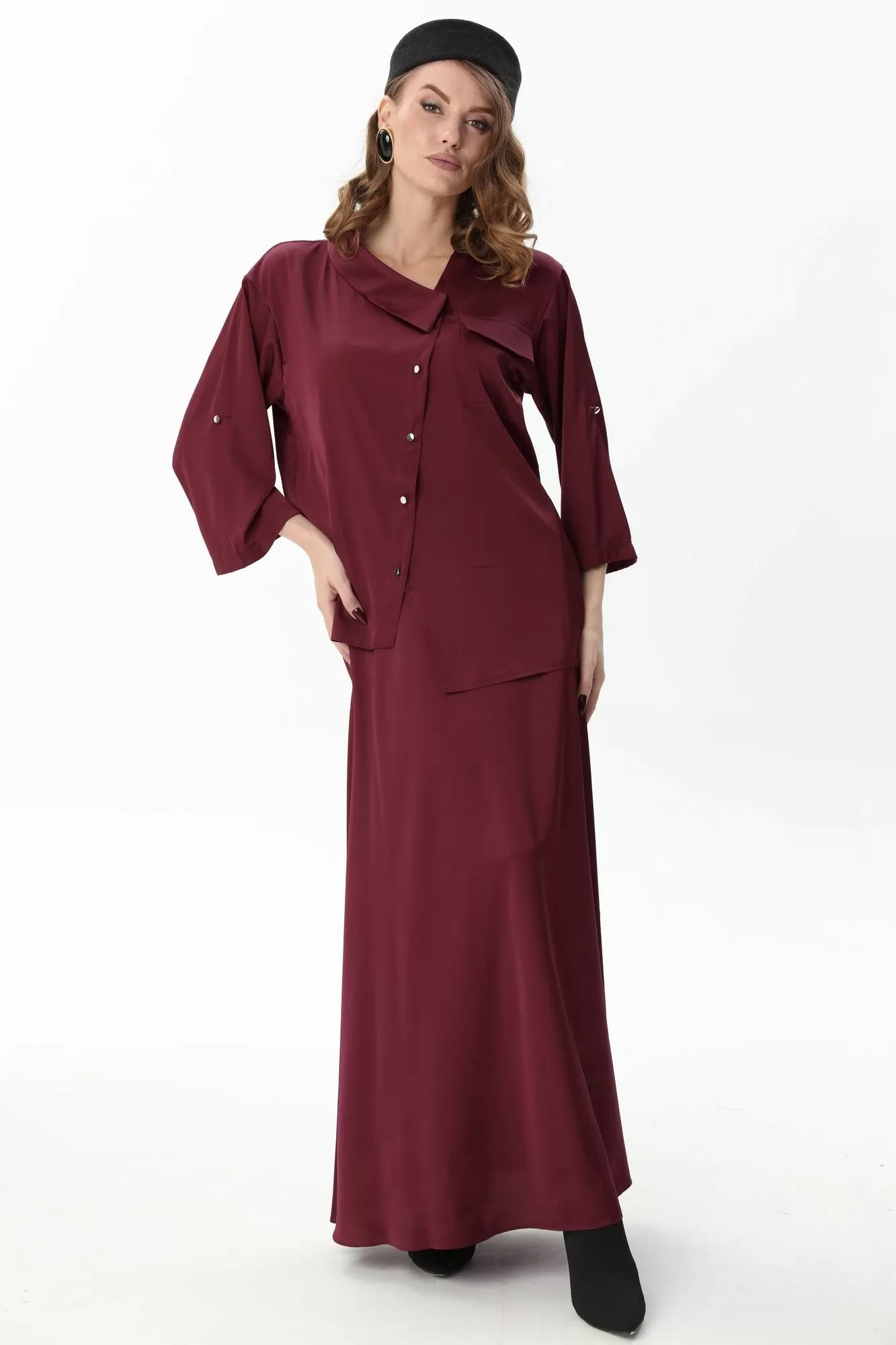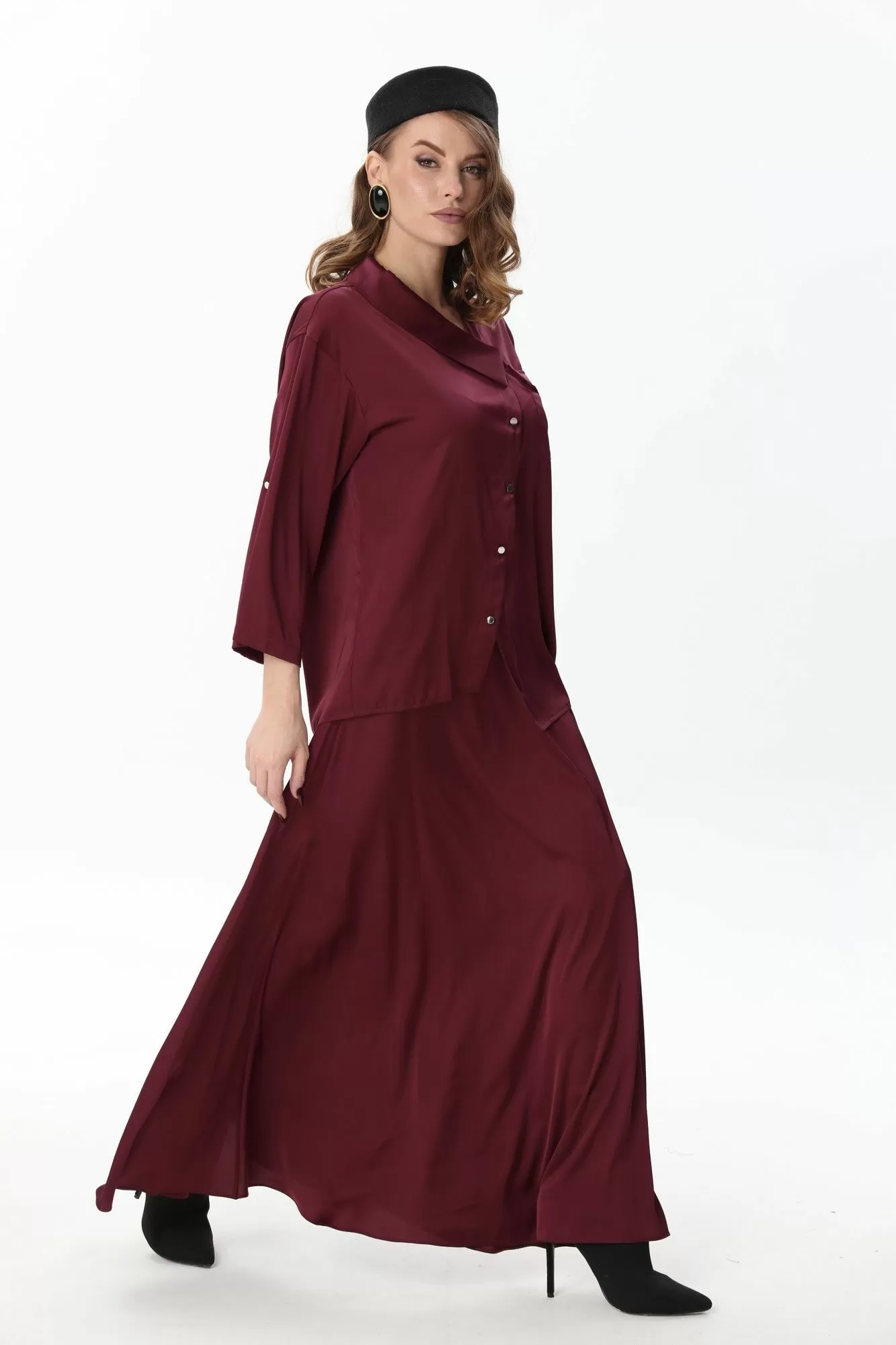 Юбка - солнце макси с узким поясом. В боковых швах расположены карманы. Застёжка на петлю и пуговицу и молнию по спинке.