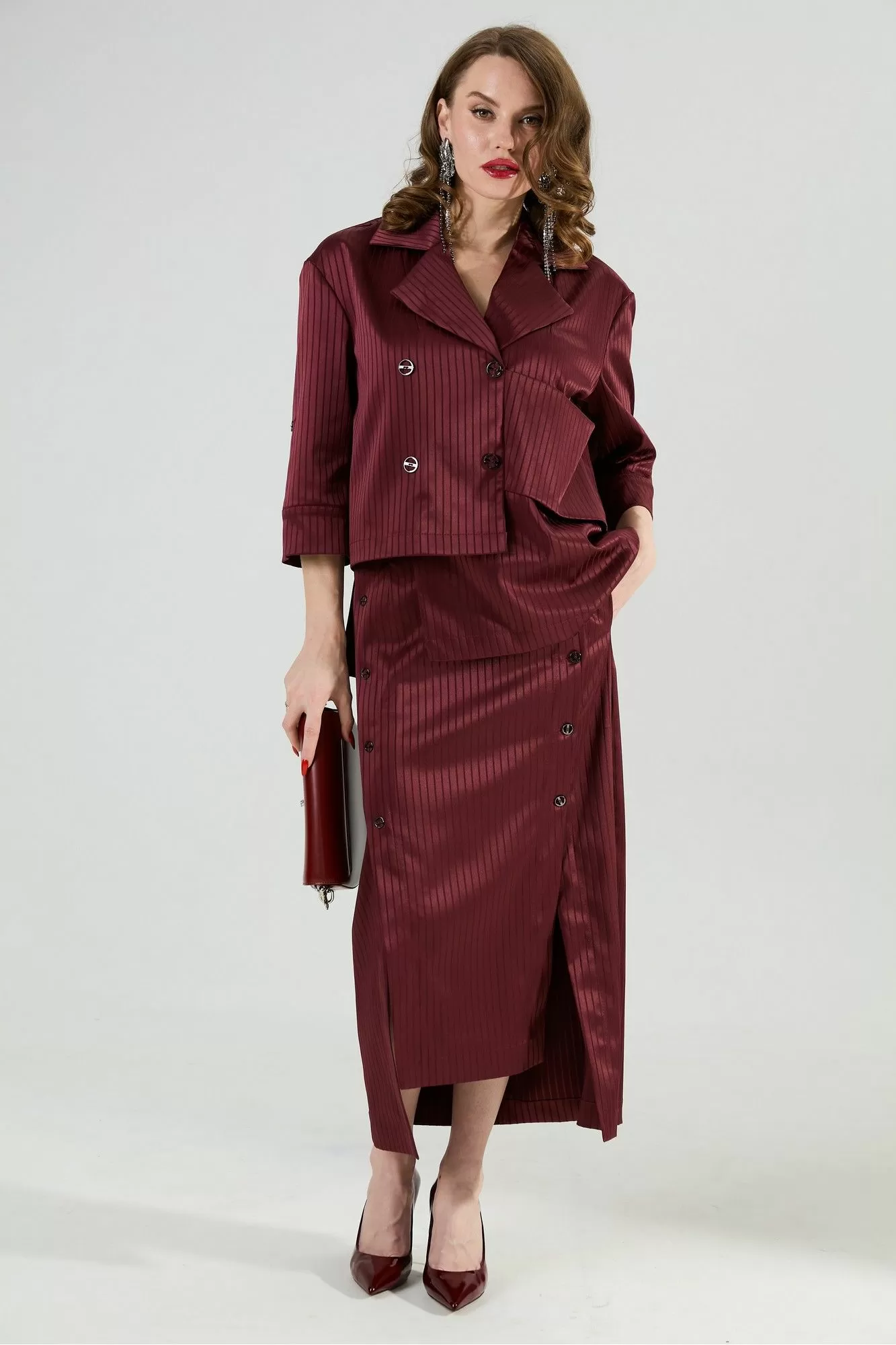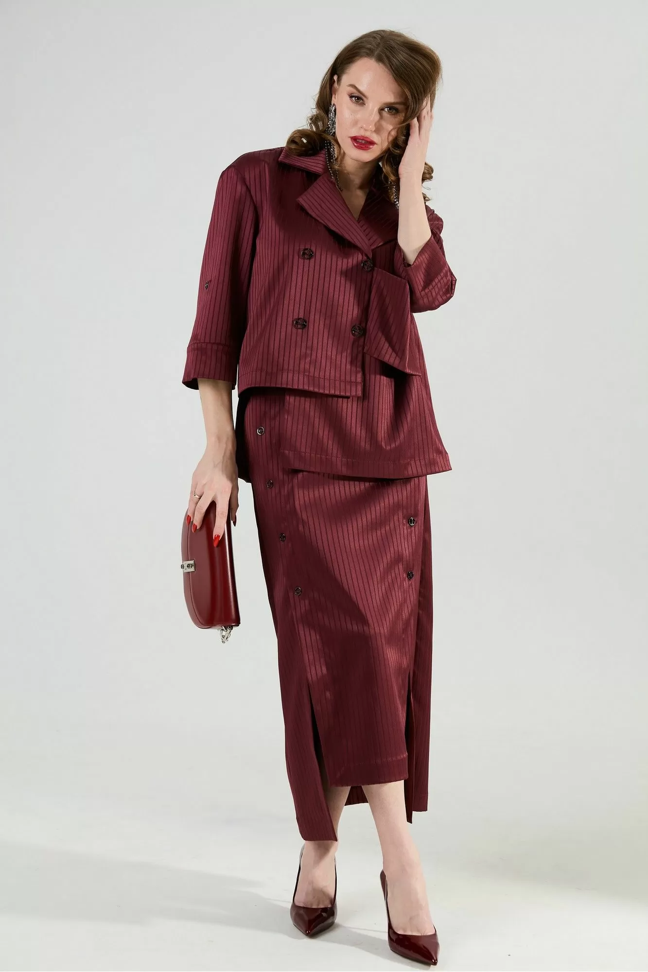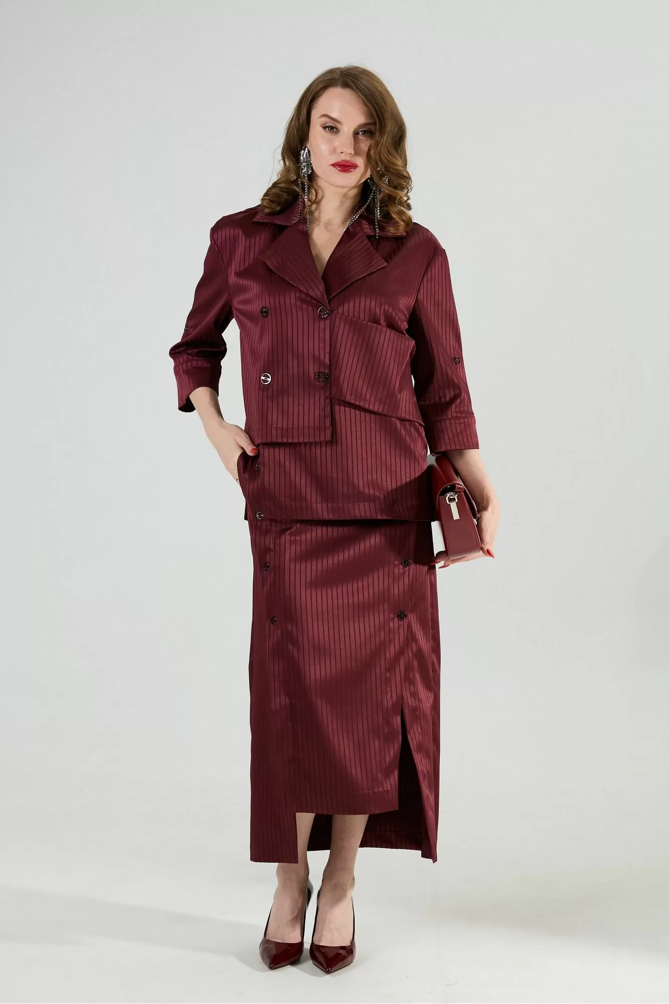 NikVa 972-5 бургунди_полоска, Юбочный костюм
