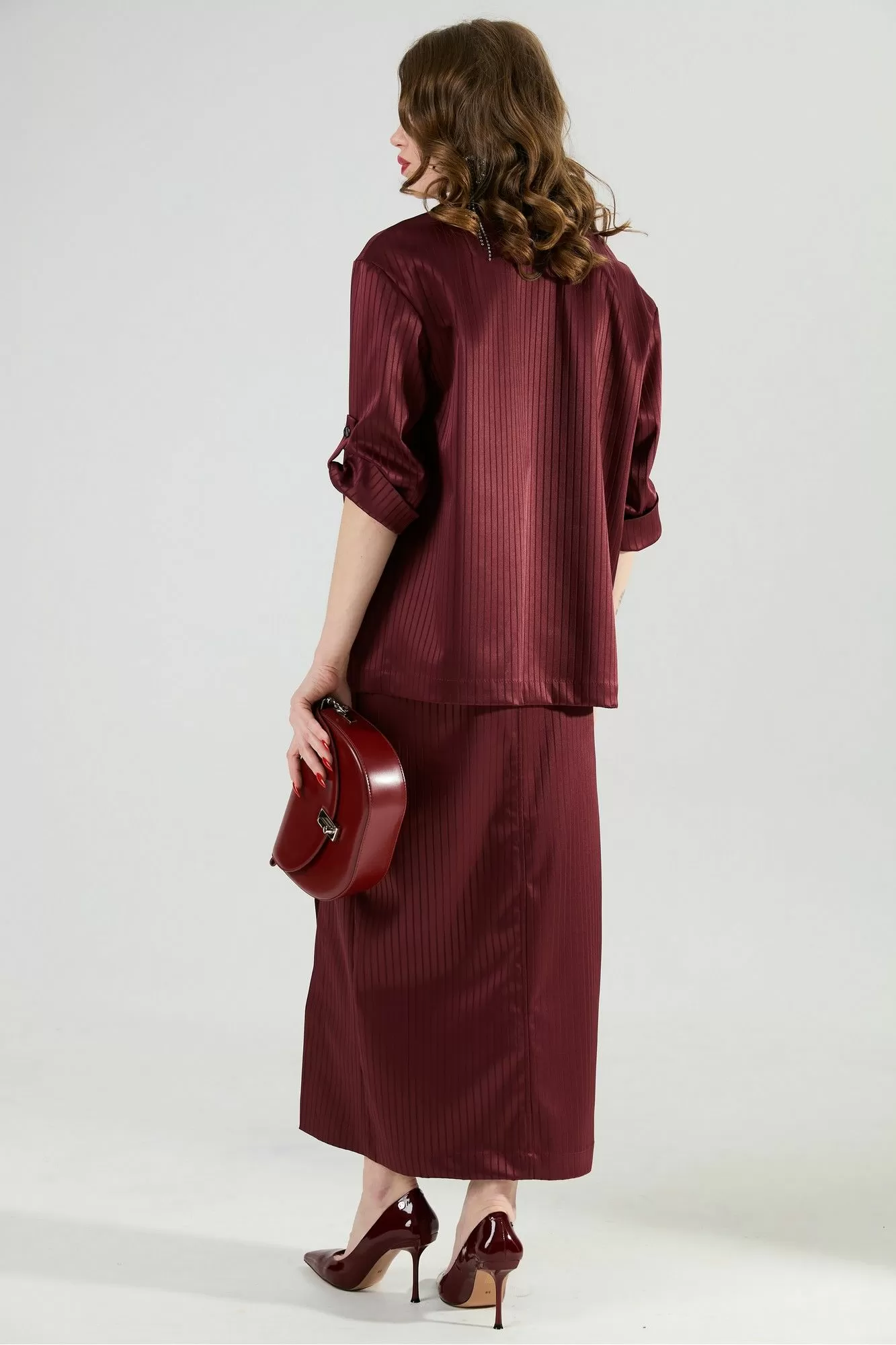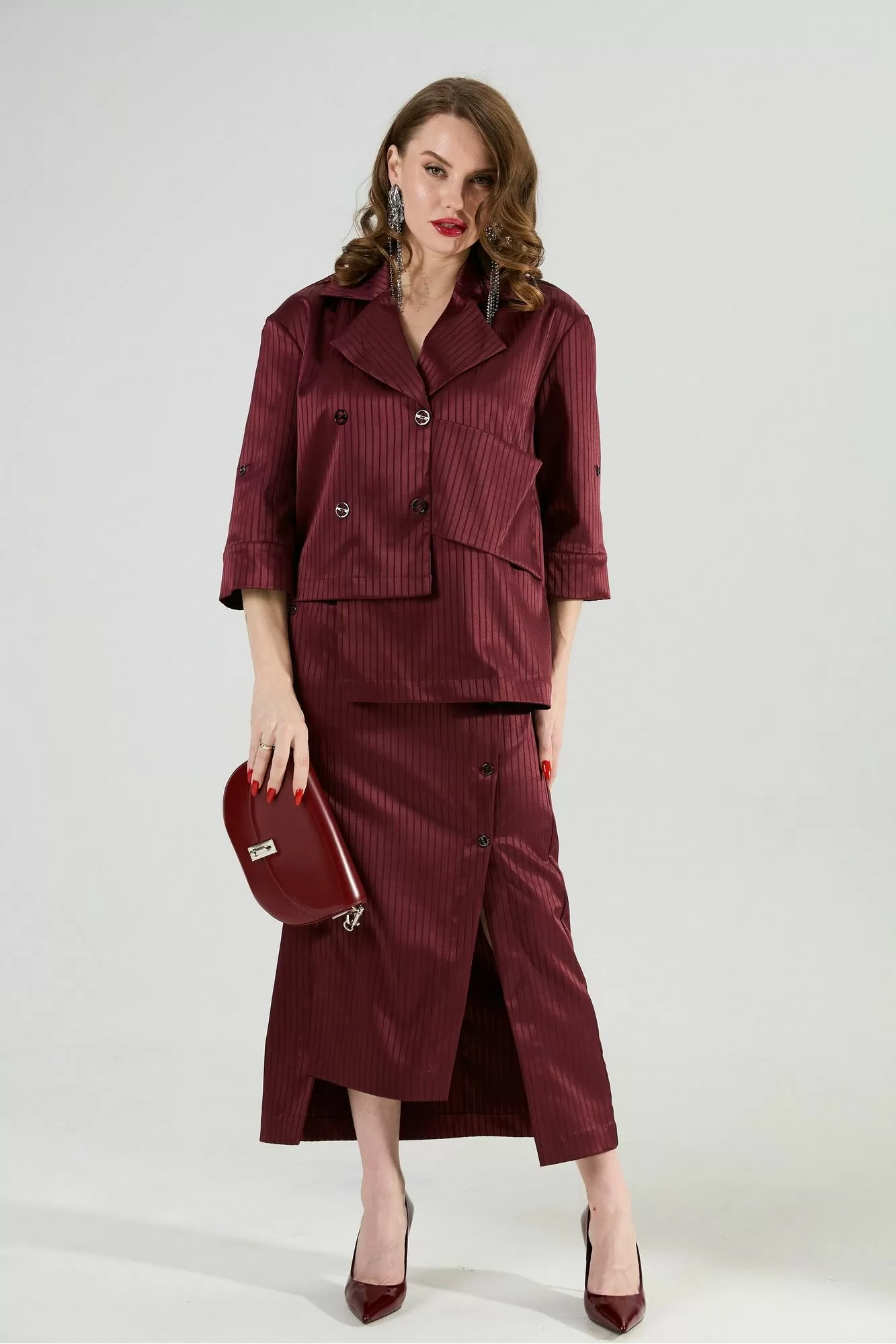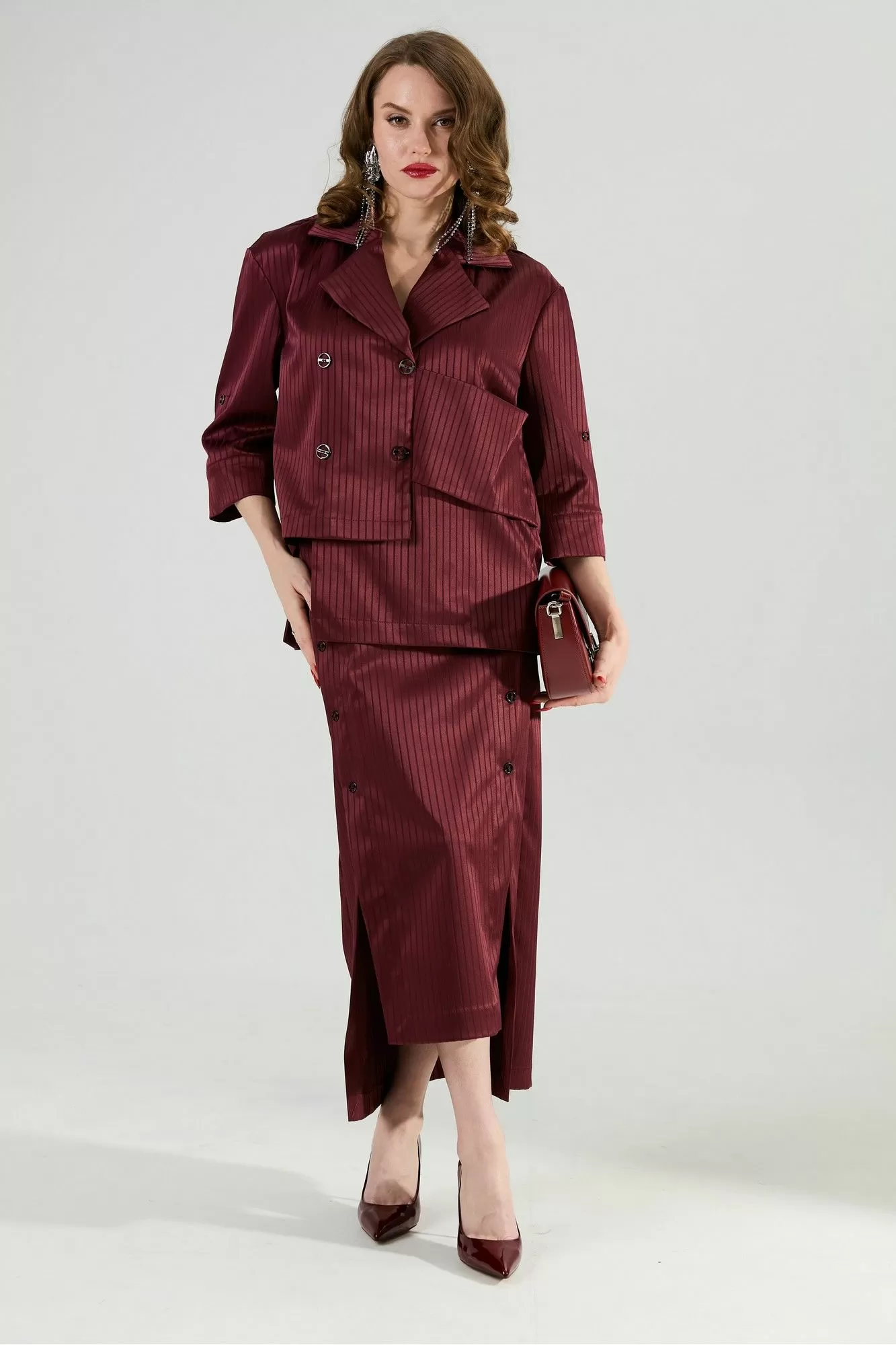 NikVa 972-5 бургунди_полоска, Юбочный костюм